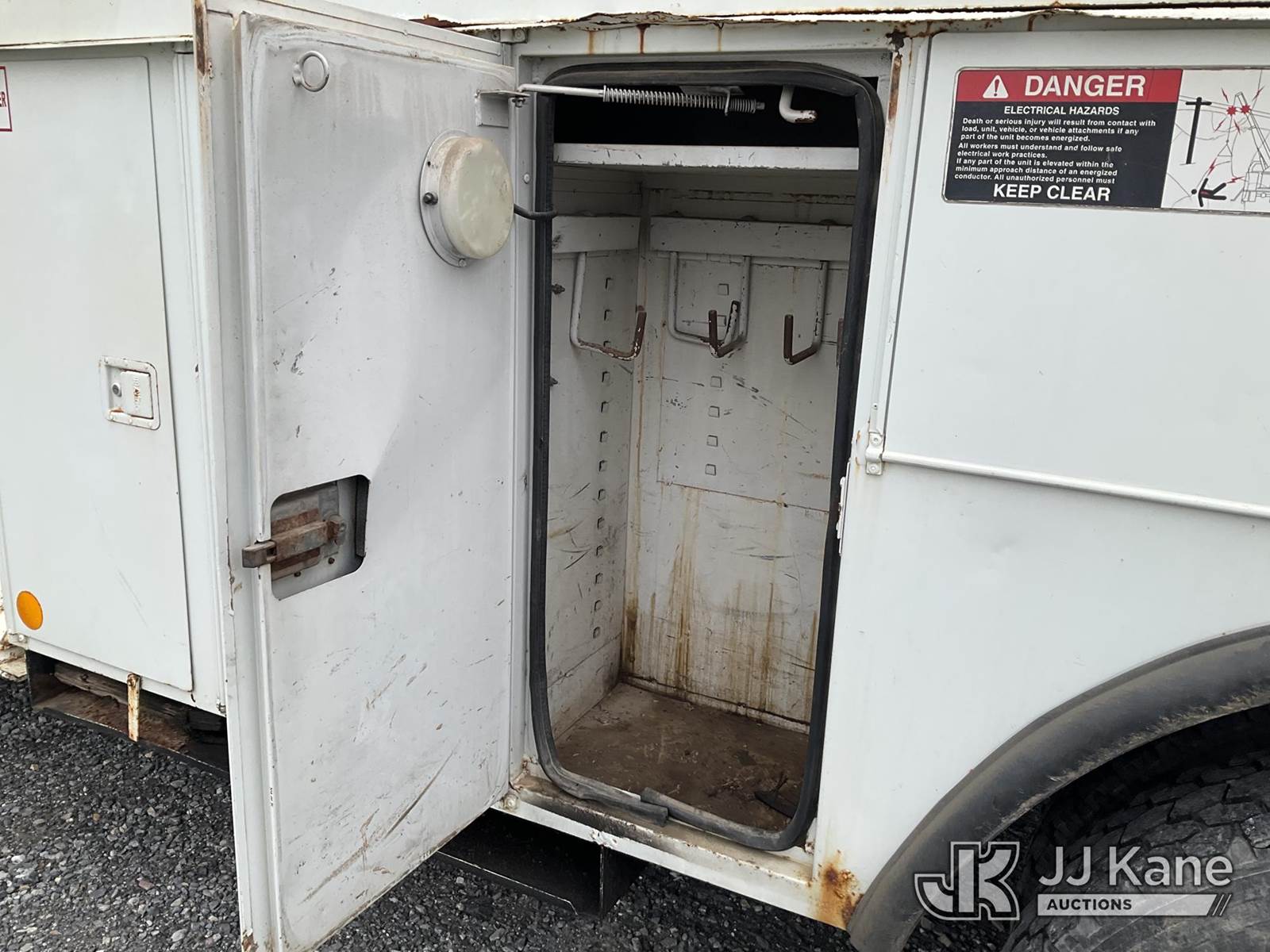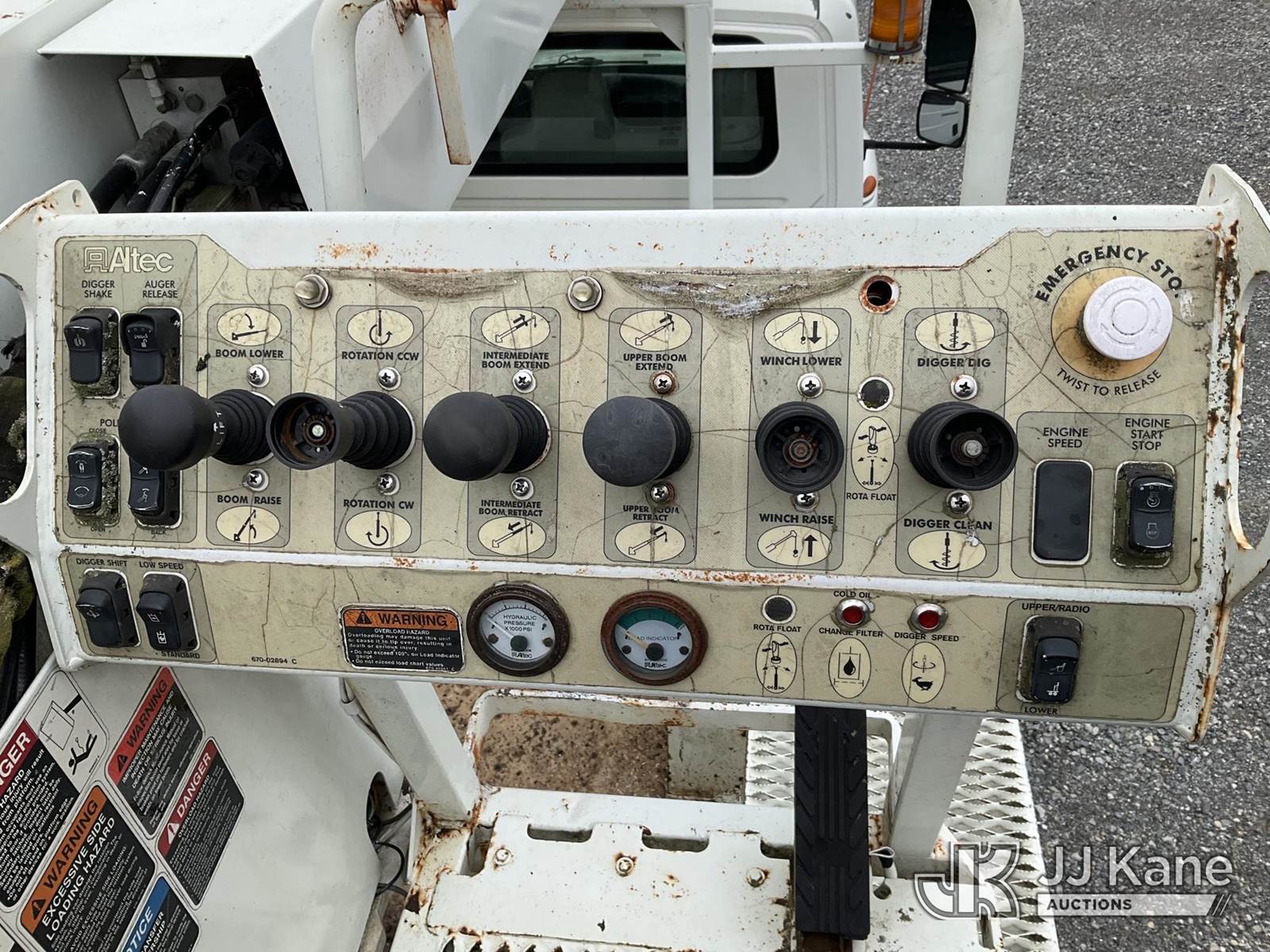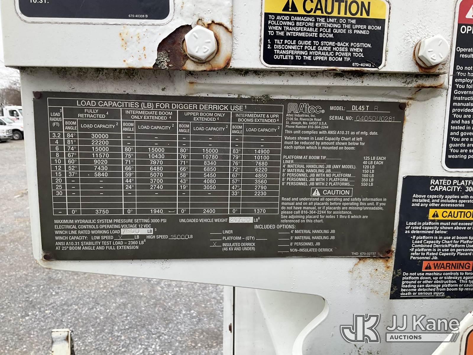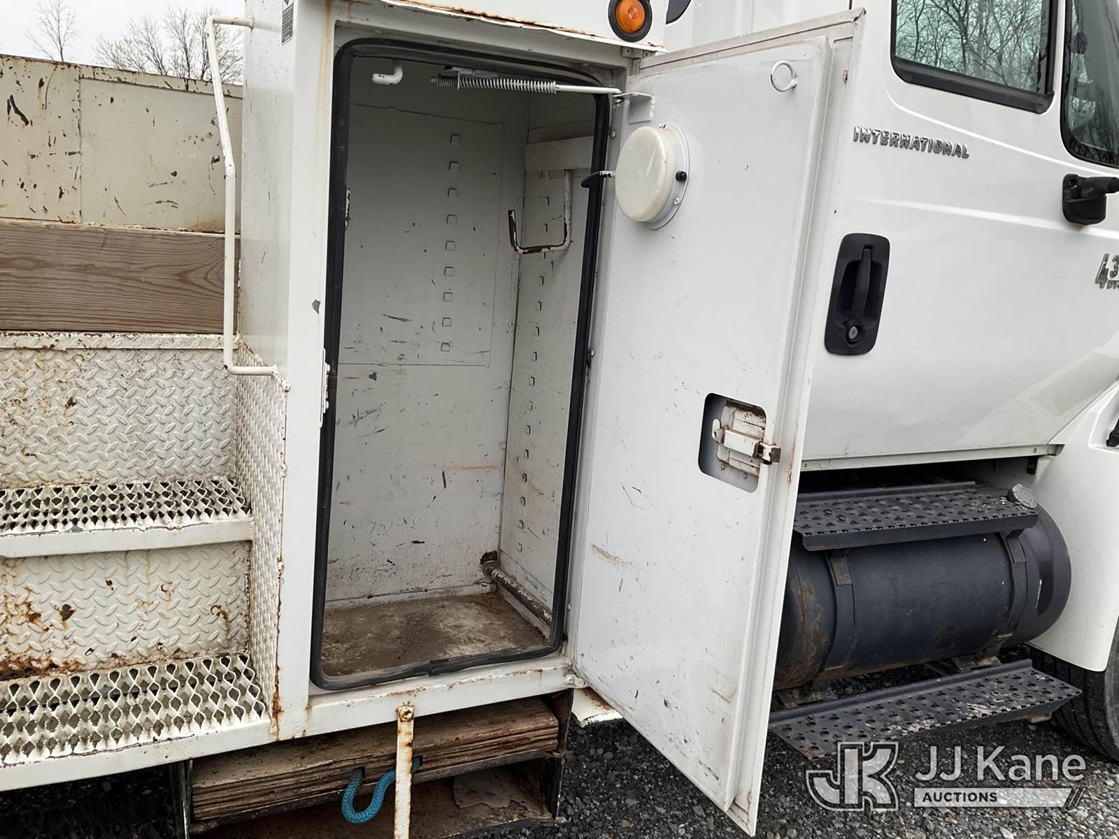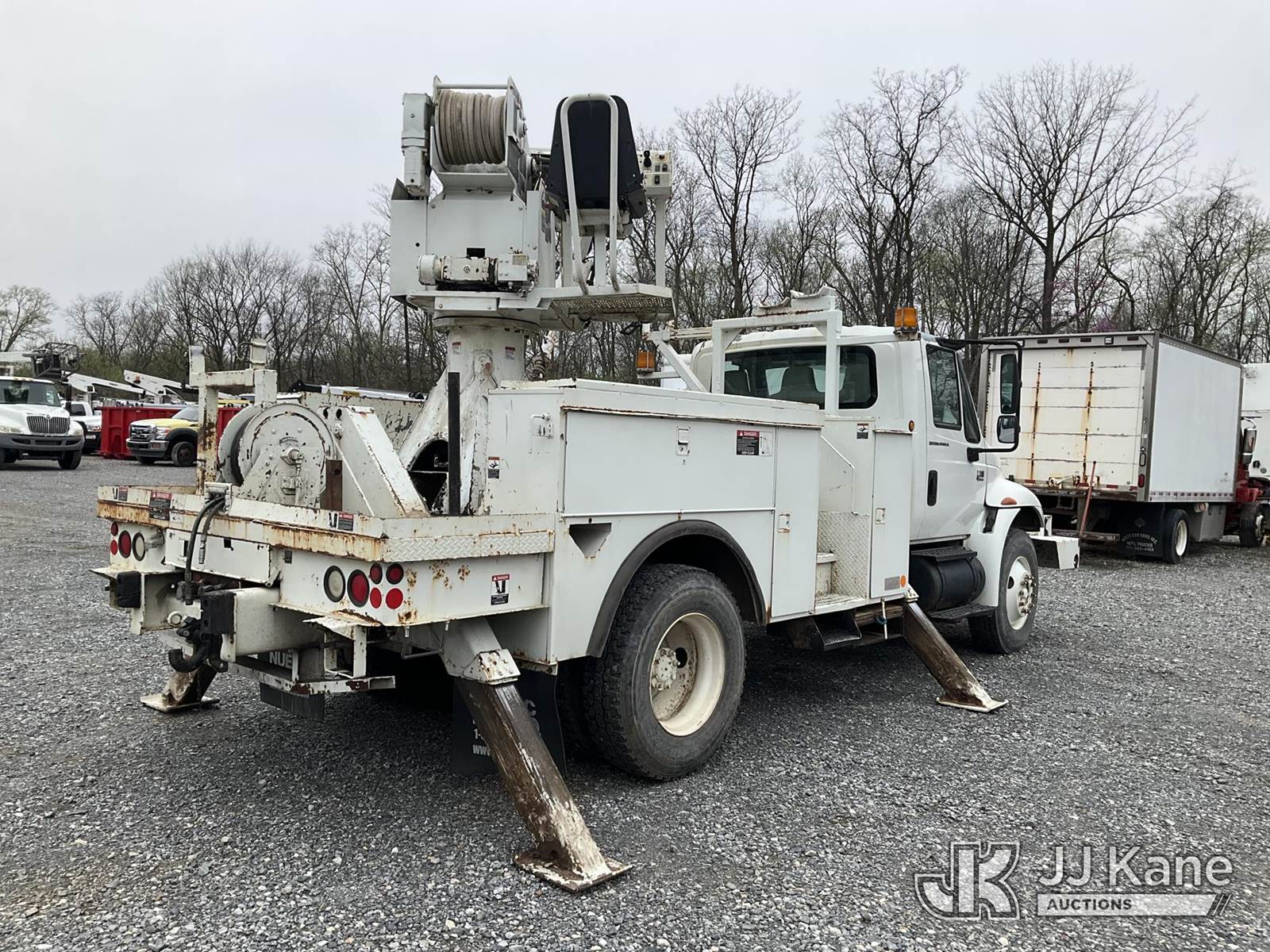 Altec DL45-TR, Digger Derrick s/n 0405DU0281, with 45 ft. sheave height, 3 section hyd boom, 2 spd digger, heel winch, pole guides, & 4 hyd outriggers, mounted on 2006 International 4300 Utility Truck, 7.6L L6 Diesel, 4X2, 6-spd, A/C, (Exempt from Odometer Disclosure - Reads 91,870 miles) (Runs, Moves & Operates, Engine Light On) (Removal is by Appointment Only, Buyer MUST make a appointment prior to picking up, Buyer/Transporter Must have PAID IN FULL RELEASE. No onsite assistance available, Please Come prepared) This is a Titled Item NOTE: This unit is being sold AS IS/WHERE IS via Timed Auction and is located in Hagerstown, MD. Inspection & preview days for this unit are by appointment only; please contact us at contact@jjkane.com or 84-Go-JJKane for more details. For pre-sale questions, please contact the on-site office @ (301) 895-7777 or Kevin.Waggoner@JJKane.com. (Missing manuals, See Auction Company for Manufacturers Information to obtain manuals) (Buyer is responsible for removal. Assistance by consignor or JJ Kane Auctions is not assured.)