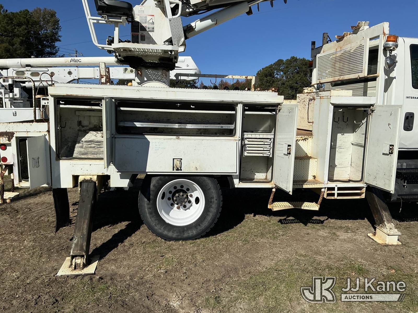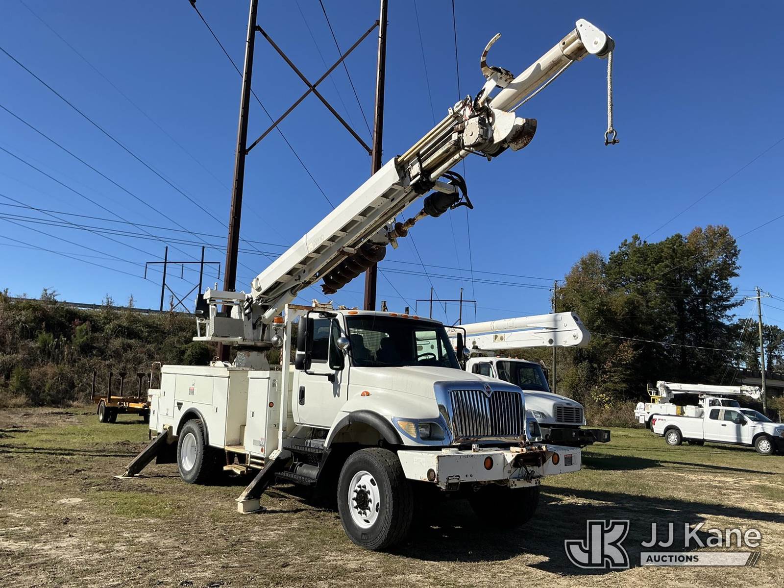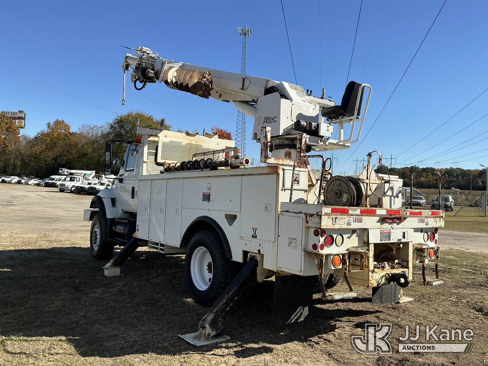Altec DM45-BR, 19,460 Lb Digger Derrick s/n 1005DV1560, with 45 ft. sheave height, 3 section hyd boom, tip winch, pole grabs, riding console, two speed auger, two augers & 4 hydraulic outriggers, rear mounted on 2006 International 7300 4x4 Utility Truck, DT466 diesel, Auto, A/C, with front winch, (132,617 miles) Co-Op Unit (Runs, Moves, Upper Operates) This is a Titled Item NOTE: This unit is being sold AS IS/WHERE IS via Timed Auction and is located in Florence, SC. Inspection & preview days for this unit are by appointment only; please contact us at contact@jjkane.com or 84-Go-JJKane for more details. (Missing manuals, See Auction Company for Manufacturers Information to obtain manuals) (Buyer is responsible for removal. Assistance by consignor or JJ Kane Auctioneers is not assured.)