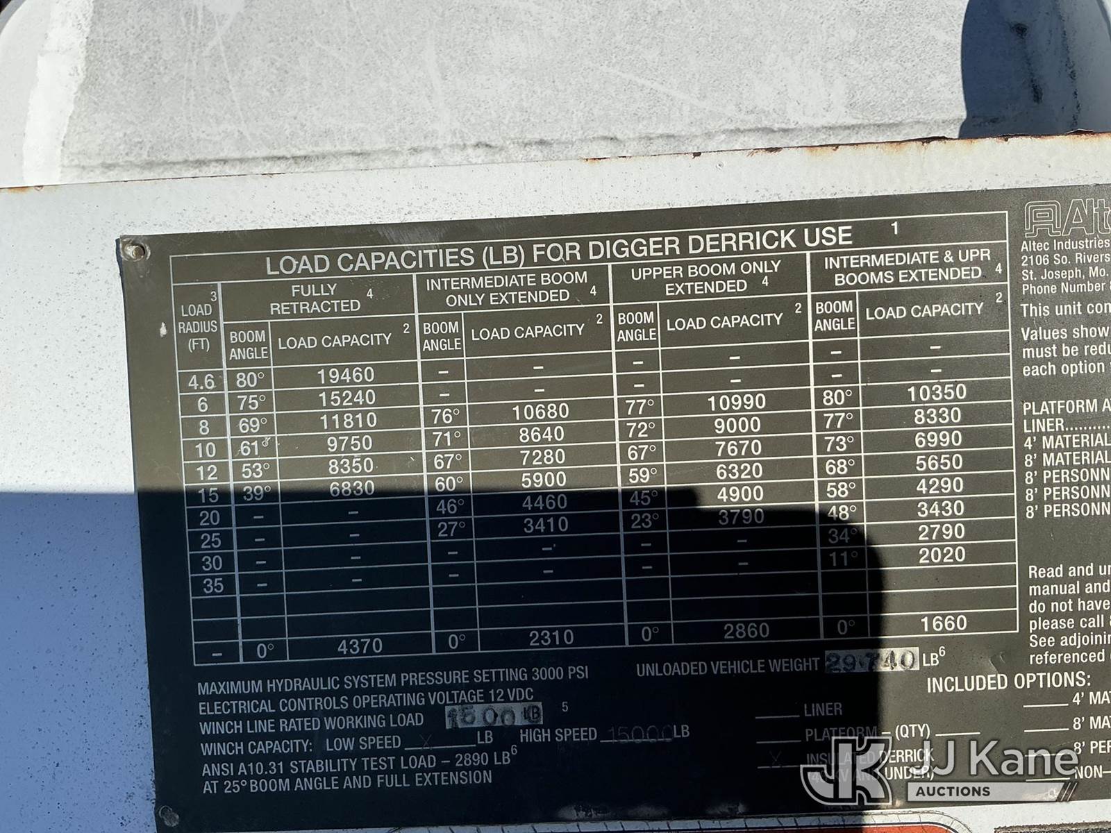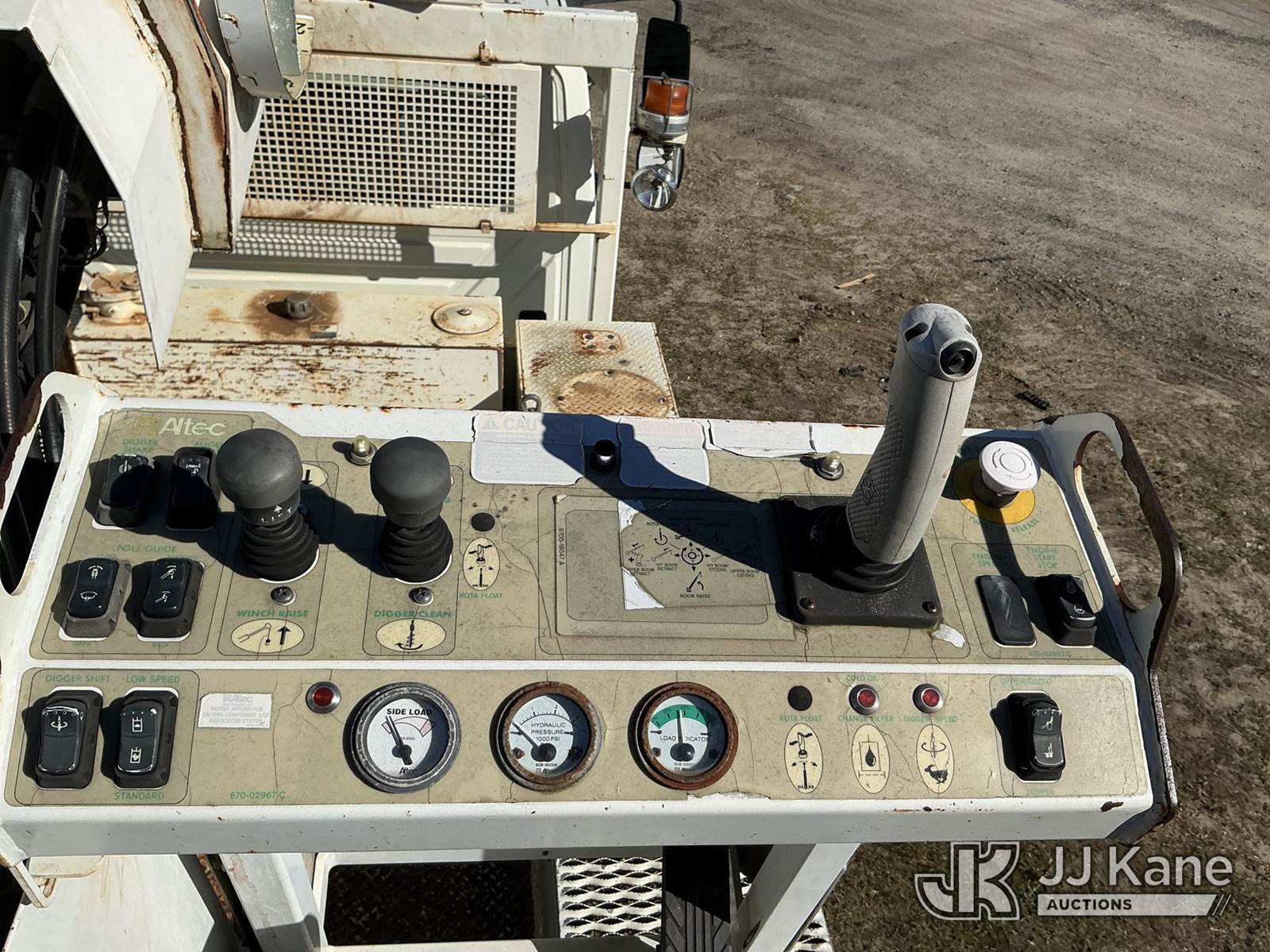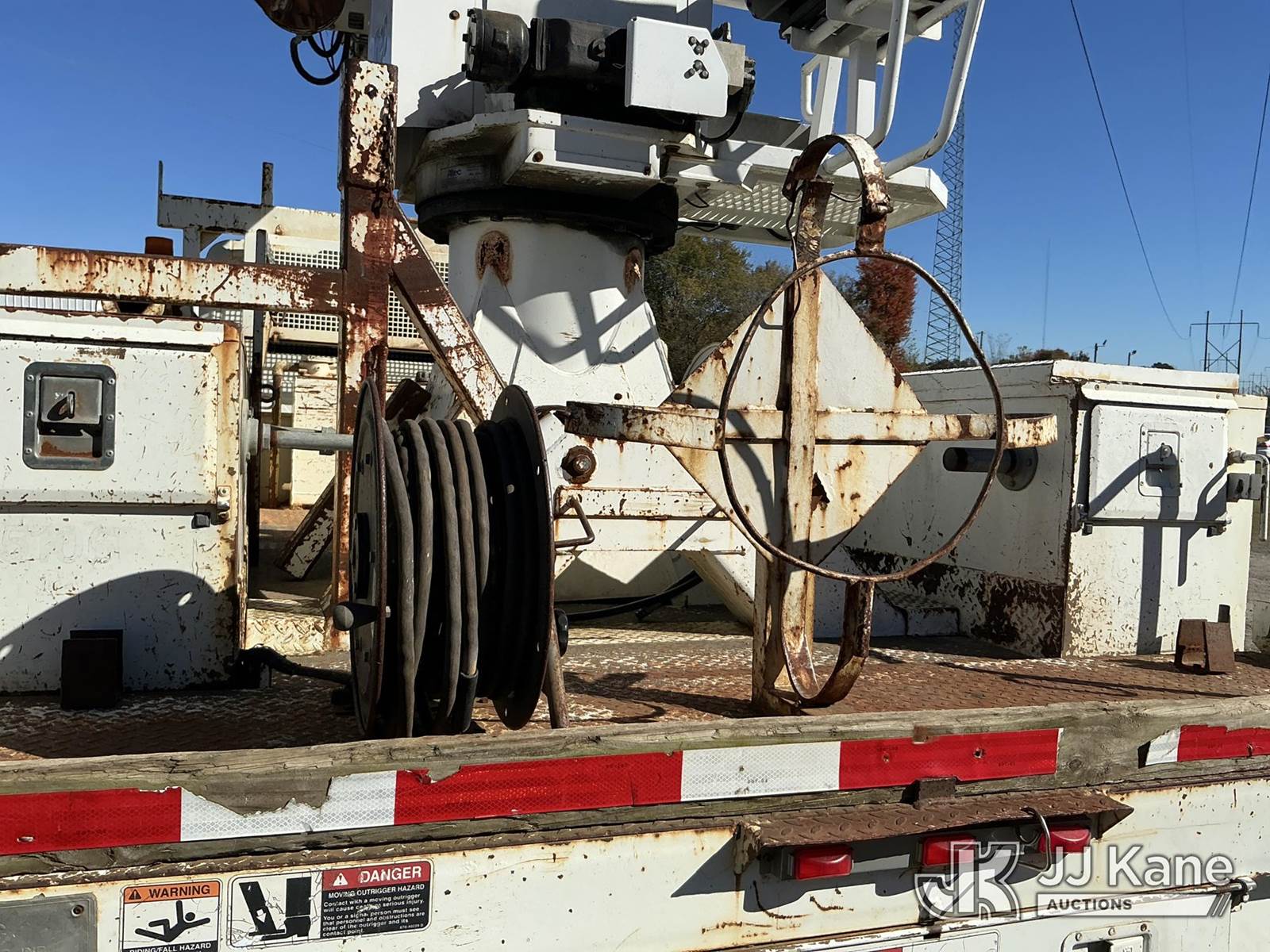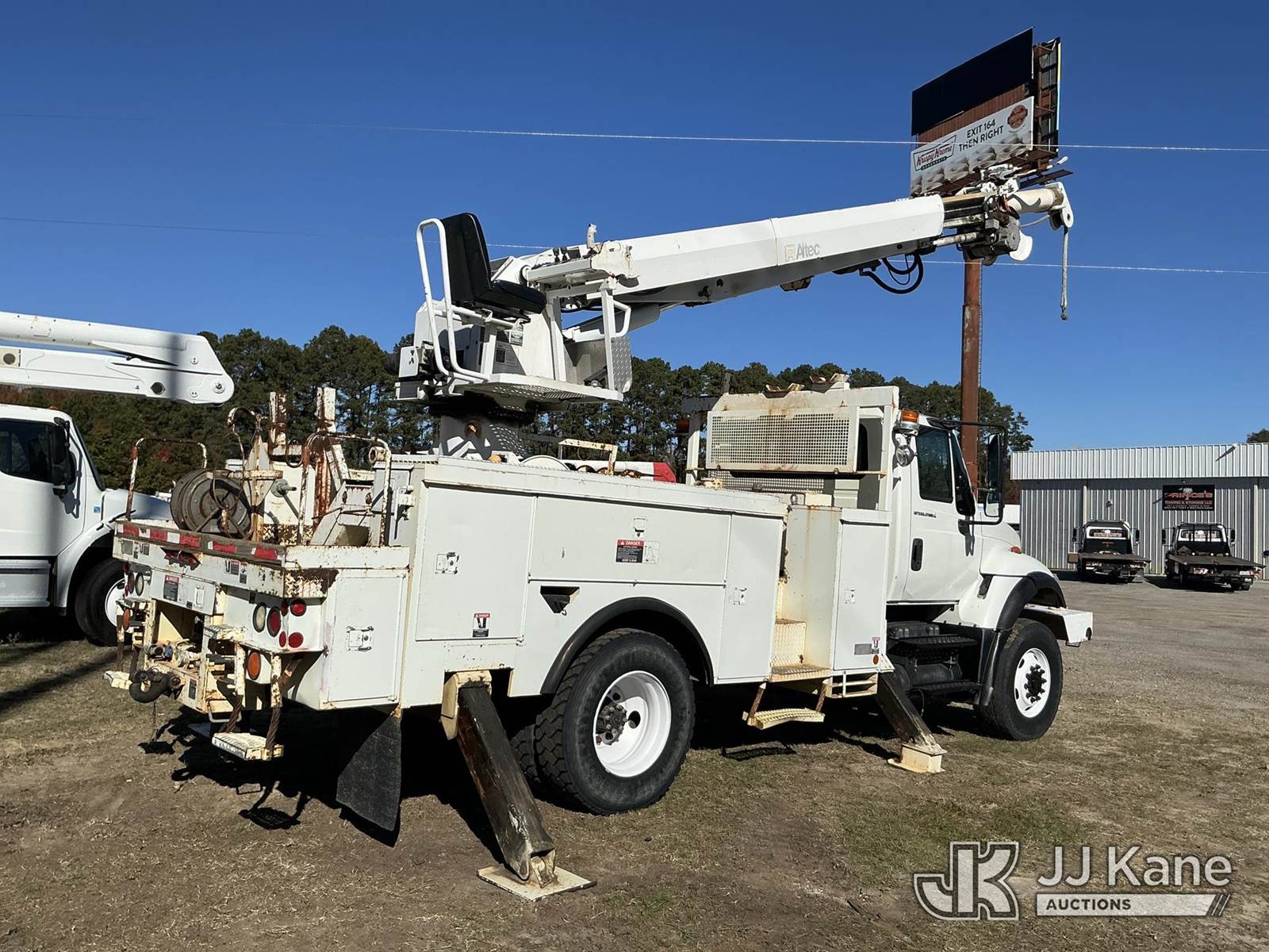 Altec DM45-BR, 19,460 Lb Digger Derrick s/n 1005DV1560, with 45 ft. sheave height, 3 section hyd boom, tip winch, pole grabs, riding console, two speed auger, two augers & 4 hydraulic outriggers, rear mounted on 2006 International 7300 4x4 Utility Truck, DT466 diesel, Auto, A/C, with front winch, (132,617 miles) Co-Op Unit (Runs, Moves, Upper Operates) This is a Titled Item NOTE: This unit is being sold AS IS/WHERE IS via Timed Auction and is located in Florence, SC. Inspection & preview days for this unit are by appointment only; please contact us at contact@jjkane.com or 84-Go-JJKane for more details. (Missing manuals, See Auction Company for Manufacturers Information to obtain manuals) (Buyer is responsible for removal. Assistance by consignor or JJ Kane Auctioneers is not assured.)