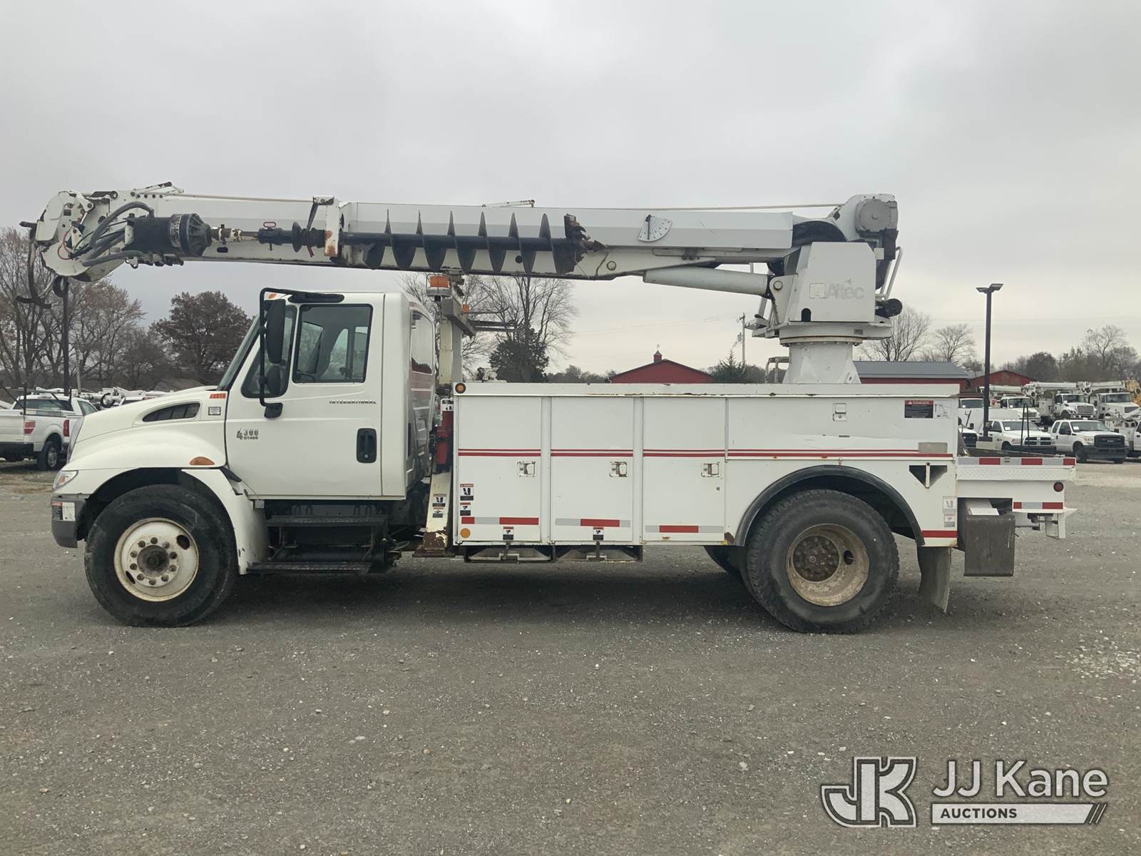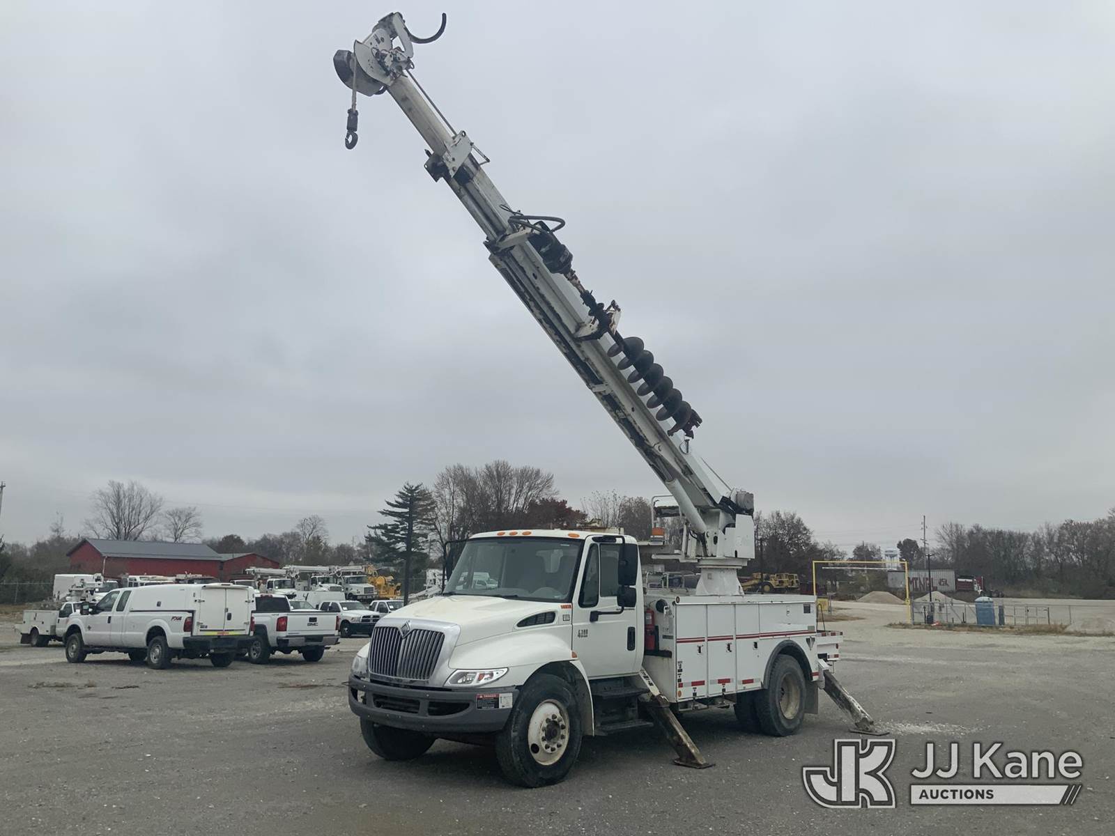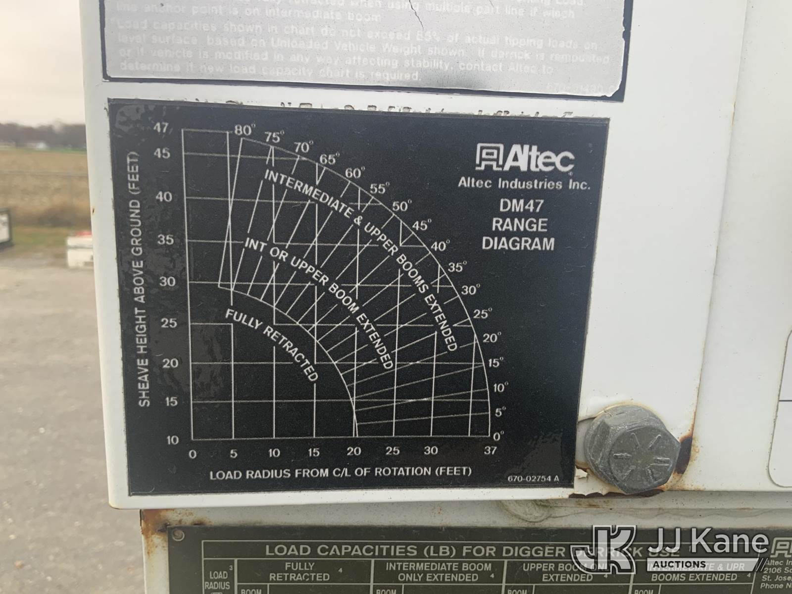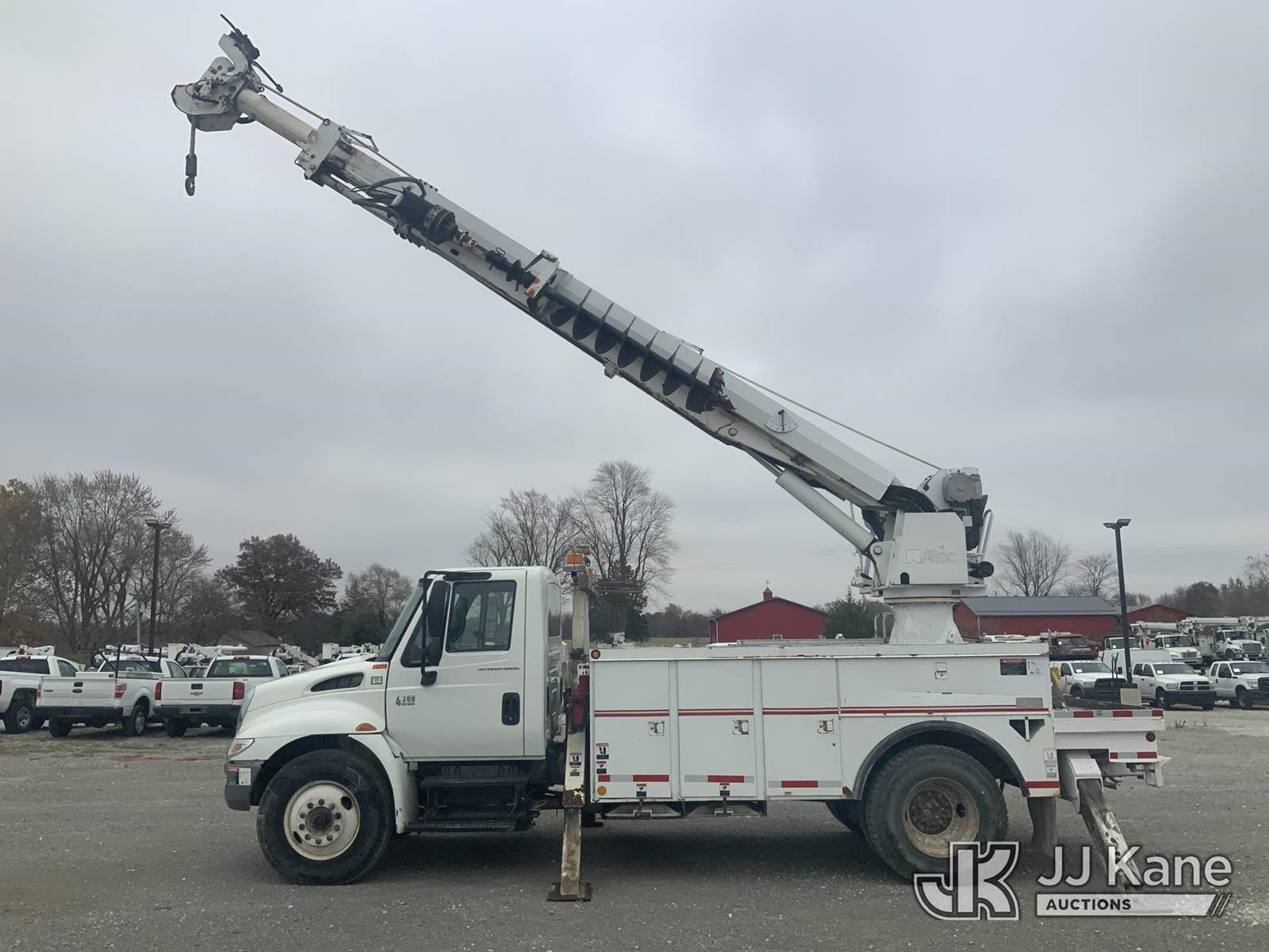 Altec DM47-T, 23,790 Lb Digger Derrick s/n 0605DV1313, with 47ft sheave height, 2spd digger, pole guides, heel winch & riding console, rear mounted on 2006 International 4300 Utility Truck, 7.6L Auto, 4X2, diesel, A/C, (125,770 miles) (Runs, Moves & Upper Operates) (Body Damage) This is a Titled Item NOTE: This unit is being sold AS IS/WHERE IS via Timed Auction and is located in Hawk Point, MO. Inspection & preview days for this unit are the 2 business days prior to the first day of items closing for this auction, item is located at 25 State Highway A Hawk Point, MO 63349 and hours of operations are 8a-4p. For pre-sale questions, please contact Adam Stanek at (636) 295-1594. (Missing manuals, See Auction Company for Manufacturers Information to obtain manuals) (Buyer is responsible for removal. Assistance by consignor or JJ Kane Auctioneers is not assured.)
