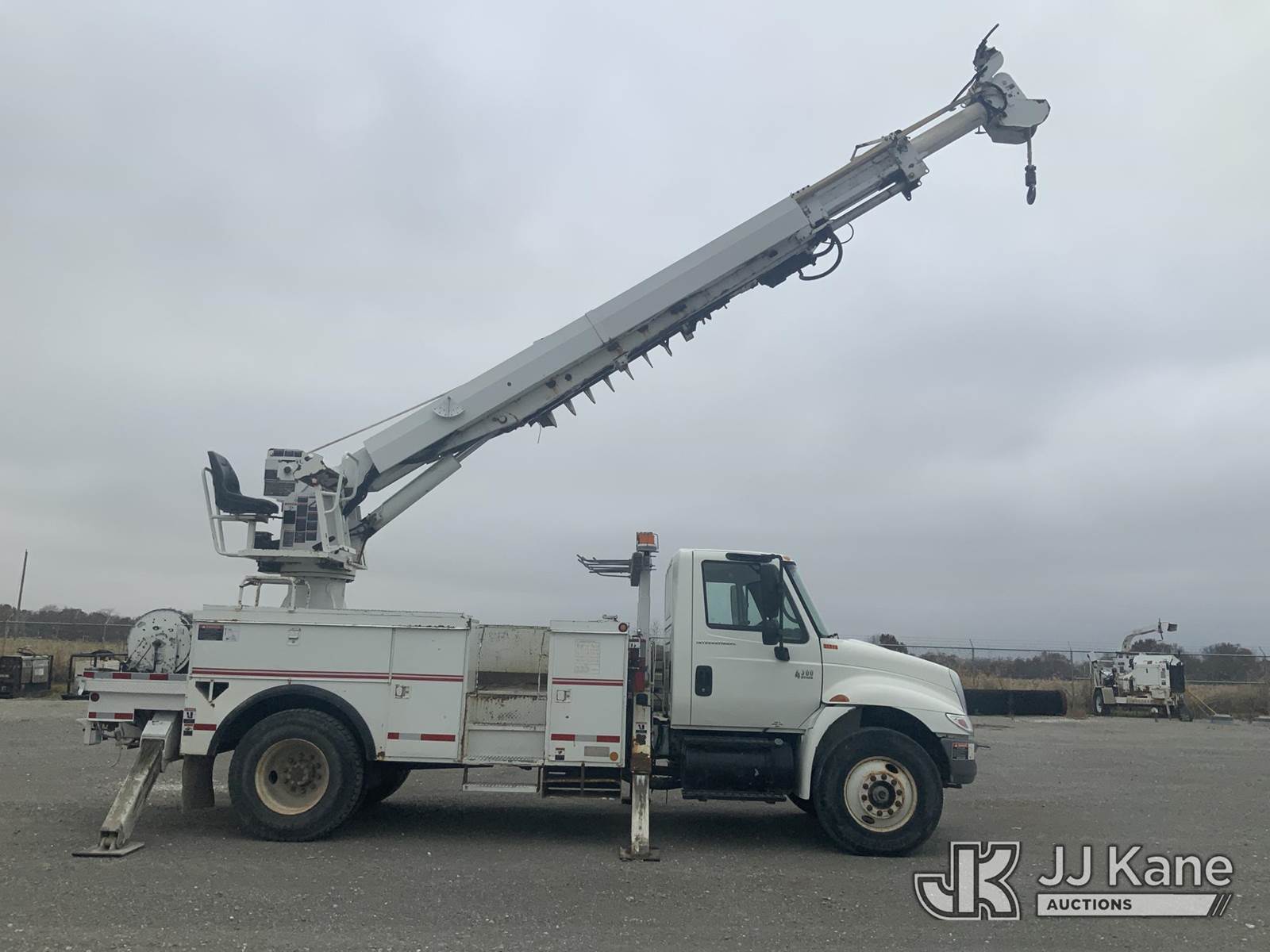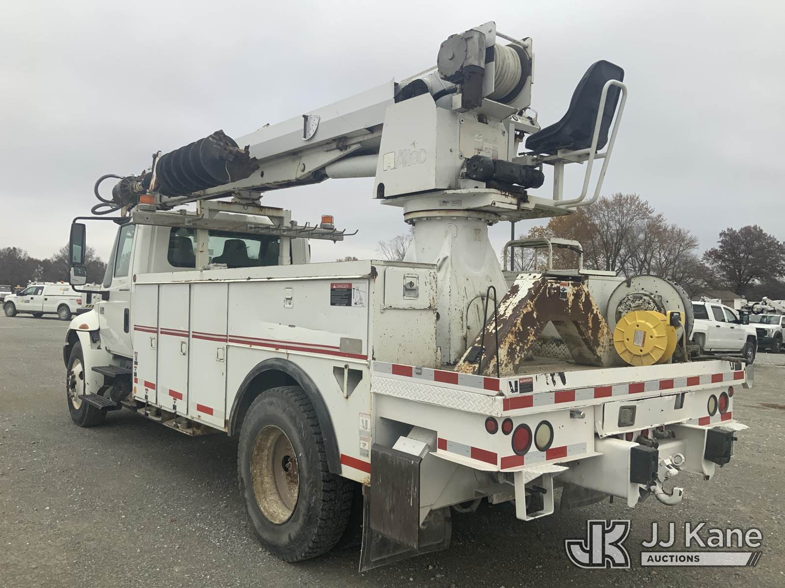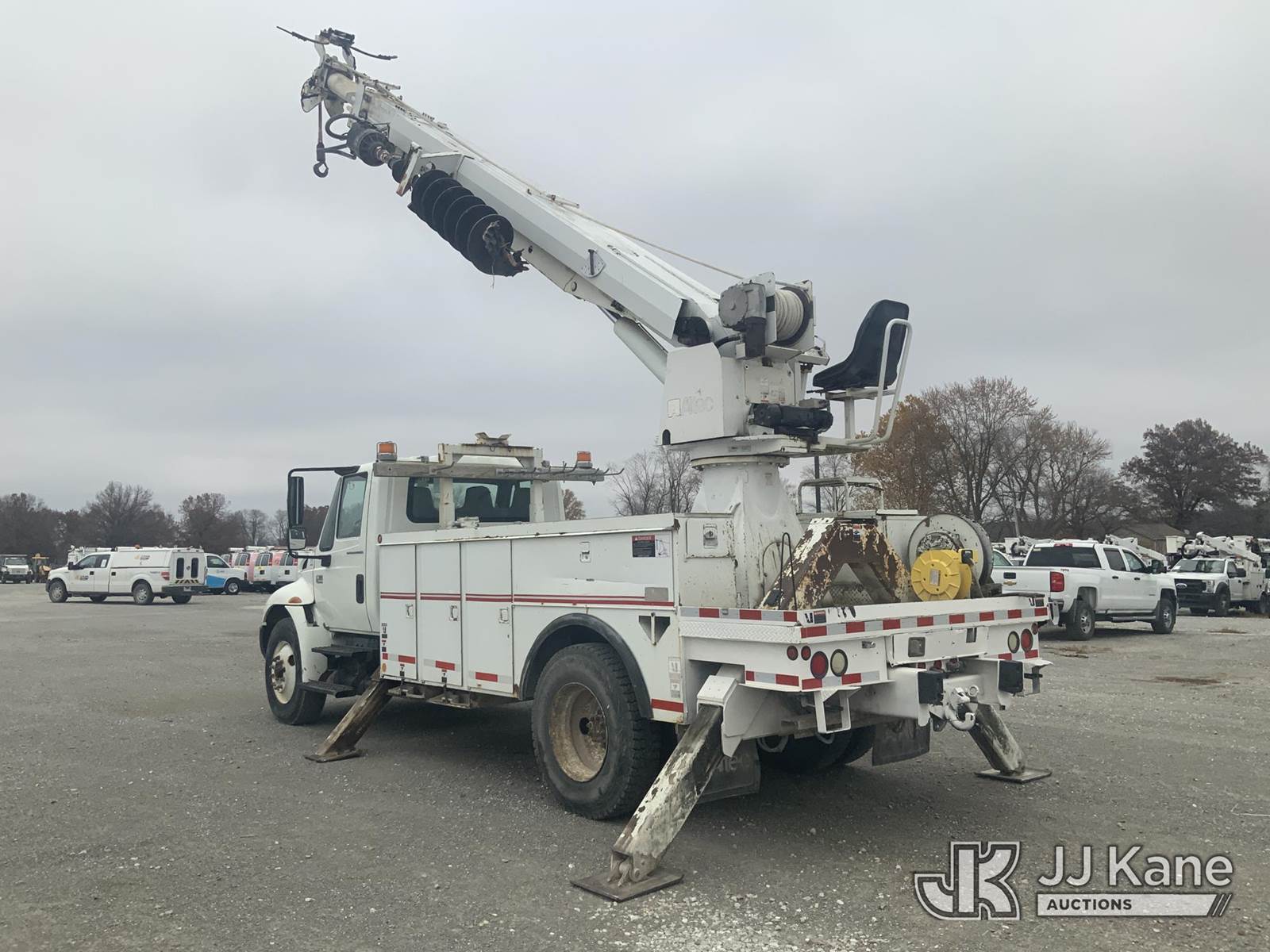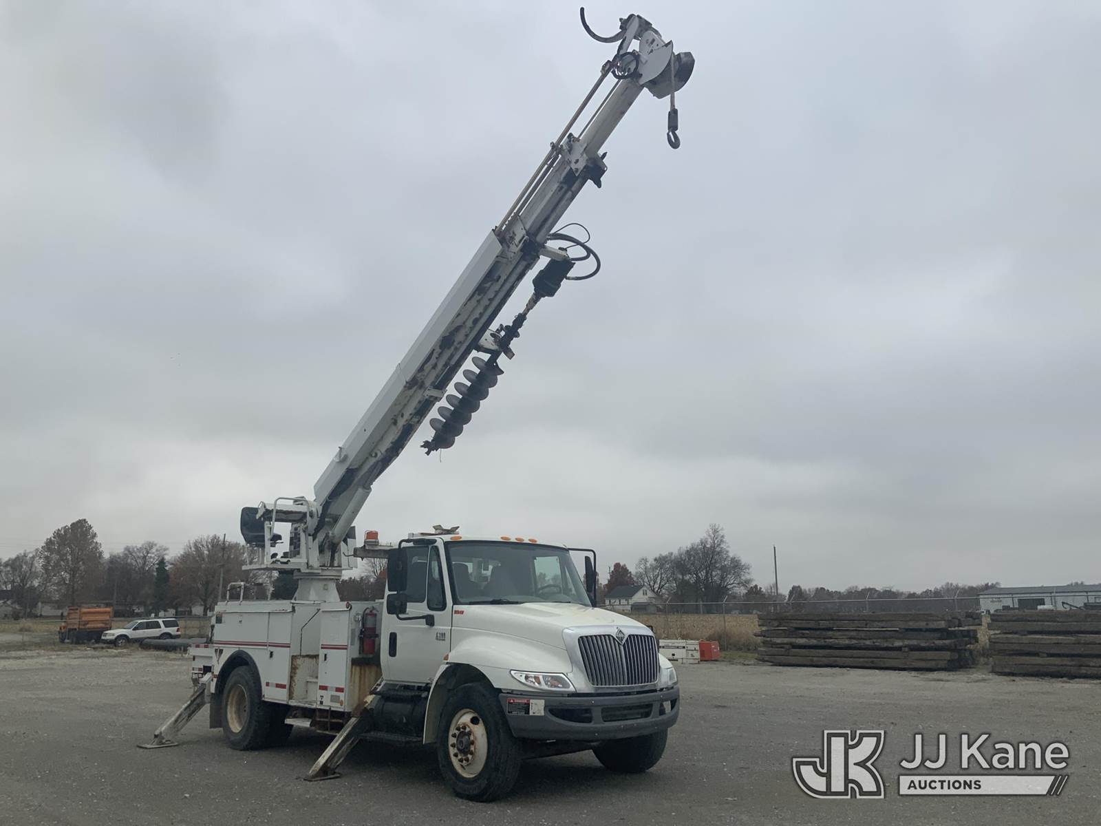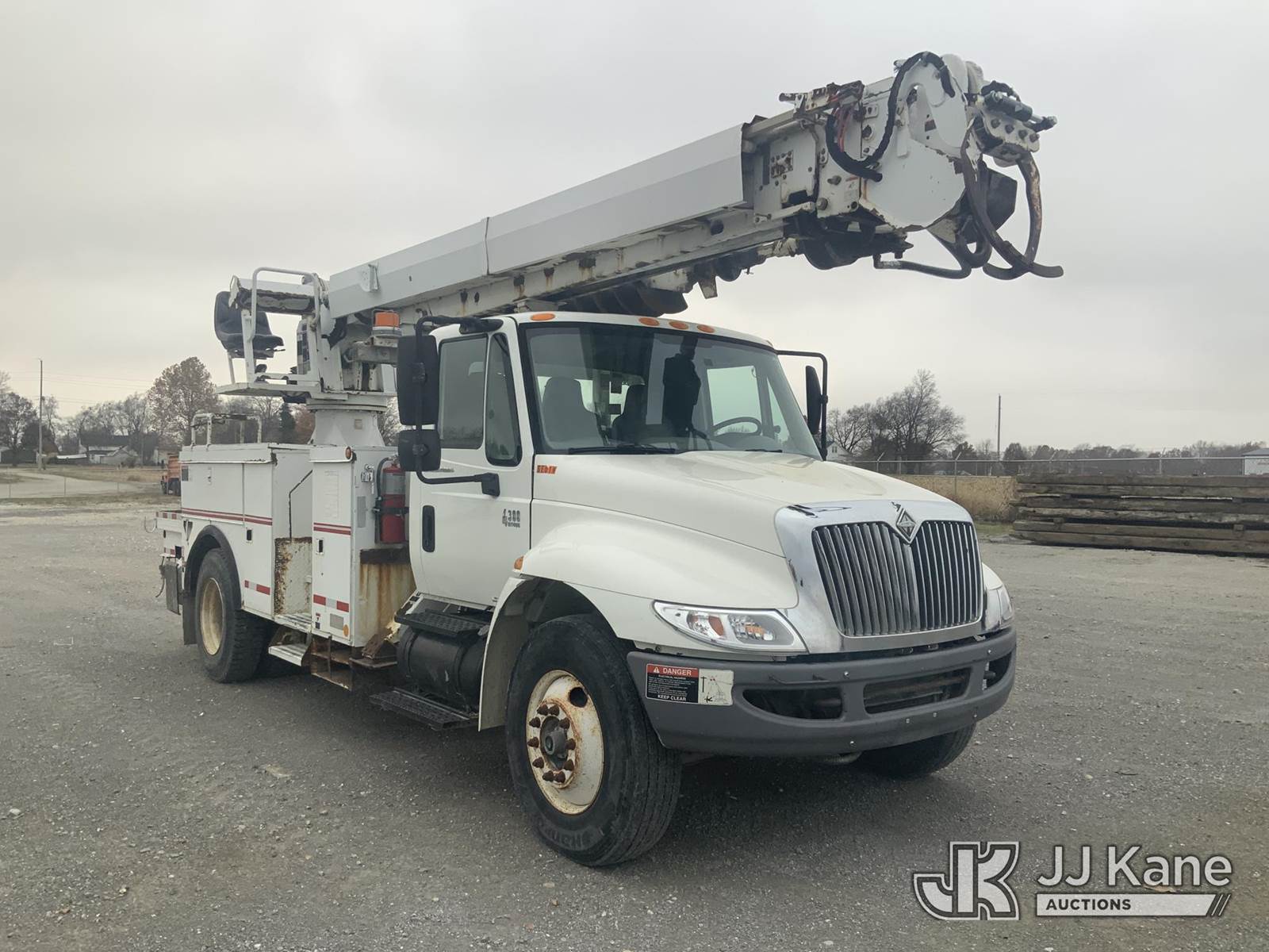 Altec DM47-T, 23,790 Lb Digger Derrick s/n 0605DV1313, with 47ft sheave height, 2spd digger, pole guides, heel winch & riding console, rear mounted on 2006 International 4300 Utility Truck, 7.6L Auto, 4X2, diesel, A/C, (125,770 miles) (Runs, Moves & Upper Operates) (Body Damage) This is a Titled Item NOTE: This unit is being sold AS IS/WHERE IS via Timed Auction and is located in Hawk Point, MO. Inspection & preview days for this unit are the 2 business days prior to the first day of items closing for this auction, item is located at 25 State Highway A Hawk Point, MO 63349 and hours of operations are 8a-4p. For pre-sale questions, please contact Adam Stanek at (636) 295-1594. (Missing manuals, See Auction Company for Manufacturers Information to obtain manuals) (Buyer is responsible for removal. Assistance by consignor or JJ Kane Auctioneers is not assured.)