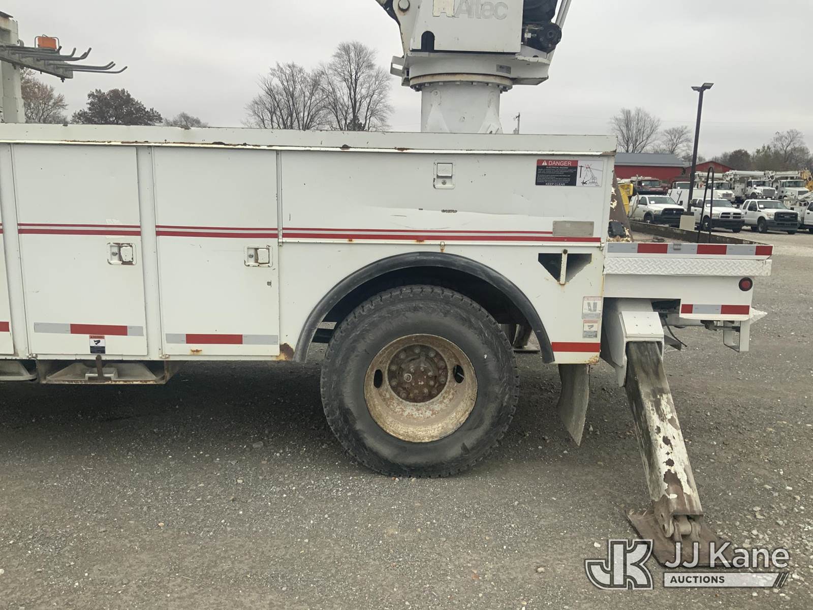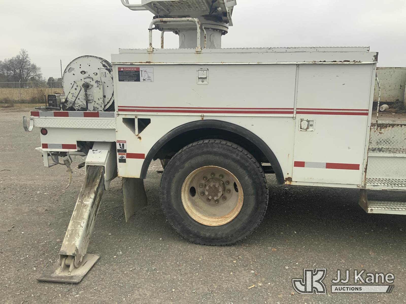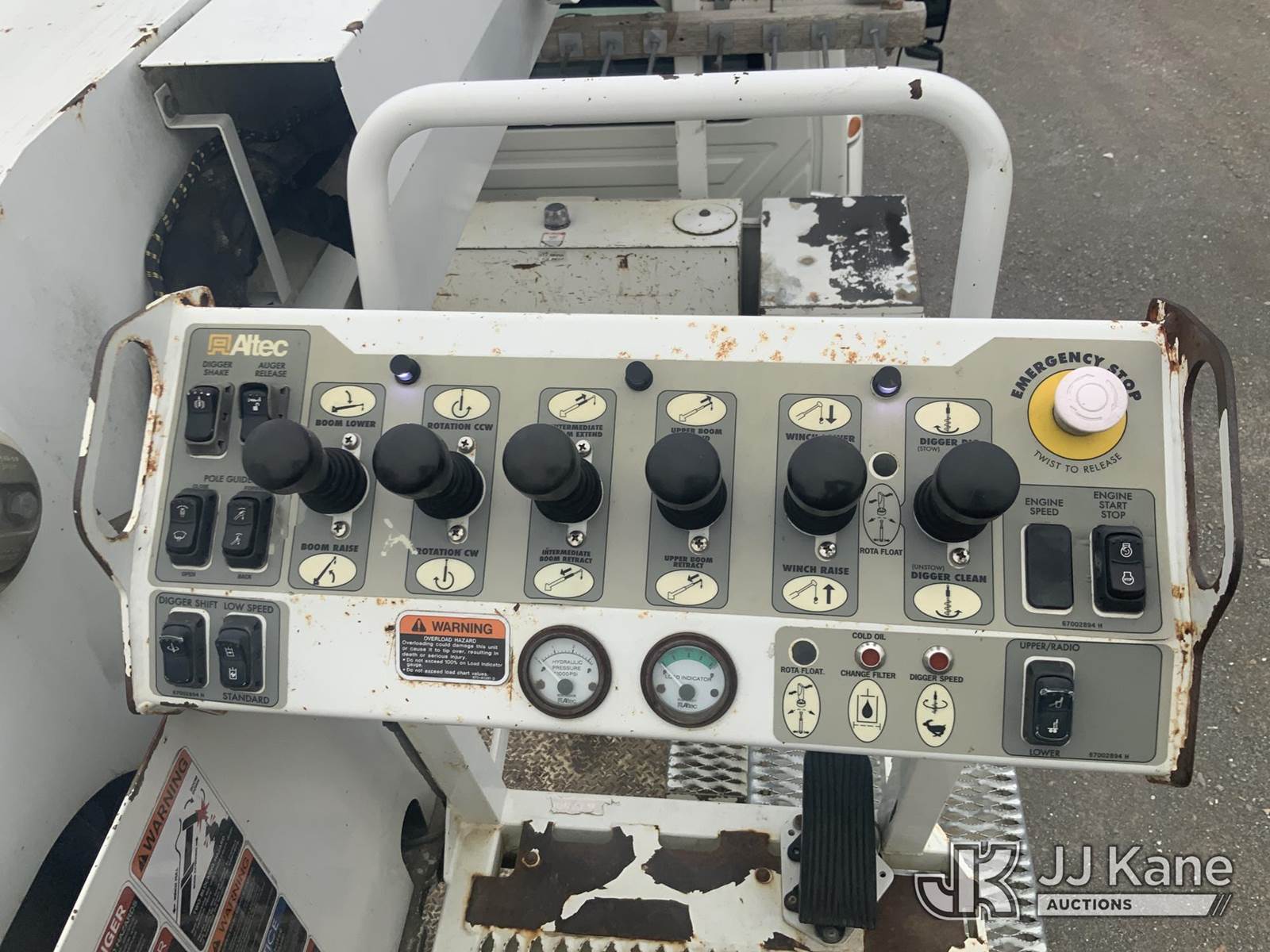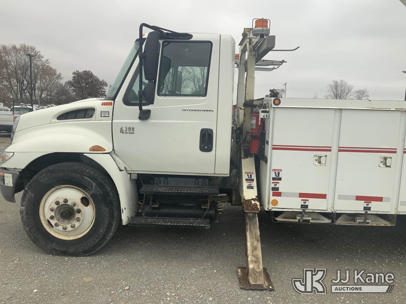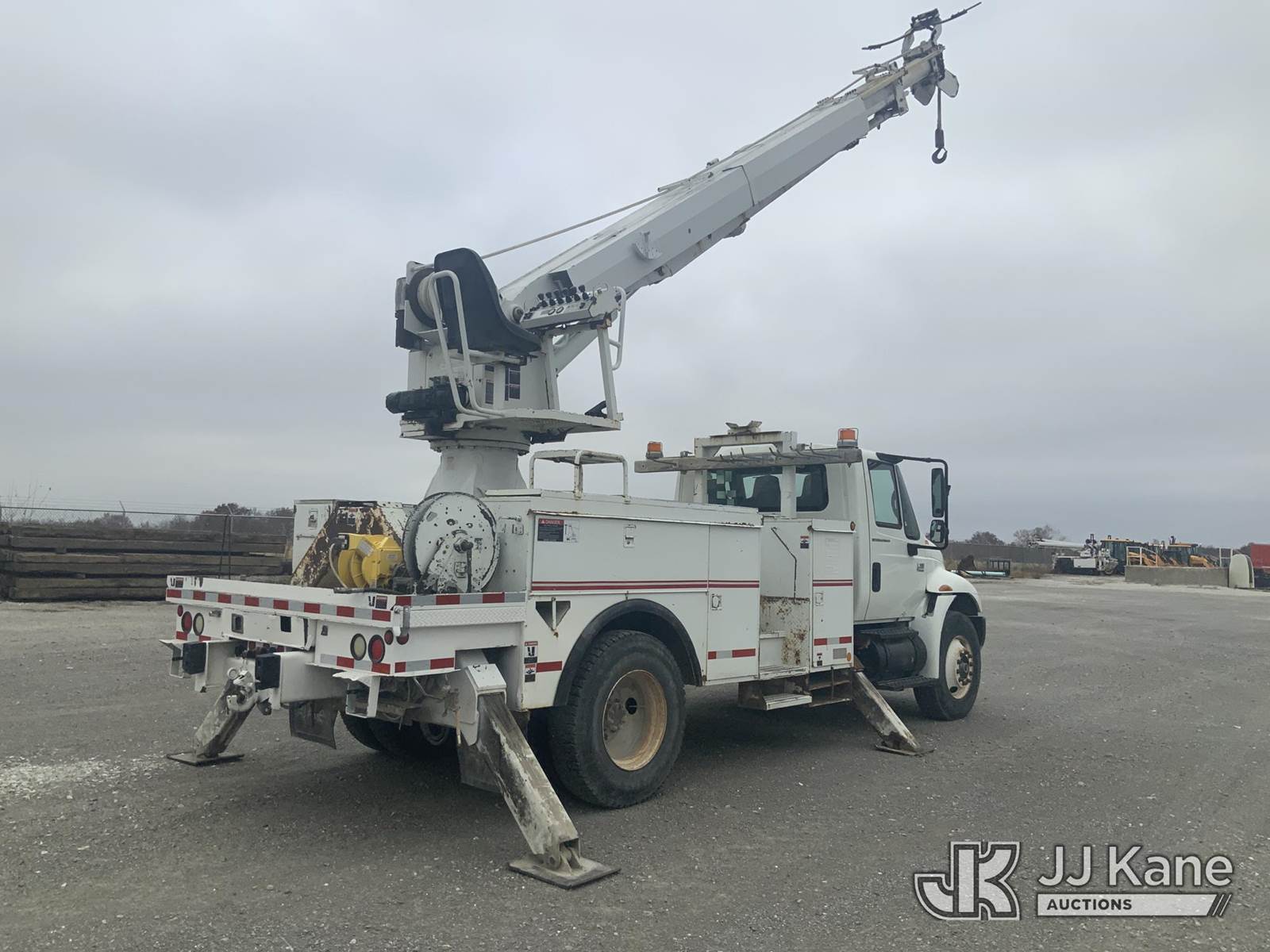 Altec DM47-T, 23,790 Lb Digger Derrick s/n 0605DV1313, with 47ft sheave height, 2spd digger, pole guides, heel winch & riding console, rear mounted on 2006 International 4300 Utility Truck, 7.6L Auto, 4X2, diesel, A/C, (125,770 miles) (Runs, Moves & Upper Operates) (Body Damage) This is a Titled Item NOTE: This unit is being sold AS IS/WHERE IS via Timed Auction and is located in Hawk Point, MO. Inspection & preview days for this unit are the 2 business days prior to the first day of items closing for this auction, item is located at 25 State Highway A Hawk Point, MO 63349 and hours of operations are 8a-4p. For pre-sale questions, please contact Adam Stanek at (636) 295-1594. (Missing manuals, See Auction Company for Manufacturers Information to obtain manuals) (Buyer is responsible for removal. Assistance by consignor or JJ Kane Auctioneers is not assured.)