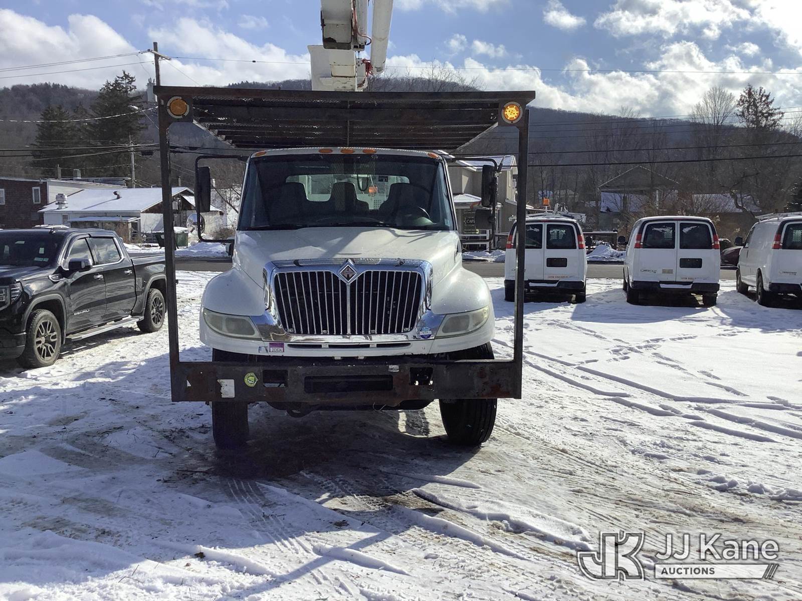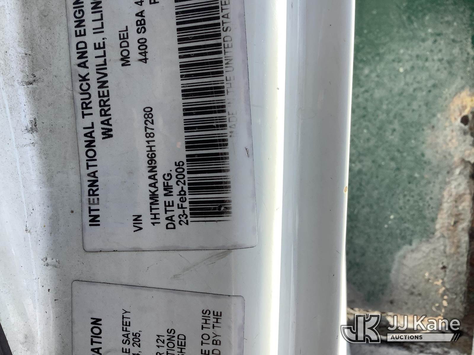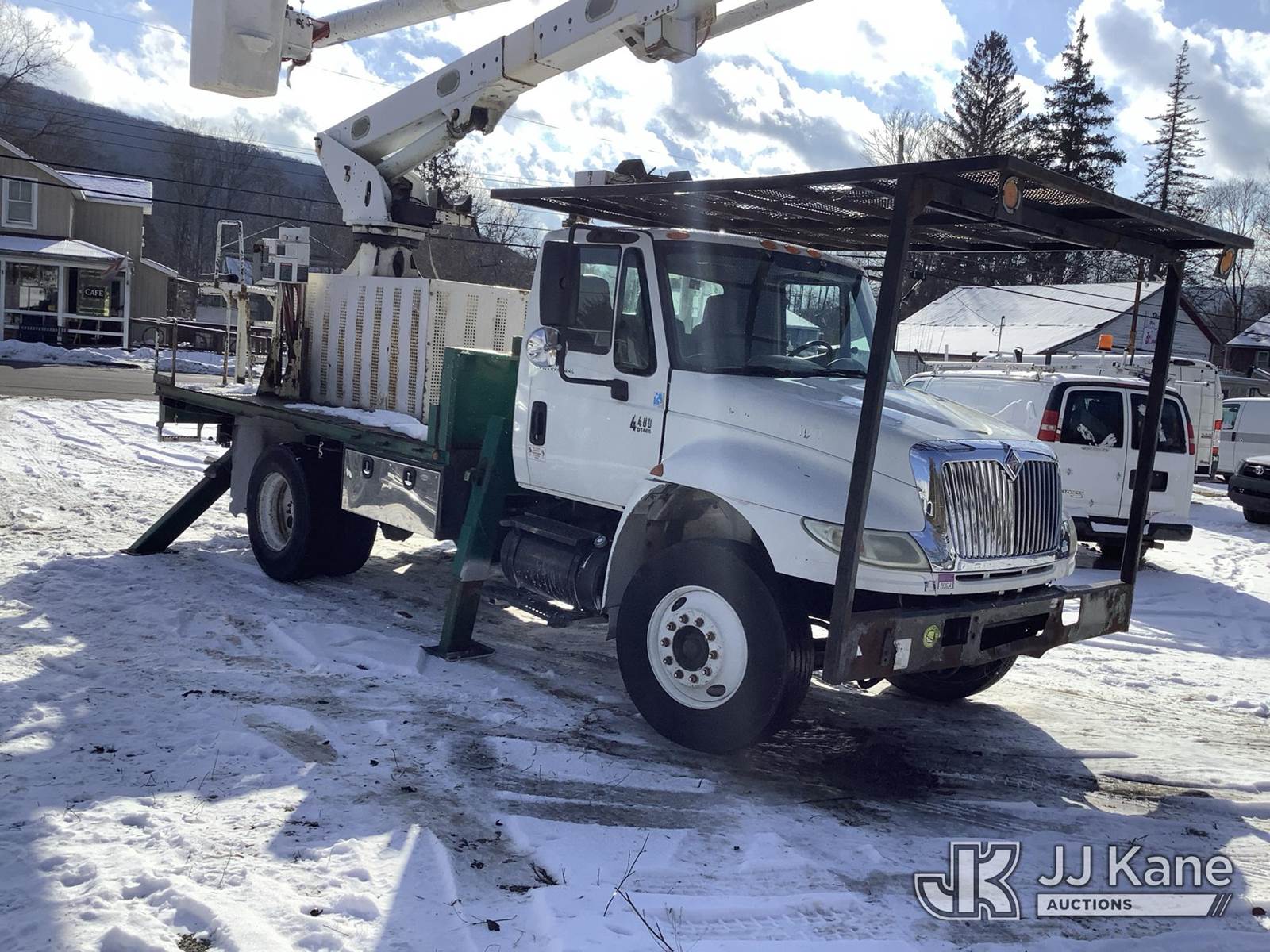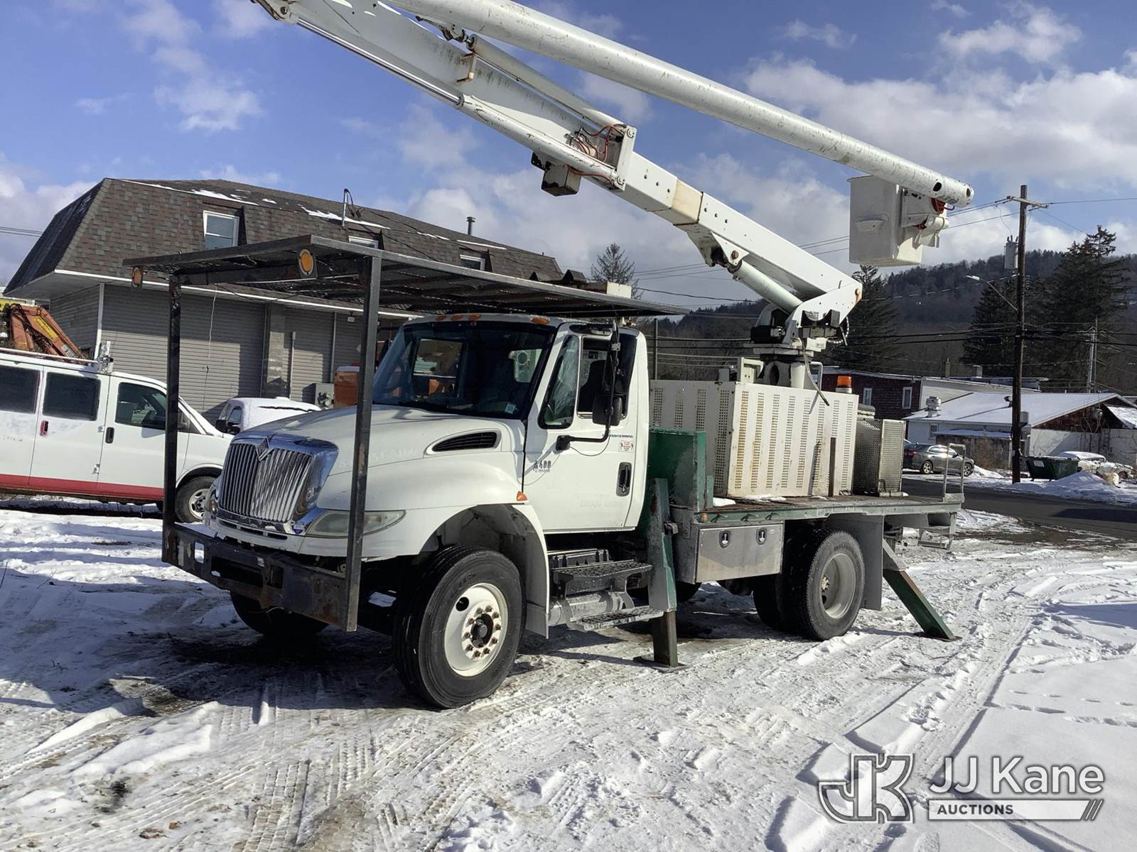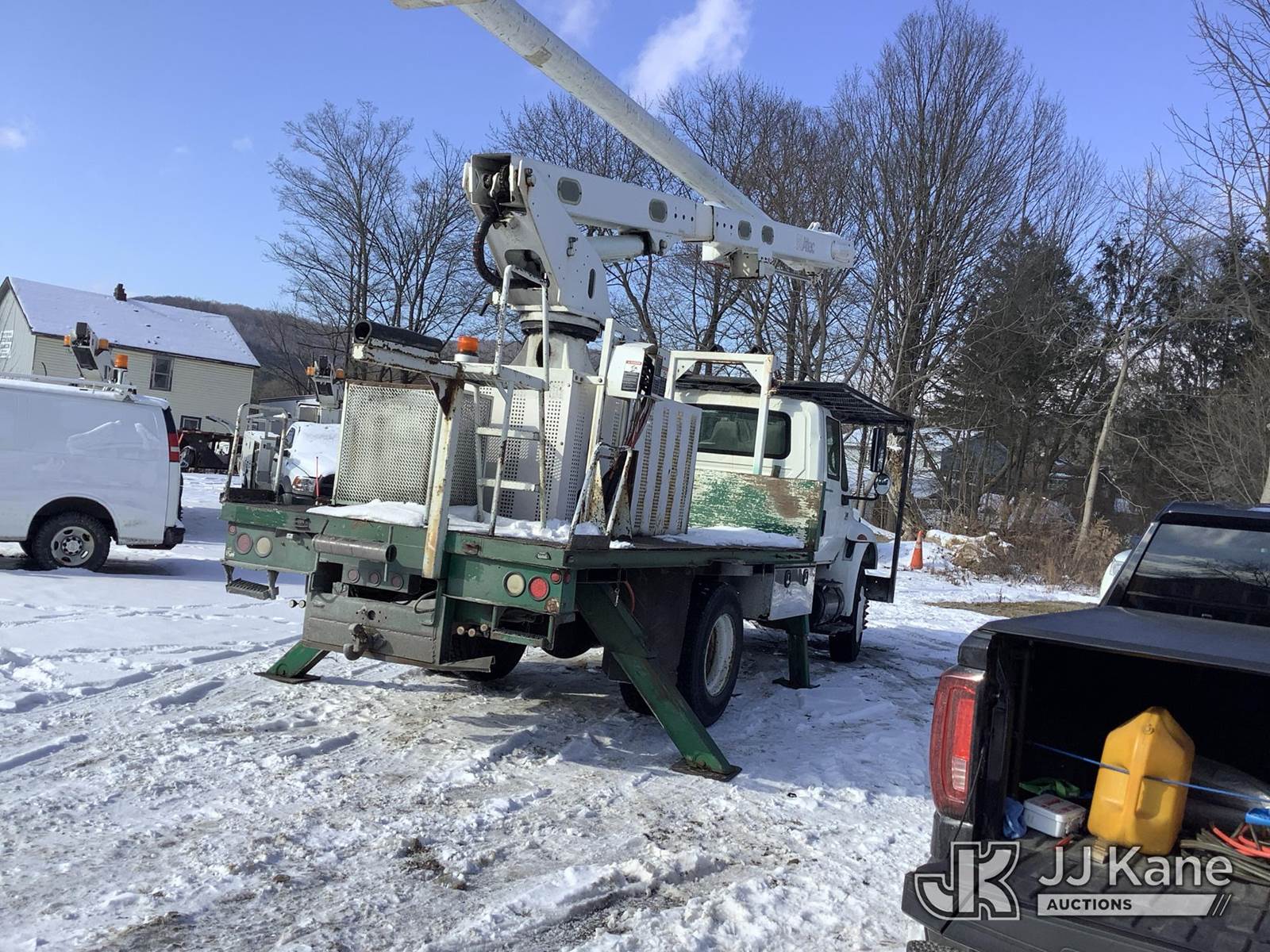 Altec LRV60-E70, 75 ft, Over-Center Elevator Bucket Truck s/n 0305CV3649, with single-man bucket & 4 hyd outriggers, rear mounted on 2006 International 4400 Flatbed Truck, DT466 diesel, 4X2, Auto, (Exempt from Odometer Disclosure - Reads 117,422 miles) (Runs, Moves & Upper Operates) (Body Damage) This is a Titled Item NOTE: This unit is being sold AS IS/WHERE IS via Timed Auction and is located in Deposit, NY. Inspection & preview days for this unit are by appointment only; please contact us at contact@jjkane.com or 84-Go-JJKane for more details. (Missing manuals, See Auction Company for Manufacturers Information to obtain manuals) (Buyer is responsible for removal. Assistance by consignor or JJ Kane Auctions is not assured.)