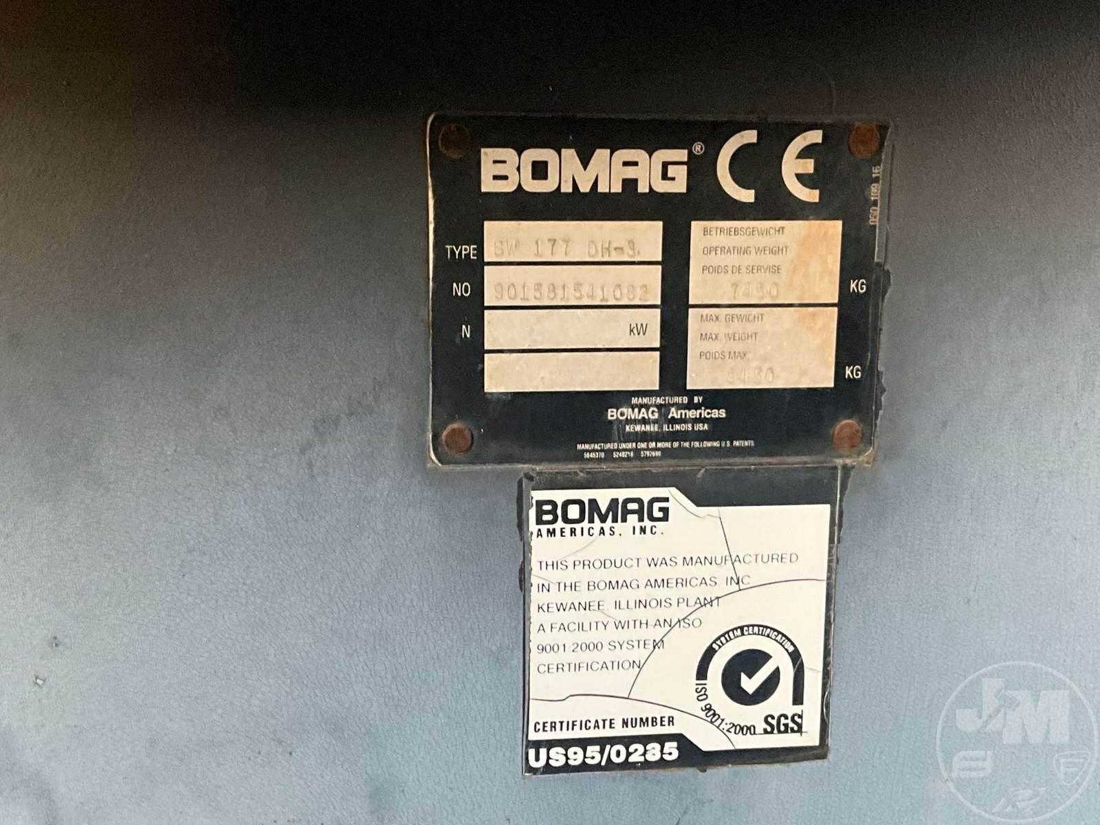 BOMAG TANDEM VIBRATORY ROLLER, DEUTZ, DIESEL, 2 CYL ENGINE, OPEN OPERATOR STATION, DRUM SIZE 48, HOUR METER READS: 2113, HAS WATER TANK NO...