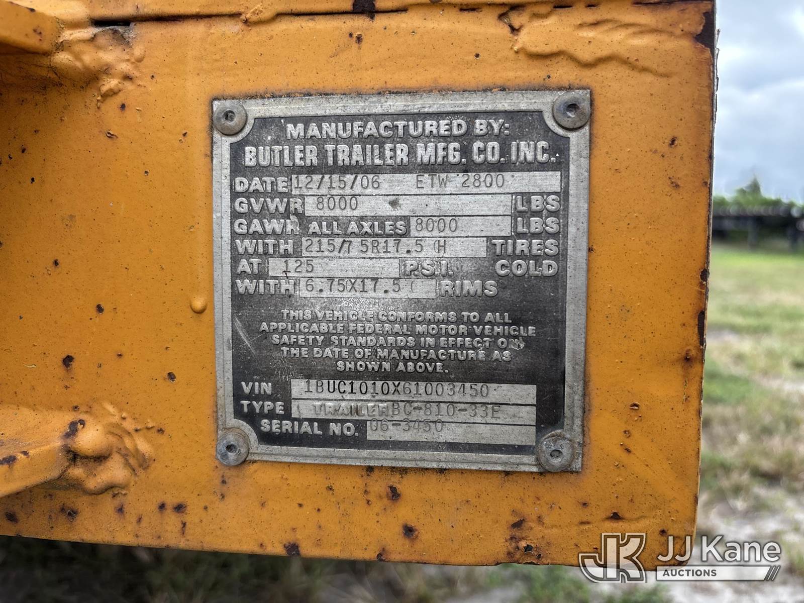 2006 Butler BC-810-33E S/A Material Trailer, with 10 ft. long, (Body & Paint Damage) (FL Residents Purchasing Titled Items - tax, title & registration fees will be collected at the maximum rate of $400.00 under 25,999 and $800.00 for Over 26,000 and $250.00 trailers - Proof of insurance is mandatory; Out of State Residents Purchasing Title Items - tax will be collected based upon your state rate.) This is a Titled Item NOTE: This unit is being sold AS IS/WHERE IS via Timed Auction and is located in Westlake, FL. Inspection & preview days for this unit are the 2 business days prior to the first day of items closing for this auction, item is located at 4003 Seminole Pratt Whitney Rd Westlake, FL 33470 and hours of operations are 8a-4p. For pre-sale questions, please contact: Matt Johnson @ (205) 847-9106. (Buyer is responsible for removal. Assistance by consignor or JJ Kane Auctions is not assured.)