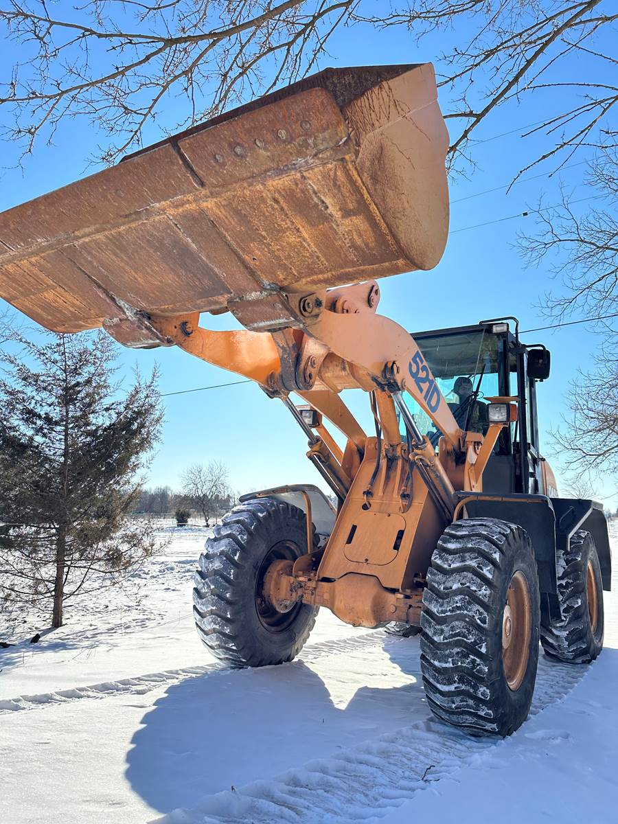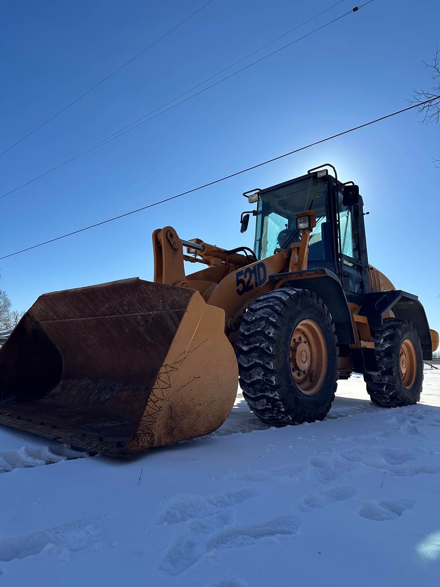 Case 521D Loader, 9,350 Hours, Enclosed Cab, Heat, Cummins diesel motor, 119HP, Operating Weight 22k lbs, Machine runs and operates great, work ready. Comes with 96 inch bucket. Also have available for extra cost 2 yard bucket and 2 different 12 FT. snow pushers.