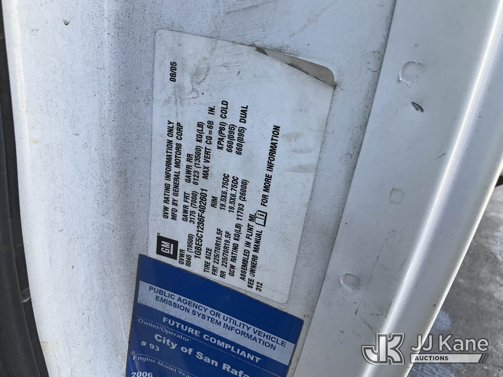 2006 Chevrolet C5C042 Dump Truck, 6.6L V8 OHV 32V TURBO DIESEL Auto, 4X2, with tow package, (82,828 miles) (Runs, Moves, & Dump Operates ) Subject to CARB Regs,CARB non Compliant,Cannot Operate on CA Roads/Highways until Compliant This is a Titled Item NOTE: This unit is being sold AS IS/WHERE IS via Timed Auction and is located in Dixon, CA. Inspection & preview days for this unit are the 2 business days prior to the first day of items closing for this auction, item is located at 8668 Sparling Ln Dixon, CA 95620 and hours of operations are 8a-4p. For pre-sale questions, please contact JJ Kane Staff at (707) 678-8060 (dixon@jjkane.com). Dealer License Number 45696. (Buyer is responsible for removal. Assistance by consignor or JJ Kane Auctioneers is not assured.)