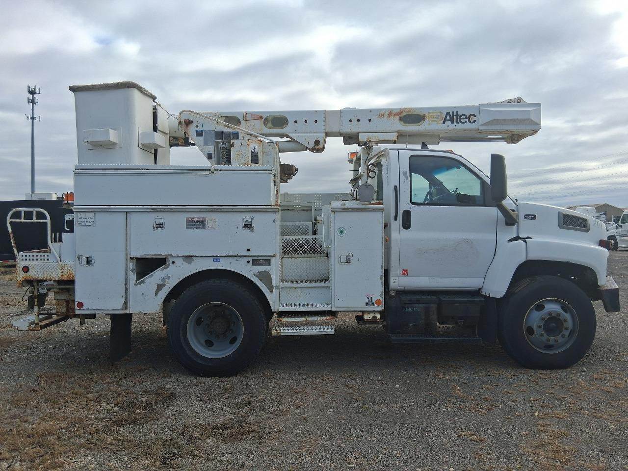 PROD TEST UNIT - NOT FOR SALE! 2006 Chevrolet 7500 4x2 ALTEC L-37MR Bucket Truck, Isuzu 7.8L@200 H.P. 180,138 Miles, Allison 2500 Series 6 Speed Automatic Overdrive Transmission, 10,000 L.B. Front Axle, 19,000 L.B. Rear Axle with 5.29 Gear Ratio on Spring Suspension, 25,950 L.B. GVWR, Air Brakes, 11R22.5 Rubber on Steel Budd Wheels, P/s A/C, High Back Bucket Seats, Front Bumper Winch and Tow Hooks, Material Handler Jib, Reese Receiver Hitch. Unit sold as-is where-is in Middletown OH. Inspection completed by a non-bias, qualified, 3rd party. Additional findings, videos, and photos can be found on the circle inspection icon below. Financing and transportation available