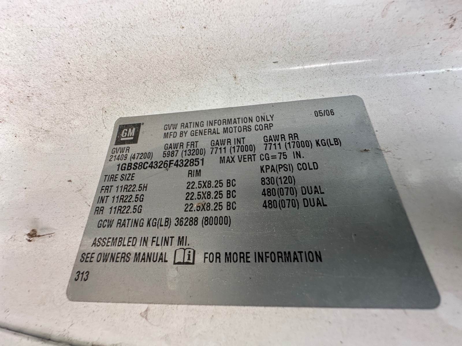 2006 Chevrolet C8500/Altec AA755L Bucket Truck- 400 HP Duramax Diesel, Allison Automatic Transmission, Tool Boxes, Air/Electric to Rear, Pintle Hitch, GVWR- 47,200 LBS., Front Axle- 13,200, Rear Axles- 34K Weight Rating, Wheelbase- 186", Spring Suspension, Altec AA755L Bucket Boom. COMES AS IS/WHERE IS.