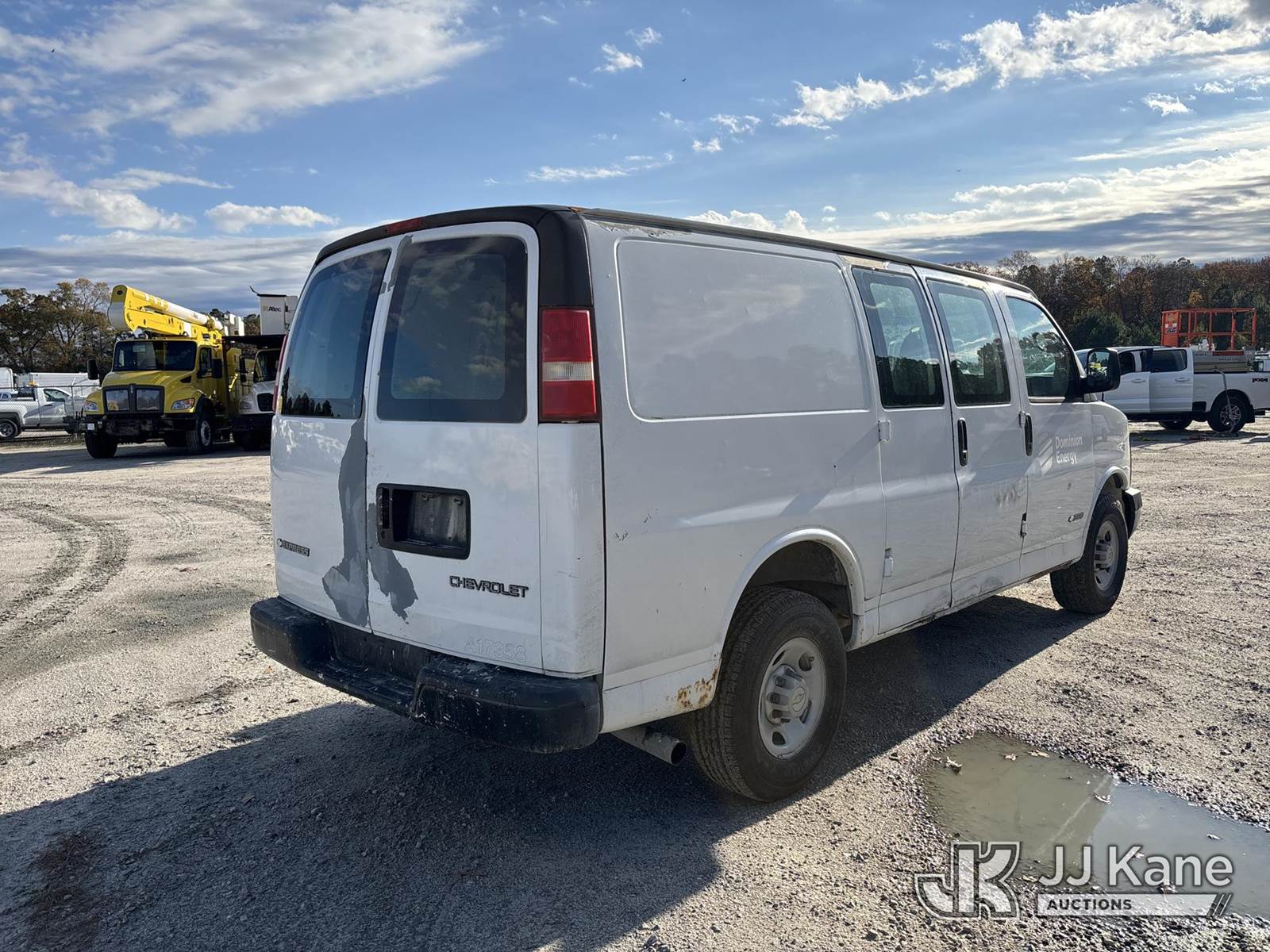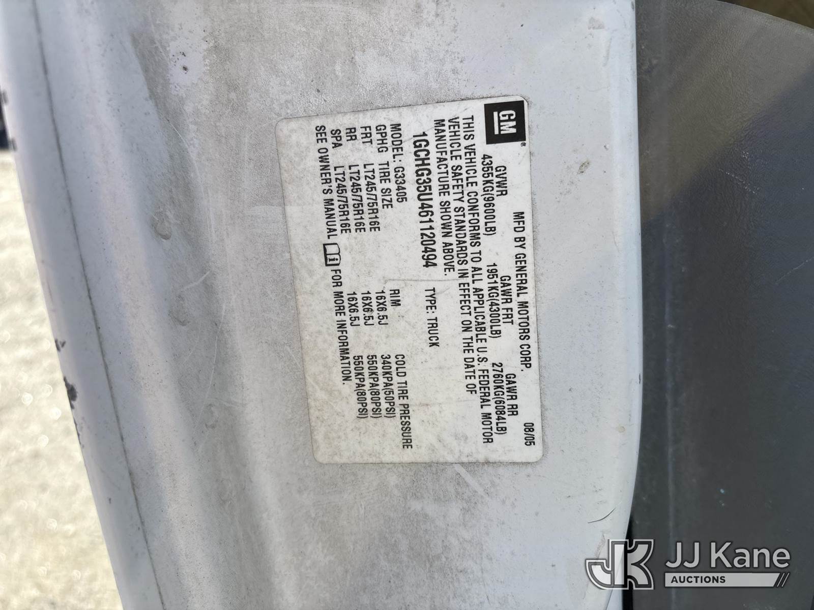 2006 Chevrolet Express G3500 Cargo Van, 6.0L V8 OHV 16V gas, 4-Speed Automatic, RWD, A/C, (Exempt from Odometer Disclosure - Reads 195,725 miles) (Runs & Moves) (Airbag Light On, Back Hatch Does Not Open, Body/Paint/Rust Damage) (TITLE DELAY) This is a Titled Item NOTE: This unit is being sold AS IS/WHERE IS via Timed Auction and is located in Chester, VA. Inspection & preview days for this unit are the 2 business days prior to the first day of items closing for this auction, item is located at 13301 Great Coastal Dr Chester, VA 23836 and hours of operations are 8a-4p. For pre-sale questions, please contact Chandler Blanton @ 804-807-4574. Sales Tax Collected Based on Residency Title To Come From Leasing Company In 30 Days(Buyer is responsible for removal. Assistance by consignor or JJ Kane Auctions is not assured.)