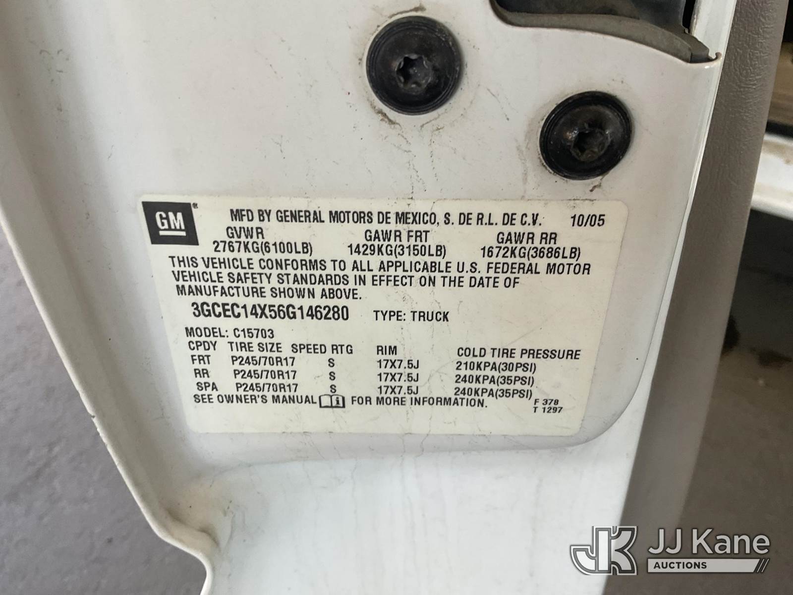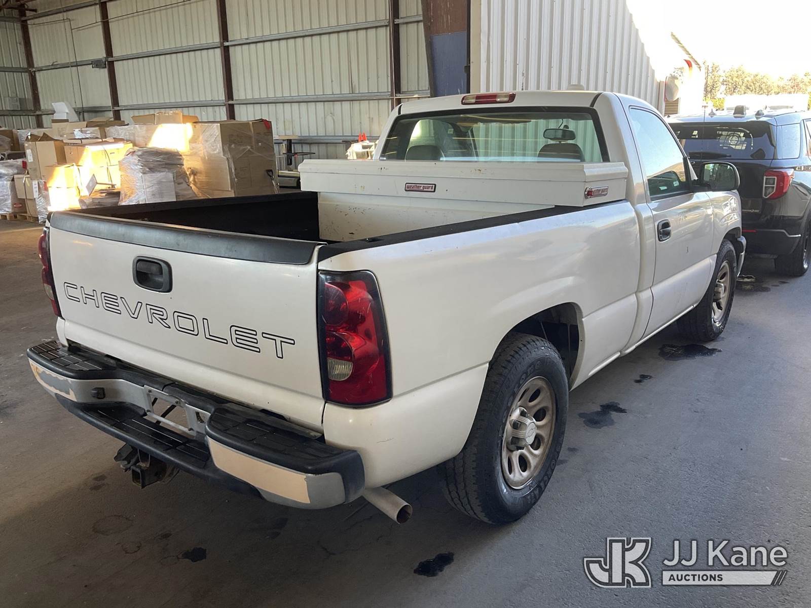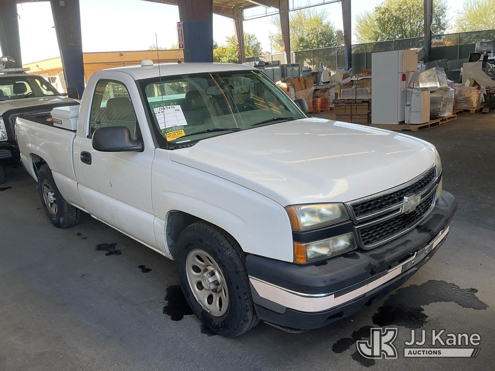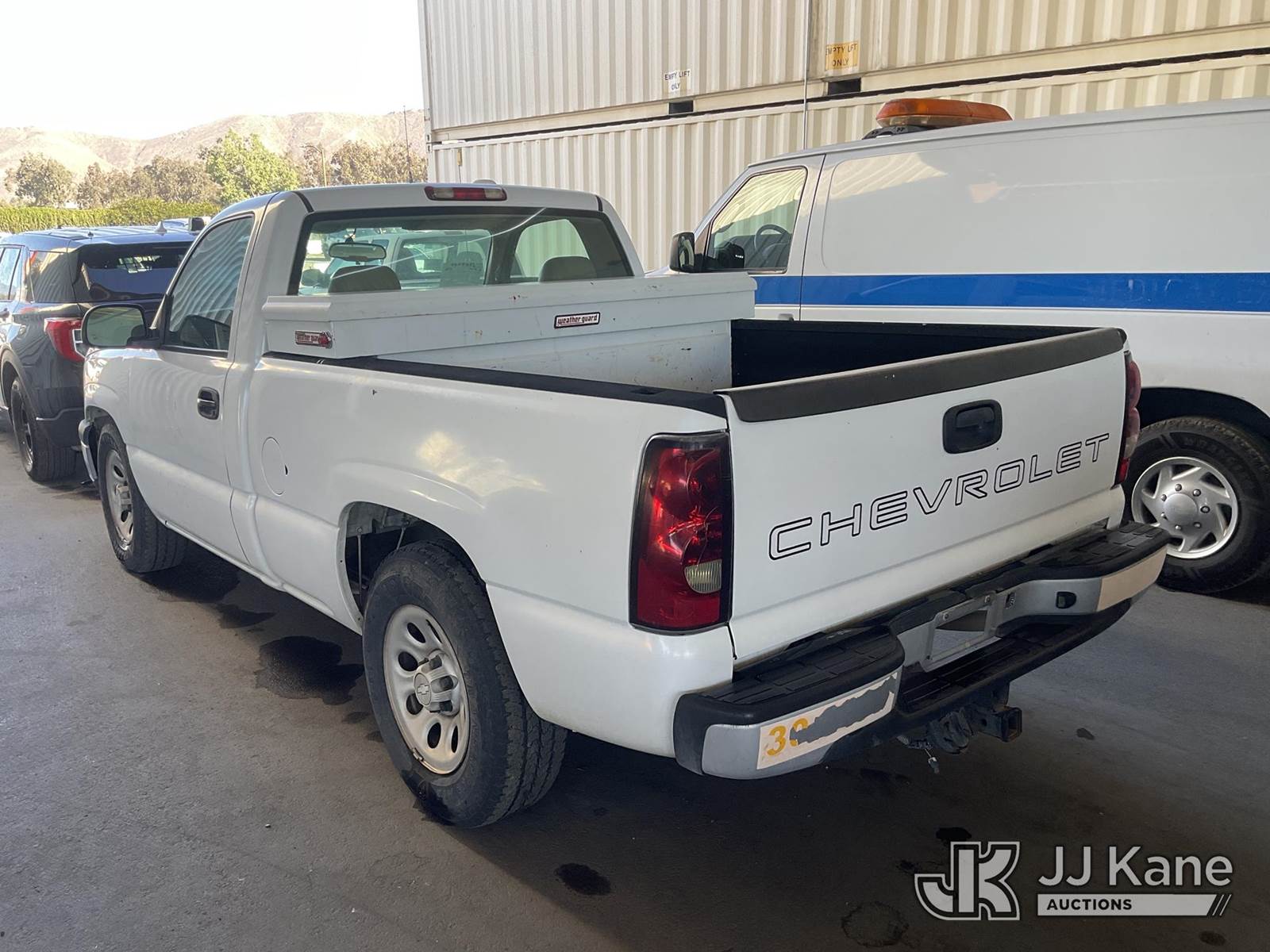 2006 Chevrolet Silverado 1500 Pickup Truck, s/n 3GCEC14X56G146280, 6-cyl gas, Auto, A/C, with Tow Package, Tool Box, (82,304 miles) (Runs & Moves) This is a Titled Item NOTE: This unit is being sold AS IS/WHERE IS via Timed Auction and is located in Jurupa Valley, CA. Inspection & preview days for this unit are the 2 business days prior to the first day of items closing for this auction, item is located at 4510 Muth Way Jurupa Valley, CA 92509 and hours of operations are 8a-4p. For pre-sale questions, please contact please contact Office Staff @ (310) 353-7140. Dealer License Number 45696. (Buyer is responsible for removal. Assistance by consignor or JJ Kane Auctioneers is not assured.)