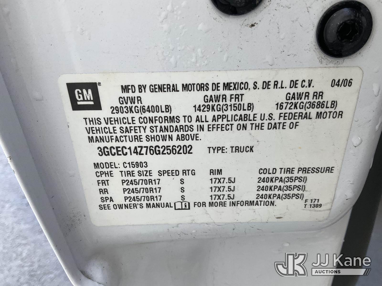 2006 Chevrolet Silverado 1500 Pickup Truck, 8-cyl gas, 4-Speed Automatic, A/C, with Tow package, (Exempt from Odometer Disclosure - Reads 38,808 miles) (Runs & Moves) This is a Titled Item NOTE: This unit is being sold AS IS/WHERE IS via Timed Auction and is located in Jurupa Valley, CA. Inspection & preview days for this unit are the 2 business days prior to the first day of items closing for this auction, item is located at 4510 Muth Way Jurupa Valley, CA 92509 and hours of operations are 8a-4p. For pre-sale questions, please contact please contact Office Staff @ (310) 353-7140. Dealer License Number 45696. (Buyer is responsible for removal. Assistance by consignor or JJ Kane Auctions is not assured.)