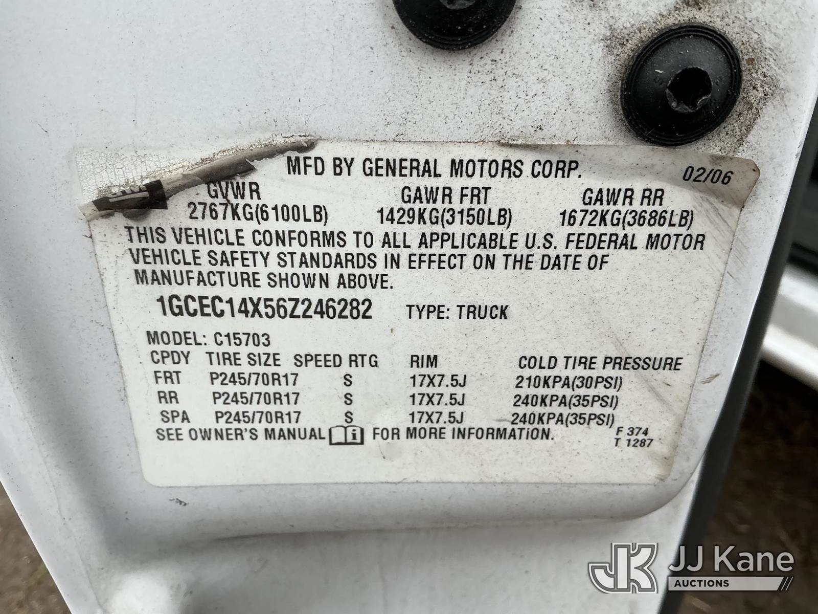 2006 Chevrolet Silverado 1500 Pickup Truck, 4.3L V6 OHV 12V gas, RWD, Auto, A/C, (Exempt from Odometer Disclosure - Reads 106,381 miles) State of FL Unit (Runs & Moves) (Jump To Start, Needs Battery)(FL Residents Purchasing Titled Items – tax, title & registration fees will be collected at the maximum rate of $400.00 under 25,999 and $800.00 for Over 26,000 and $250.00 trailers – Proof of insurance is mandatory; Out of State Residents Purchasing Title Items – tax will be collected based upon your state rate.) This is a Titled Item NOTE: This unit is being sold AS IS/WHERE IS via Timed Auction and is located in Thonotosassa, FL. Inspection & preview days for this unit are the 2 business days prior to the first day of items closing for this auction, item is located at 11720 N US 301 Thonotosassa, Fl 33592 and hours of operations are 8a-4p. For pre-sale questions, please contact Office Staff @ (813) 986-2485. (Buyer is responsible for removal. Assistance by consignor or JJ Kane Auctions is not assured.)
