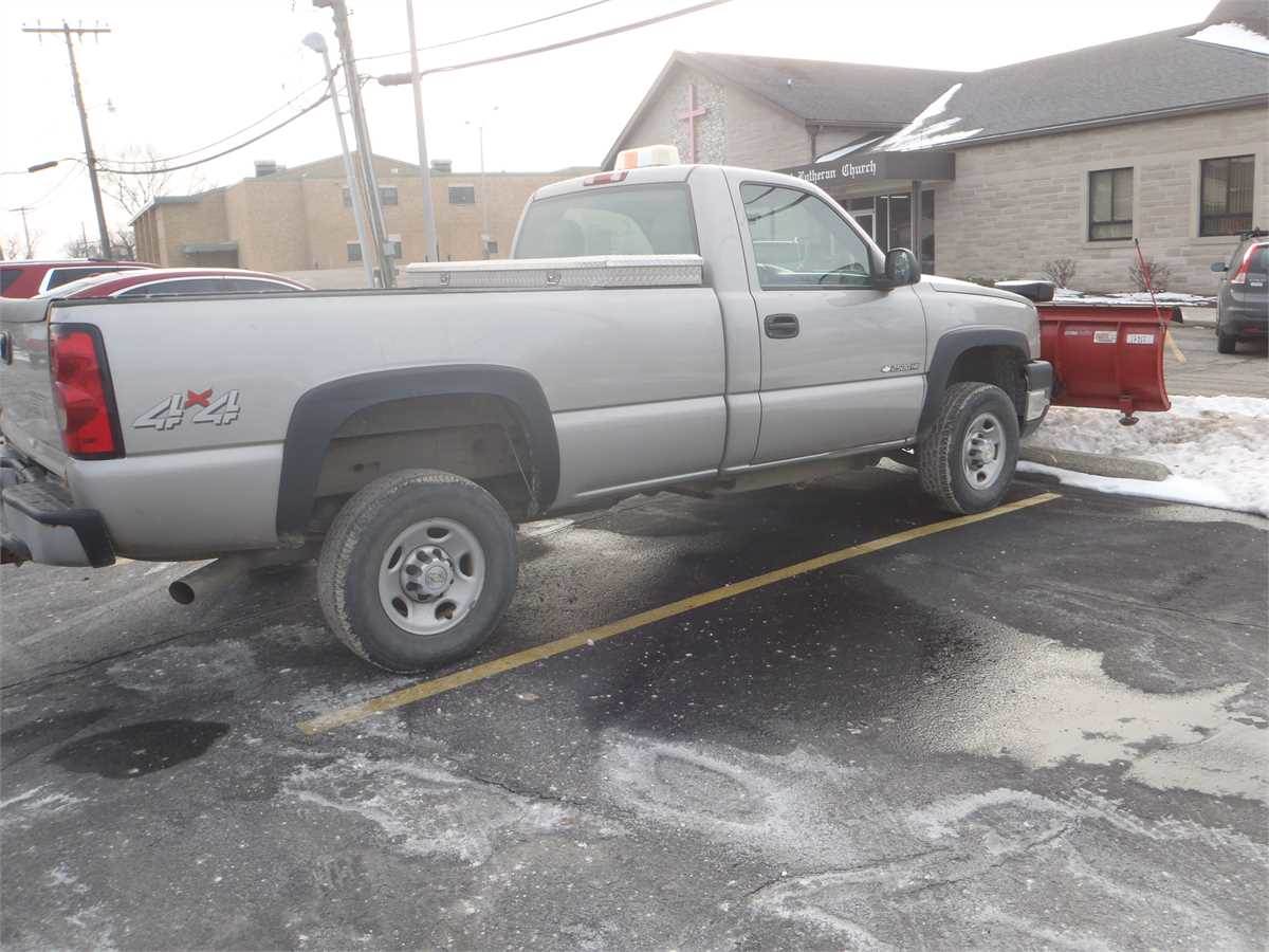2006 Chevy 2500HD, 8' western snowplow, cross bed toolbox, has a few dings and dents.