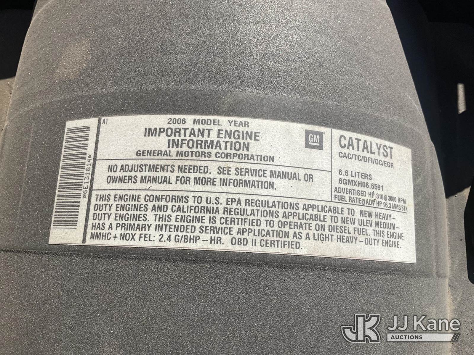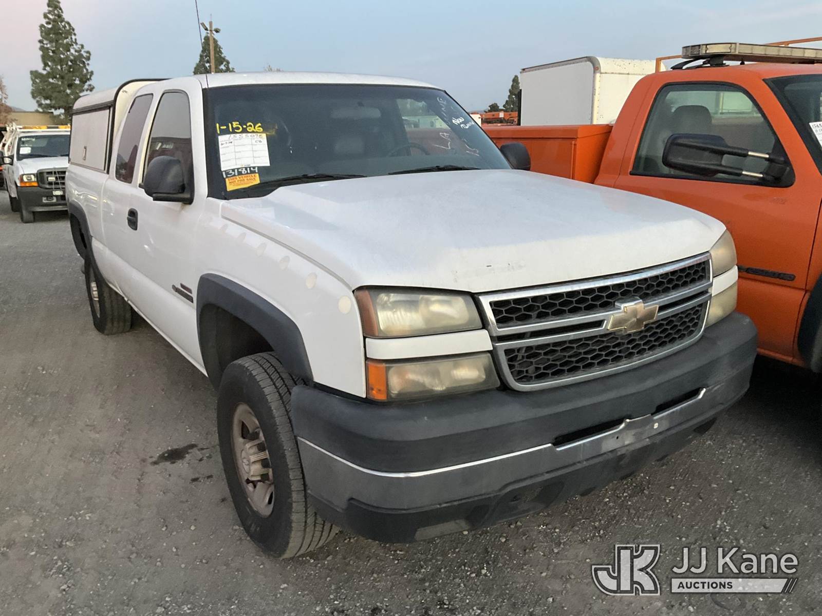 2006 Chevrolet Silverado 2500HD Extended-Cab Pickup Truck, s/n 1GCHK29246E131814, 6.6L Diesel Auto, 4WD, A/C, with tow package & camper shell, (Exempt from Odometer Disclosure - Reads 203,705 miles) (Not Running, Conditions Unknown, Must Be Towed) (Bidding Restricted to Licensed Vehicle Dealers Only), May be subject to ARB Regulations This is a Titled Item NOTE: This unit is being sold AS IS/WHERE IS via Timed Auction and is located in Jurupa Valley, CA. Inspection & preview days for this unit are the 2 business days prior to the first day of items closing for this auction, item is located at 4510 Muth Way Jurupa Valley, CA 92509 and hours of operations are 8a-4p. For pre-sale questions, please contact please contact Office Staff @ (310) 353-7140. Dealer License Number 45696. (Buyer is responsible for removal. Assistance by consignor or JJ Kane Auctions is not assured.)