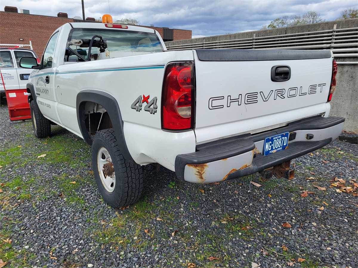 2006 CHEVY 2500 HD PICKUP TRUCK, 132,185 MILES, FOUR WHEEL DRIVE,CURRENT PA STATE INSPECTION EXPIRE JUNE 2026, TIRES LT245/75R16 GOOD CONDITION, INCLUDES 8FOOT PRO PLUS WESTERN PLOW, GOOD CUTTING EDGE, FACTORY RHINO SPRAY BED LINER, FUEL TANK INCLUDED AS SEEN IN PICTURE, OPERTATION MANUAL, TRUCK IS DRIVEABLE, DENT IN PASSENGER DOOR,