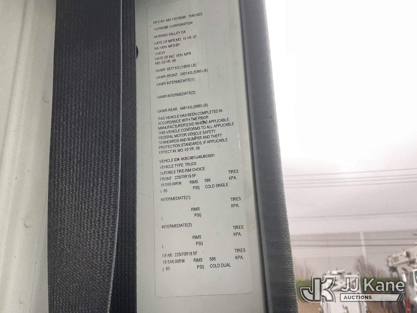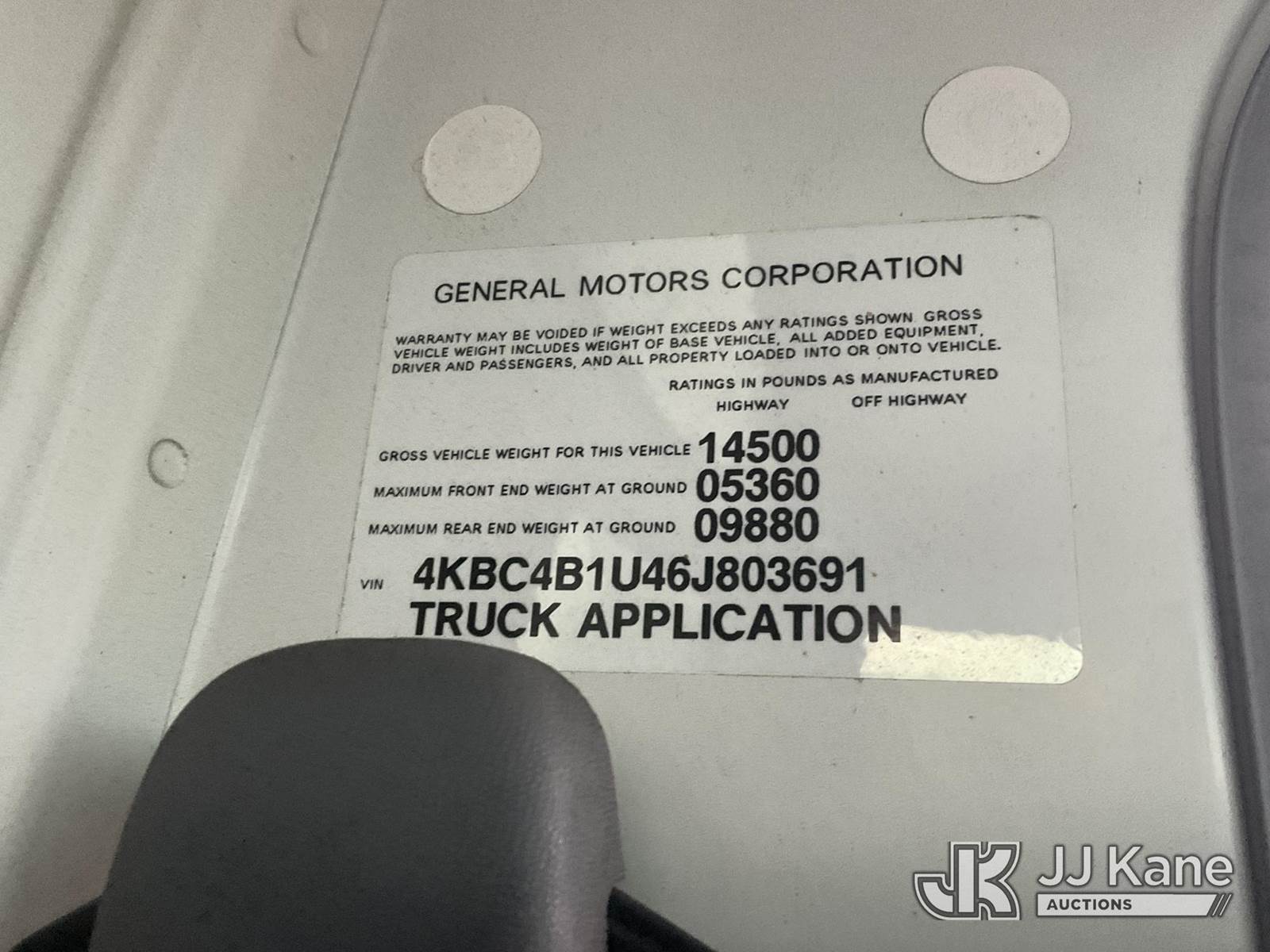 2006 Chevrolet W45042 Tilt Cab Cube Van, s/n 4KBC4B1U46J803691, 6.0L V8 OHV 16V Gas, 4X2, Auto, (Exempt from Odometer Disclosure - Reads 55,300 miles) (Runs & Moves, Lift Gate Operates) This is a Titled Item NOTE: This unit is being sold AS IS/WHERE IS via Timed Auction and is located in Jurupa Valley, CA. Inspection & preview days for this unit are the 2 business days prior to the first day of items closing for this auction, item is located at 4510 Muth Way Jurupa Valley, CA 92509 and hours of operations are 8a-4p. For pre-sale questions, please contact please contact Office Staff @ (310) 353-7140. Dealer License Number 45696. (Buyer is responsible for removal. Assistance by consignor or JJ Kane Auctions is not assured.)