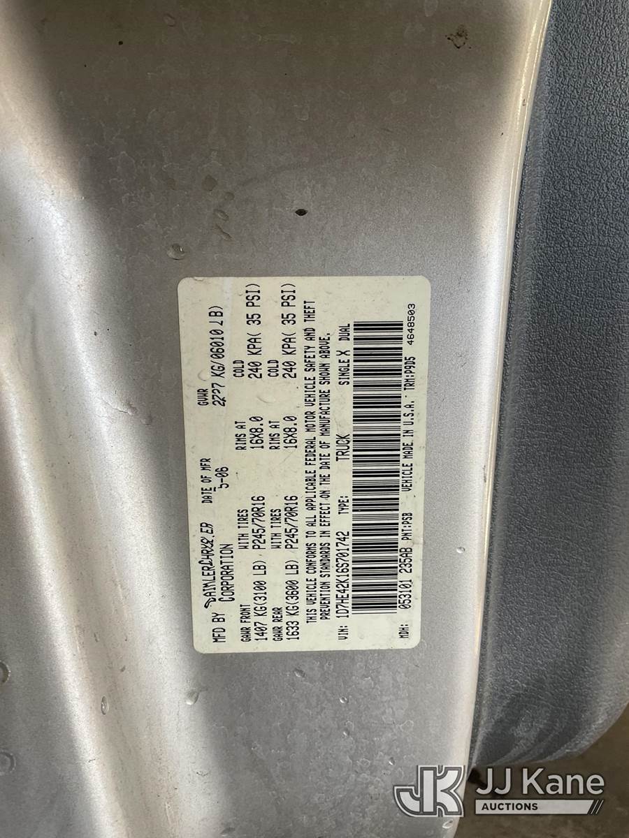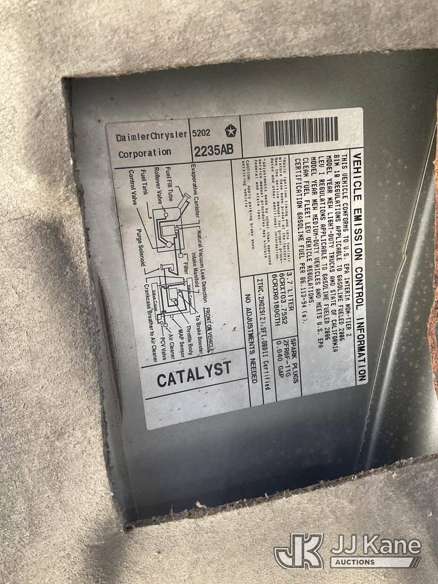 2006 Dodge Dakota Extended-Cab Pickup Truck, 6-cyl gas, Auto, A/C, (Exempt from Odometer Disclosure - Reads 111,614 miles) (Runs & Moves) (Air Bag Light On) (Bidding Restricted to Licensed Vehicle Dealers Only), This is a Titled Item NOTE: This unit is being sold AS IS/WHERE IS via Timed Auction and is located in Jurupa Valley, CA. Inspection & preview days for this unit are the 2 business days prior to the first day of items closing for this auction, item is located at 4510 Muth Way Jurupa Valley, CA 92509 and hours of operations are 8a-4p. For pre-sale questions, please contact please contact Office Staff @ (310) 353-7140. Dealer License Number 45696. (Buyer is responsible for removal. Assistance by consignor or JJ Kane Auctions is not assured.)