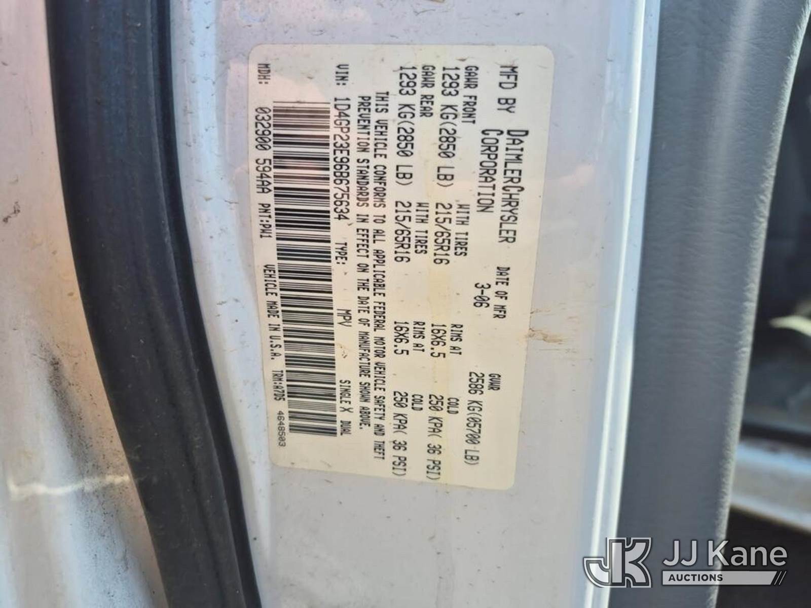2006 Dodge Grand Caravan Mini Cargo Van, 6-cyl gas, Automatic, A/C, (138,266 miles) Miscellaneous items in and back, not included (Runs & Moves) This is a Titled Item NOTE: This unit is being sold AS IS/WHERE IS via Timed Auction and is located in Kahului, HI. PICKUP MUST BE SCHEDULED, PLEASE CONSIDER WHEN BIDDING. Contact John Kaveney @ (949) 212-4177 for more information. (Buyer is responsible for removal. Assistance by consignor or JJ Kane Auctioneers is not assured.)