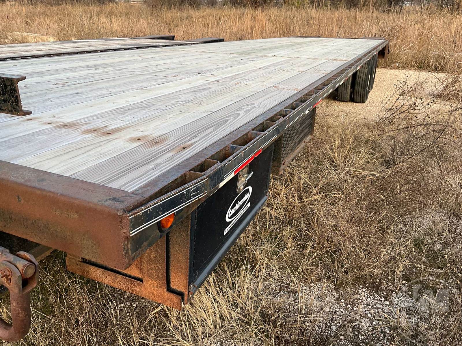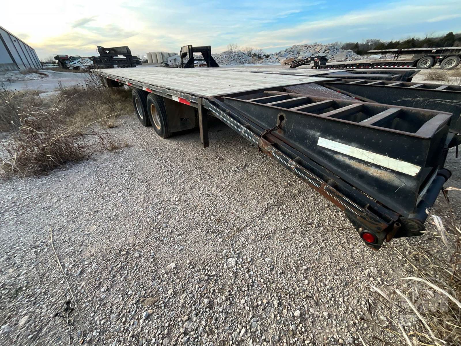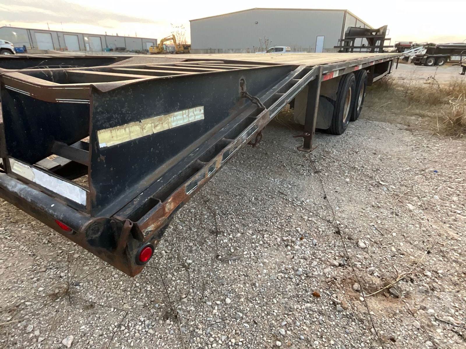 38' FLATBED TRAILER, 8'6" WIDE, 2 AXLE, ELECTRIC BRAKES, SPRING SUSPENSION, WOOD DECKING, DOVETAIL WITH RAMPS, SIDE STORAGE BOXES