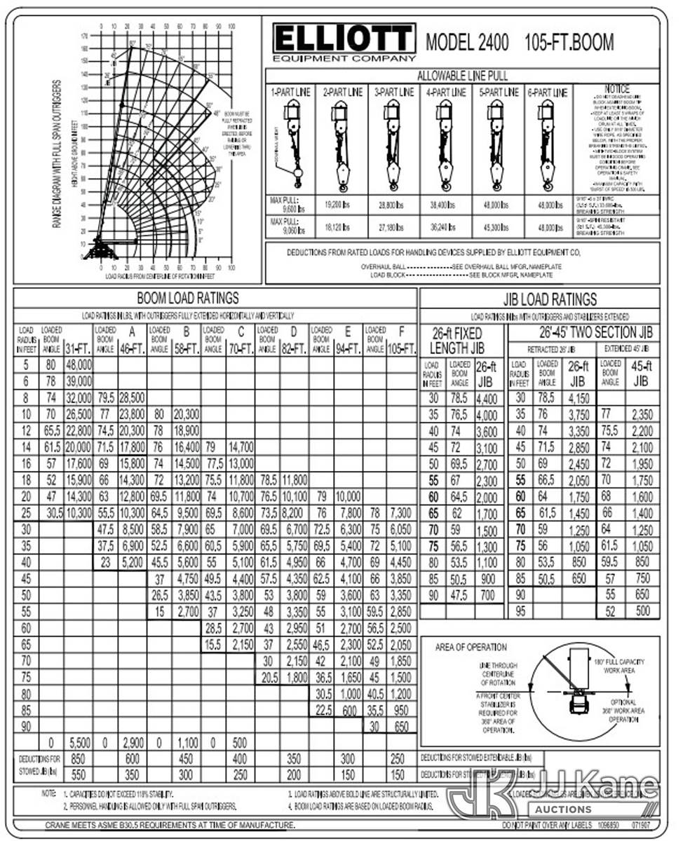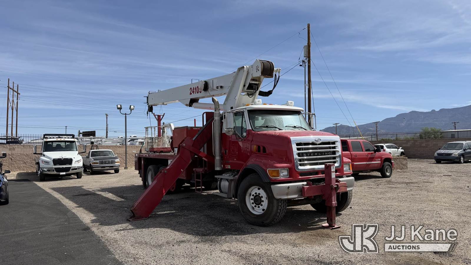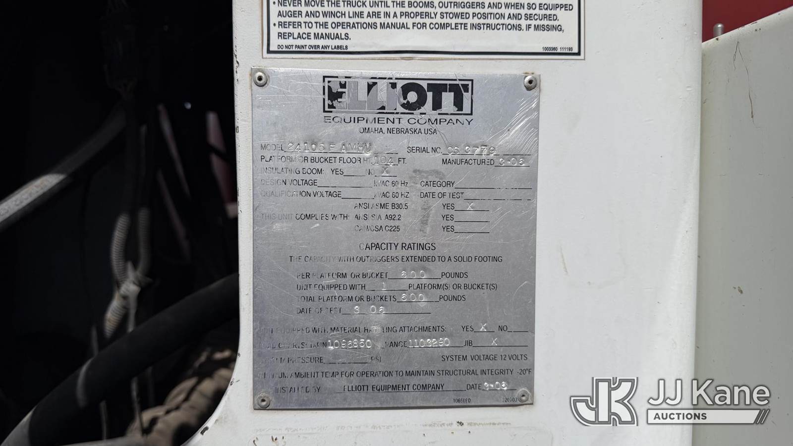 Elliott 24105FAMHU, 24-Ton Hydraulic Truck Crane s/n CS3779, with 114ft sheave height, 4 section hyd boom, 26ft stowable swing-away jib, headache ball, heel winch, LMI with display and hydraulic function lockout for load capacities, control console is equipped with anti-two-block system, 5 hydralic outriggers, mounted behind cab on 2006 Sterling LT7500 T/A Flatbed/Utility Truck, 7.2L 6X4, DIESEL, 8-spd w/ Lo-Lo, A/C, (Exempt from Odometer Disclosure - Reads 70,499 miles) ((Runs, Moves & Upper Operates) (Hard To Get Into Gear)) (Reads 11,607 hours) This is a Titled Item NOTE: This unit is being sold AS IS/WHERE IS via Timed Auction and is located in Albuquerque, NM. Inspection & preview days for this unit are by appointment only; please contact us at contact@jjkane.com or 84-Go-JJKane for more details. (Missing manuals, See Auction Company for Manufacturers Information to obtain manuals) (Buyer is responsible for removal. Assistance by consignor or JJ Kane Auctions is not assured.)