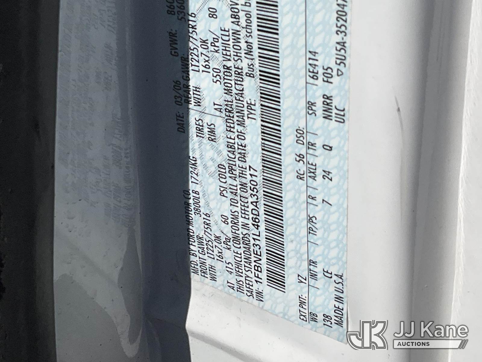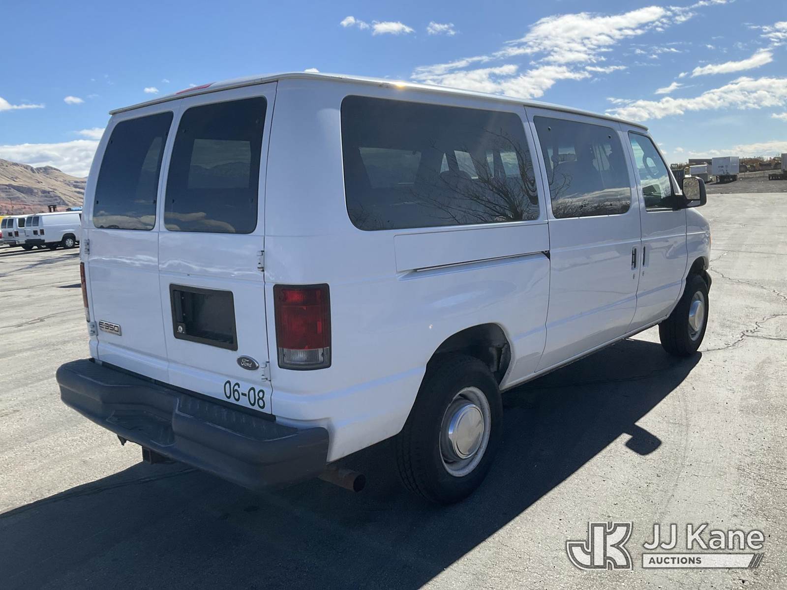 2006 Ford E350 Passenger Van, 8-cyl gas, Auto, A/C, (Exempt from Odometer Disclosure - Reads 89,741 miles) (Runs & Moves) This is a Titled Item NOTE: This unit is being sold AS IS/WHERE IS via Timed Auction and is located in Salt Lake City, UT. Inspection & preview days for this unit are the 2 business days prior to the first day of items closing for this auction, item is located at 2353 N Redwood Rd Salt Lake City, UT 84116 and hours of operations are 8a-4p. Titles executed exactly as bidder registered. Ensure your name and/or business name and address in JJ Kane and/or ProxiBid is correct before bidding. For pre-sale questions, please contact Office Staff @ (801) 519-0123. (Buyer is responsible for removal. Assistance by consignor or JJ Kane Auctions is not assured.)