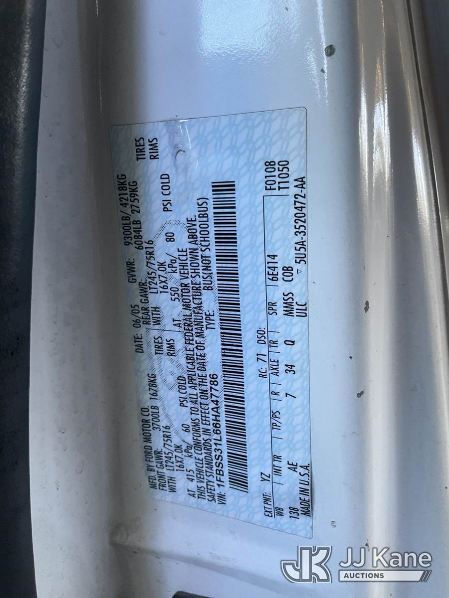 2006 Ford Econoline E-350 Cargo Van, 8-cyl gas, Auto, A/C, with Tow package, (Exempt from Odometer Disclosure - Reads 068,184 miles) (Runs & Moves) This is a Titled Item NOTE: This unit is being sold AS IS/WHERE IS via Timed Auction and is located in Jurupa Valley, CA. Inspection & preview days for this unit are the 2 business days prior to the first day of items closing for this auction, item is located at 4510 Muth Way Jurupa Valley, CA 92509 and hours of operations are 8a-4p. For pre-sale questions, please contact please contact Office Staff @ (310) 353-7140. Dealer License Number 45696. (Buyer is responsible for removal. Assistance by consignor or JJ Kane Auctions is not assured.)