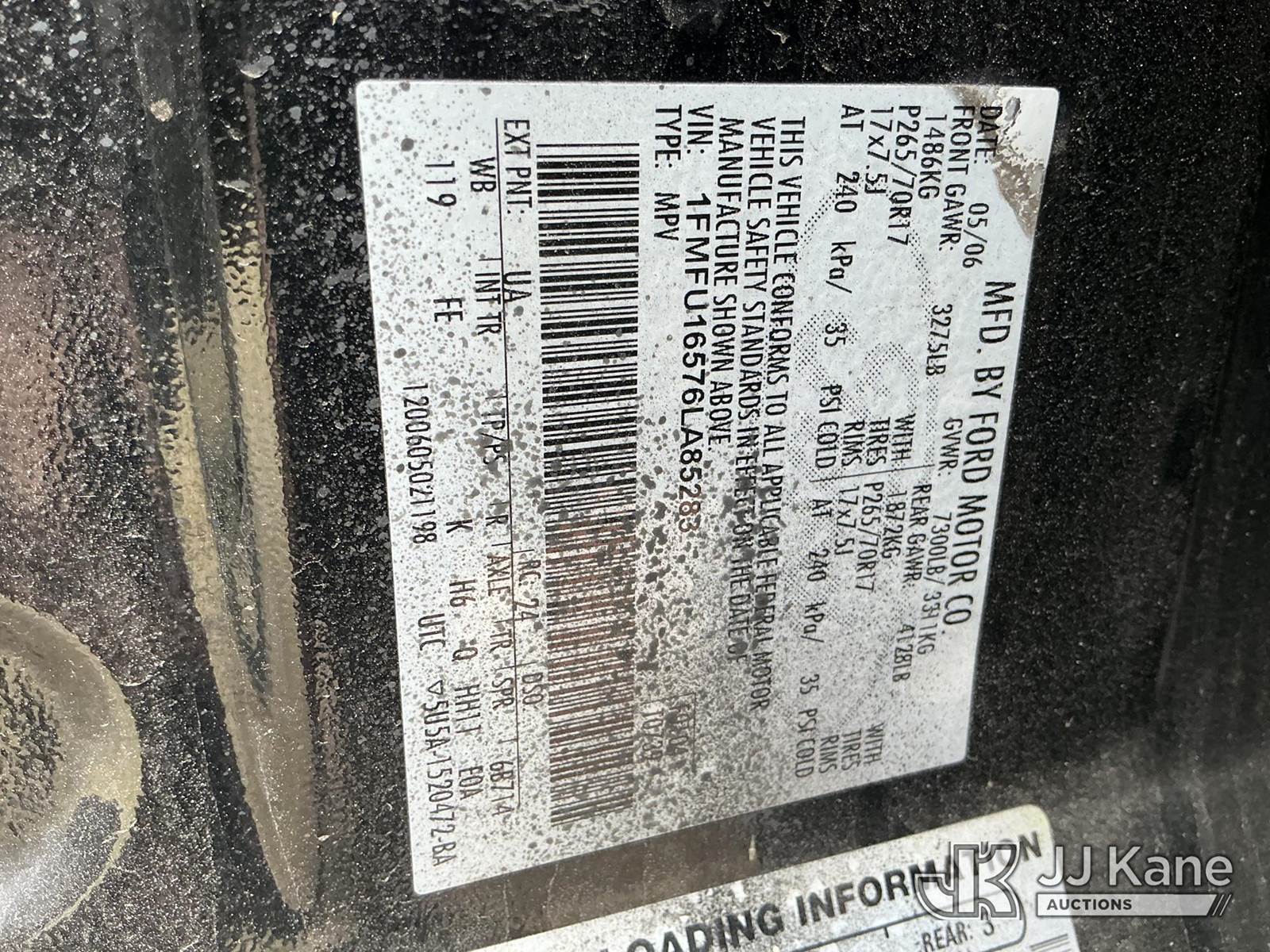 2006 Ford Expedition 4x4 4-Door Sport Utility Vehicle, 5.4L V8 SOHC 16V gas, 4-Speed Automatic, A/C, (Exempt from Odometer Disclosure - Reads 109,518 miles) Manatee County Sheriff's Office Unit (Runs & Moves) (Jump To Start, Noisy Engine, Paint Damage) This is a Titled Item NOTE: This unit is being sold AS IS/WHERE IS via Timed Auction and is located in Thonotosassa, FL. Inspection & preview days for this unit are the 2 business days prior to the first day of items closing for this auction, item is located at 11720 N US 301 Thonotosassa, Fl 33592 and hours of operations are 8a-4p. For pre-sale questions, please contact Office Staff @ (813) 986-2485. (Buyer is responsible for removal. Assistance by consignor or JJ Kane Auctions is not assured.)