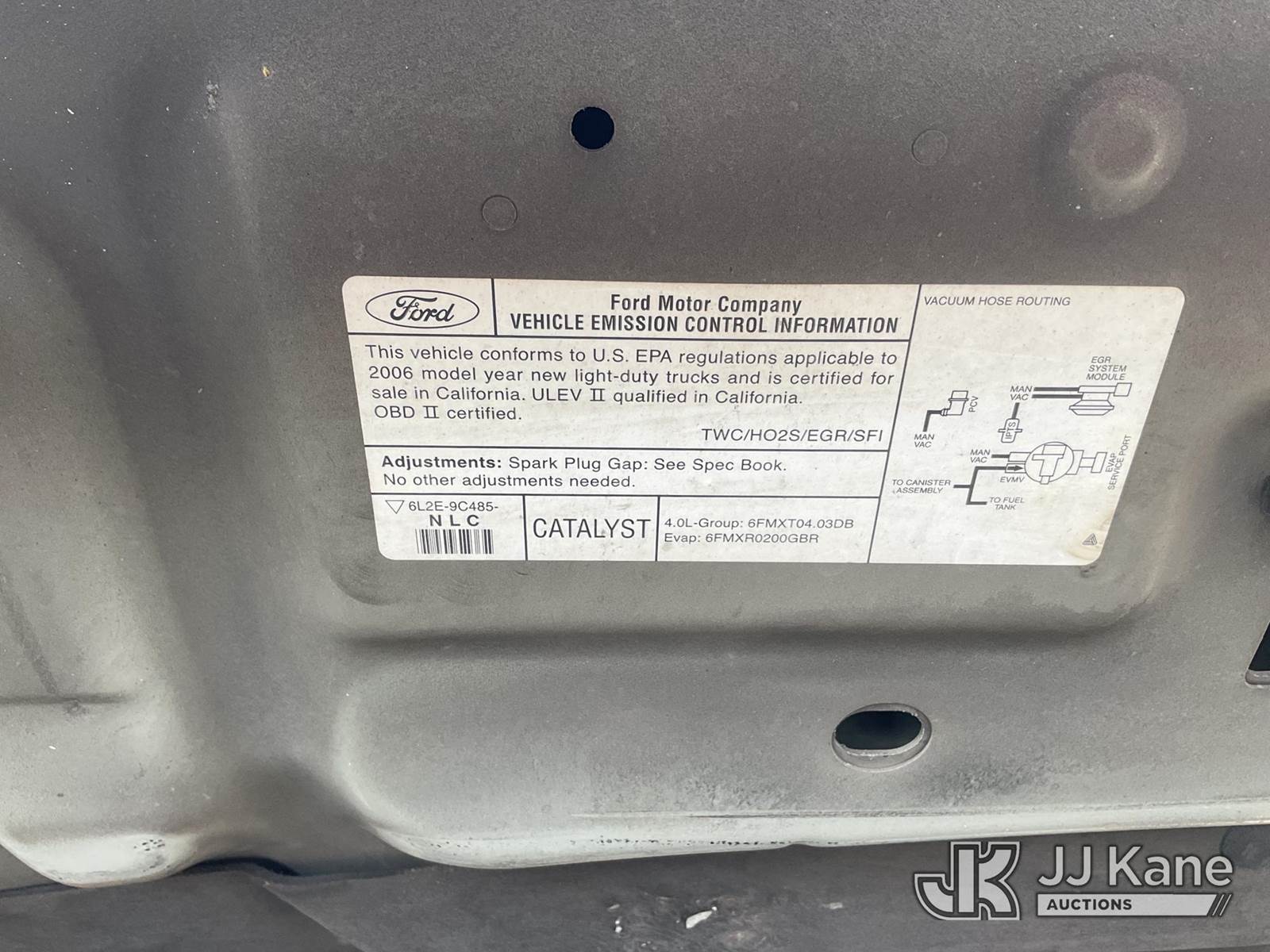 2006 Ford Explorer 4-Door Sport Utility Vehicle, 4.0L V6 SOHC 16V Gas Auto, RWD, A/C, with Tow Package , (Exempt from Odometer Disclosure - Reads 48,488 miles) (Runs & Moves) This is a Titled Item NOTE: This unit is being sold AS IS/WHERE IS via Timed Auction and is located in Jurupa Valley, CA. Inspection & preview days for this unit are the 2 business days prior to the first day of items closing for this auction, item is located at 4510 Muth Way Jurupa Valley, CA 92509 and hours of operations are 8a-4p. For pre-sale questions, please contact please contact Office Staff @ (310) 353-7140. Dealer License Number 45696. (Buyer is responsible for removal. Assistance by consignor or JJ Kane Auctions is not assured.)