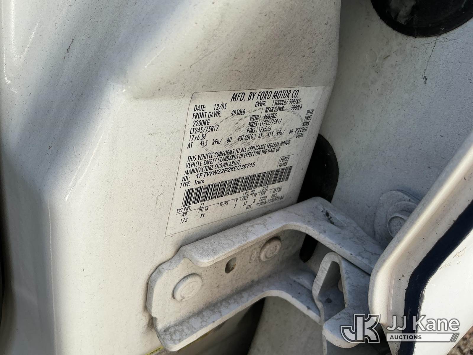2006 Ford F-350 SD Crew-Cab Dual Wheel Pickup Truck, 6.0L diesel, Auto, RWD, A/C, True Mileage Unknown (Not Running, Condition Unknown, No Keys) This is a Titled Item NOTE: This unit is being sold AS IS/WHERE IS via Timed Auction and is located in New Orleans, LA. For more information & removal arrangements please contact Jordan Bane @ (769) 231-2679. License # LA AB-154 (Buyer is responsible for removal. Assistance by consignor or JJ Kane Auctions is not assured.)