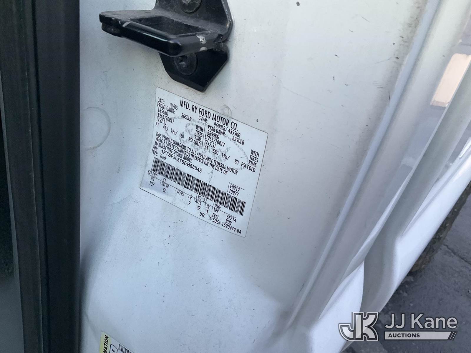 2006 Ford F-350 SD Pickup Truck, s/n 1FTSF30576EB58643, 8-cyl gas, Auto, RWD, A/C, (Exempt from Odometer Disclosure - Reads 75,922 miles) (Runs & Moves ) This is a Titled Item NOTE: This unit is being sold AS IS/WHERE IS via Timed Auction and is located in Jurupa Valley, CA. Inspection & preview days for this unit are the 2 business days prior to the first day of items closing for this auction, item is located at 4510 Muth Way Jurupa Valley, CA 92509 and hours of operations are 8a-4p. For pre-sale questions, please contact please contact Office Staff @ (310) 353-7140. Dealer License Number 45696. (Buyer is responsible for removal. Assistance by consignor or JJ Kane Auctions is not assured.)