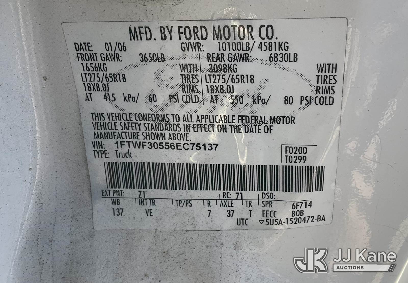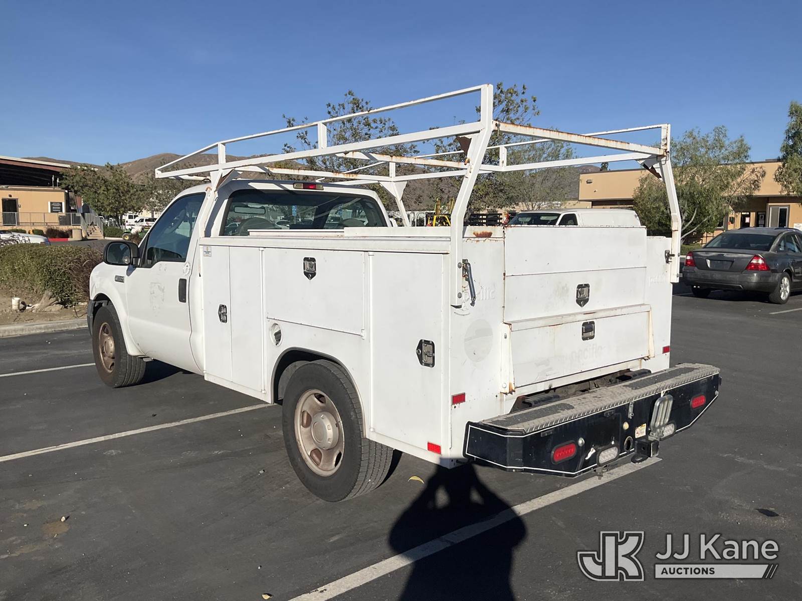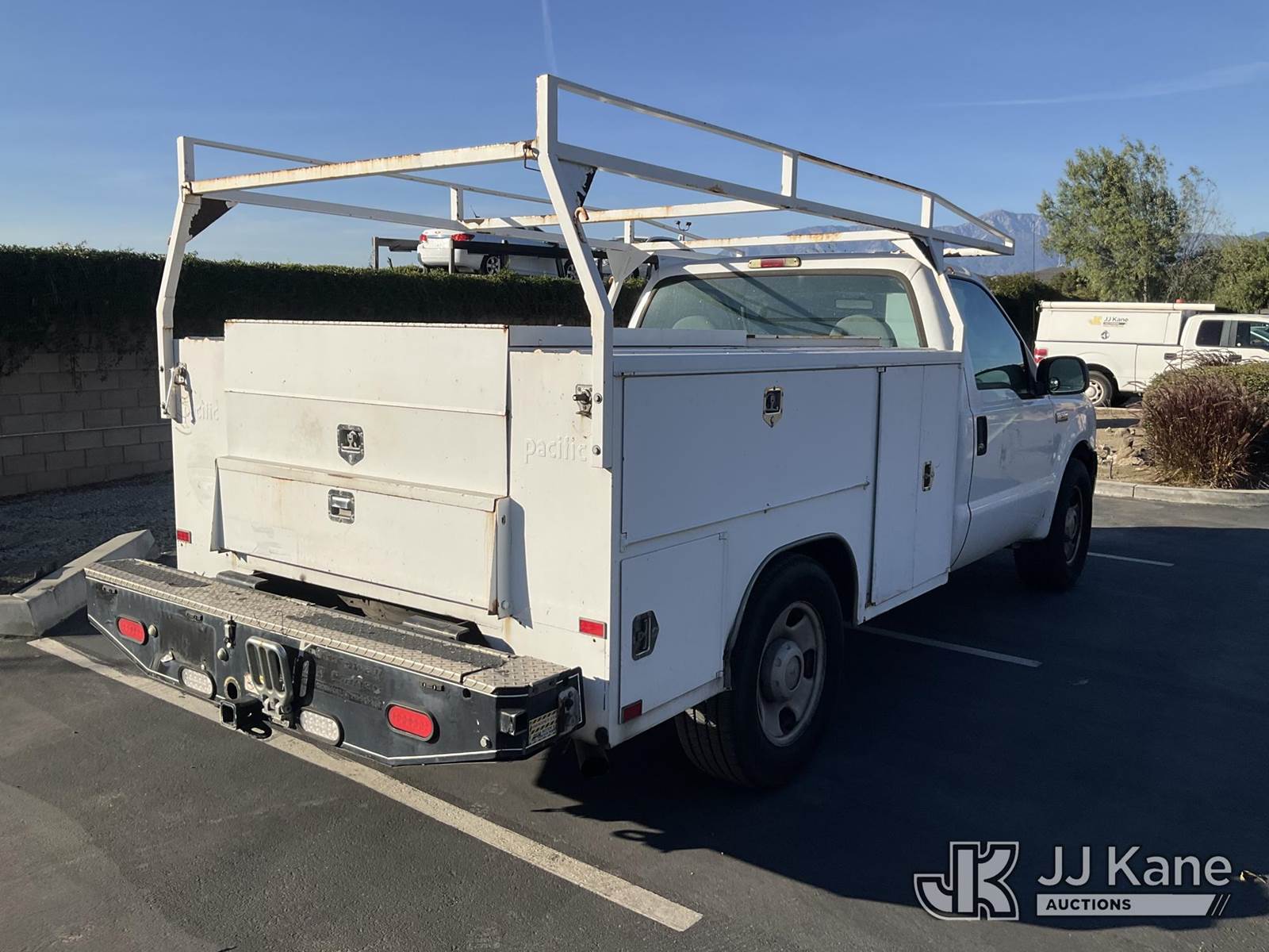 2006 Ford F-350 SD Service Truck, 5.4L V8 SOHC 24V Gas 5-Speed Automatic, RWD, with tow package, utility bed, ladder rack, (130,090 miles) (Runs & Moves) This is a Titled Item NOTE: This unit is being sold AS IS/WHERE IS via Timed Auction and is located in Jurupa Valley, CA. Inspection & preview days for this unit are the 2 business days prior to the first day of items closing for this auction, item is located at 4510 Muth Way Jurupa Valley, CA 92509 and hours of operations are 8a-4p. For pre-sale questions, please contact please contact Office Staff @ (310) 353-7140. Dealer License Number 45696. (Buyer is responsible for removal. Assistance by consignor or JJ Kane Auctioneers is not assured.)