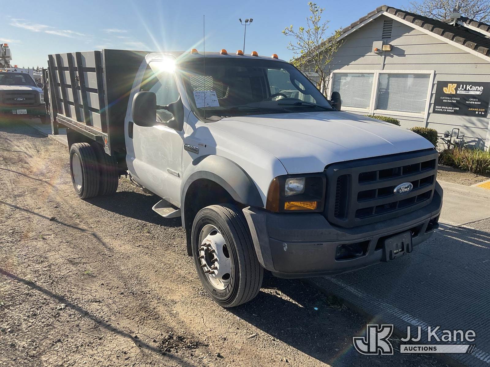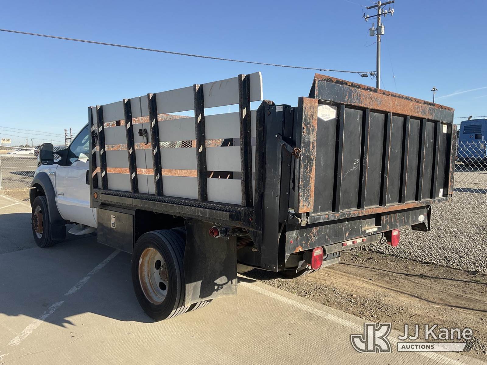 2006 Ford F-450 SD Regular Cab DRW 2WD Flatbed Truck, 6.0L V8 OHV 32V RWD, DIESEL, Auto, A/C, with 10Ft Stakebed, Lift Gate, (Exempt from Odometer Disclosure - Reads 46,878 miles) (Runs & Moves, Lift Gate Operates) Subject to CARB Regs,CARB non Compliant,Cannot Operate on CA Roads/Highways until Compliant This is a Titled Item NOTE: This unit is being sold AS IS/WHERE IS via Timed Auction and is located in Dixon, CA. Inspection & preview days for this unit are the 2 business days prior to the first day of items closing for this auction, item is located at 8668 Sparling Ln Dixon, CA 95620 and hours of operations are 8a-4p. For pre-sale questions, please contact JJ Kane Staff at (707) 678-8060 (dixon@jjkane.com). Dealer License Number 45696. (Buyer is responsible for removal. Assistance by consignor or JJ Kane Auctions is not assured.)