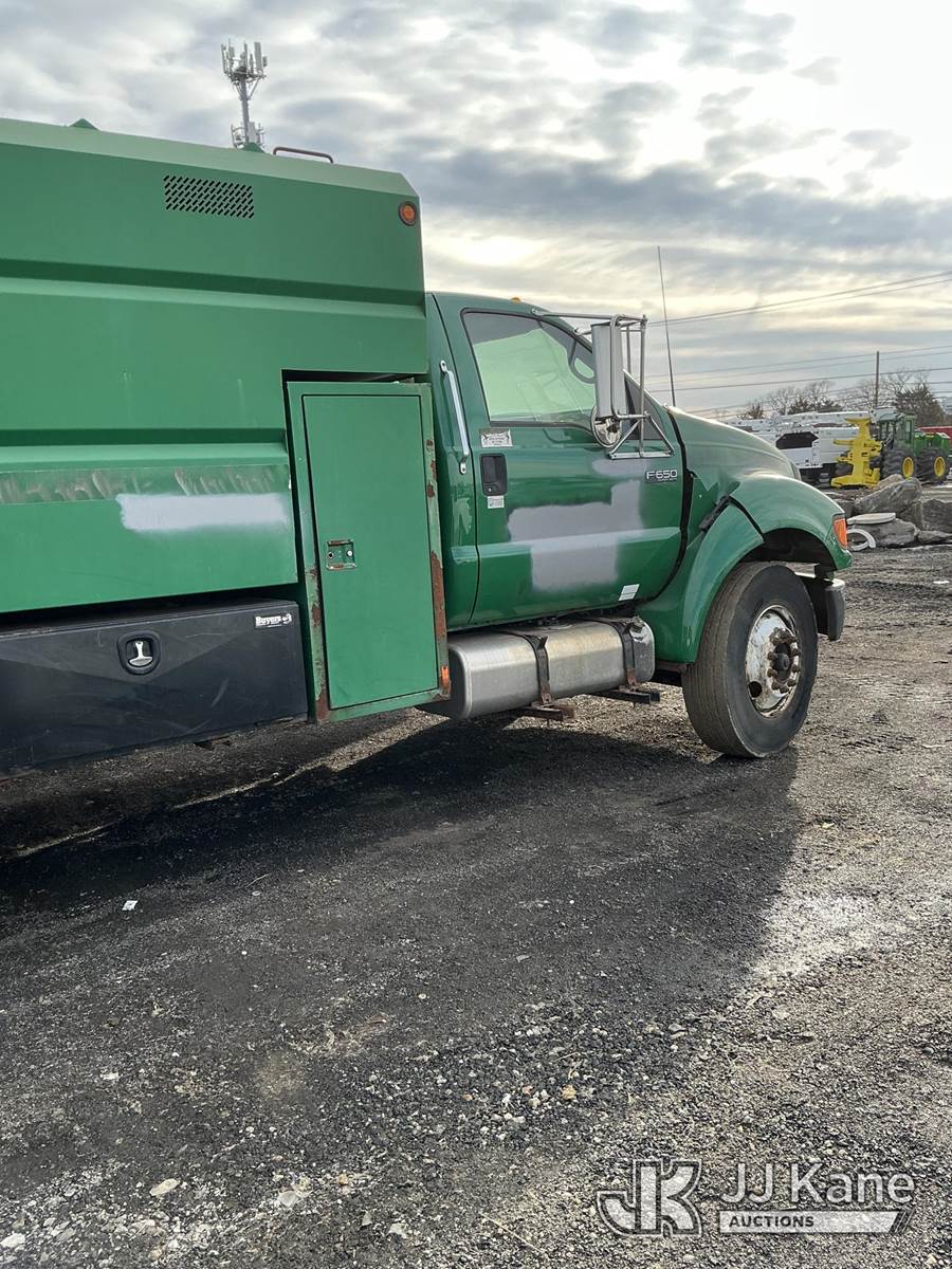 2006 Ford F-650 Chipper Dump Truck, Cat C7 diesel, 4X2, 6-spd, with liftgate, (Exempt from Odometer Disclosure - Reads 105,275 miles) (Not Running, Condition Unknown) This is a Titled Item NOTE: This unit is being sold AS IS/WHERE IS via Timed Auction and is located in Pennsville, NJ. For pre-sale questions and pickups, please contact Pete Rhodes at peter.rhodes@jjkane.com. Pickups can be conducted Monday through Friday 9:30am to 3:00pm. (Buyer is responsible for removal. Assistance by consignor or JJ Kane Auctions is not assured.)