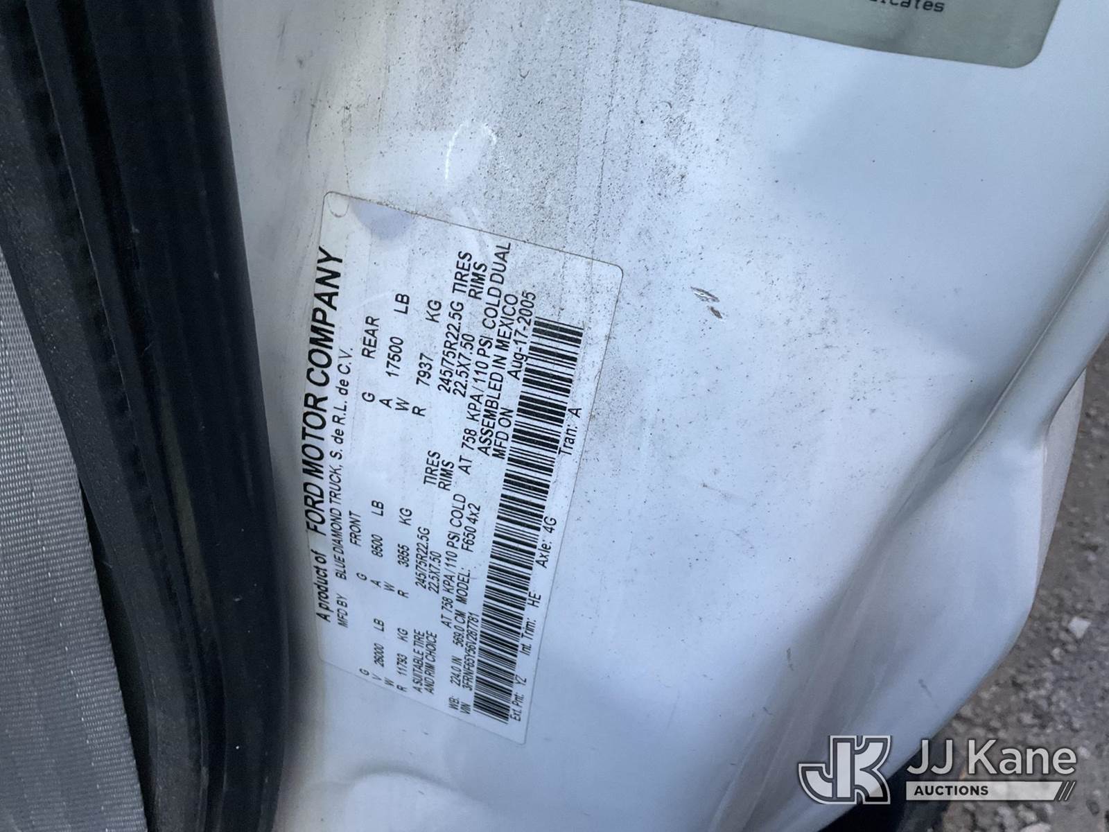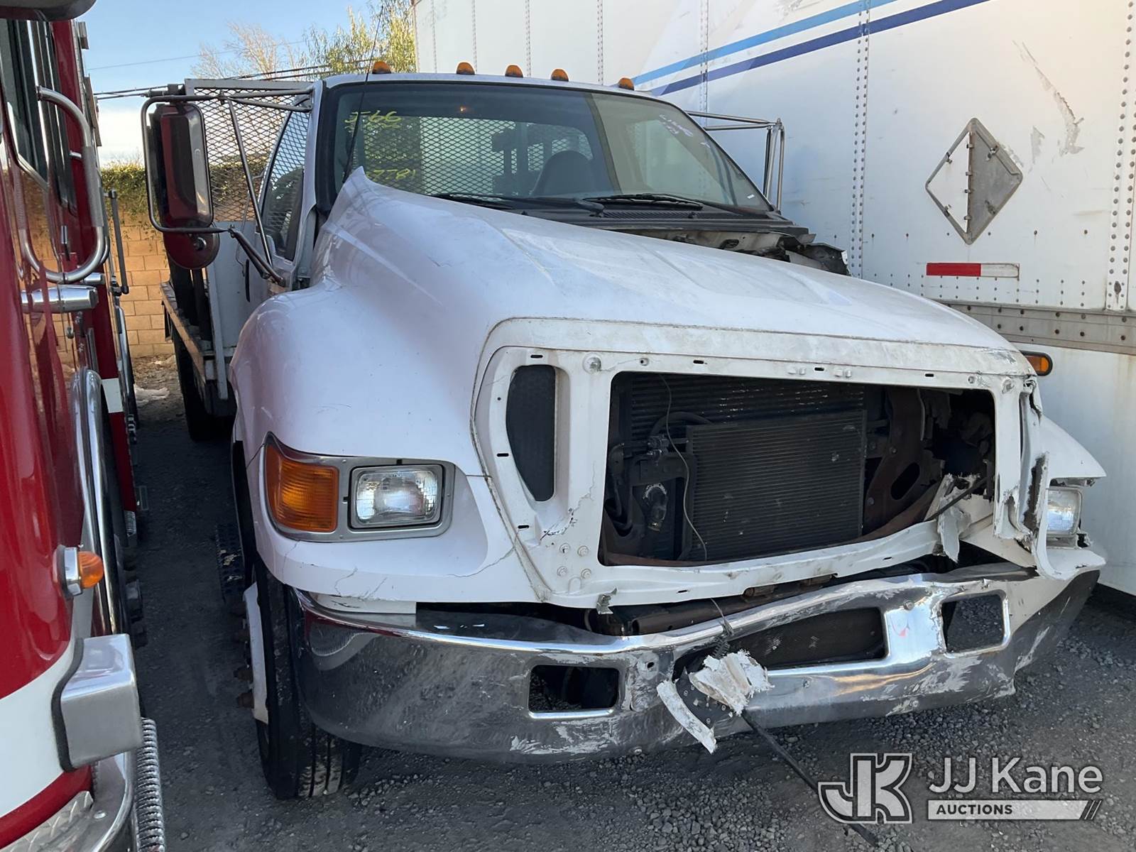 2006 Ford F-650 Regular Cab 2WD DRW Stake Truck, s/n 3FRNF65Y56V287781, 6.0L V8 DIESEL Auto, with Lift Gate , (Exempt from Odometer Disclosure - Reads 54,565 miles) (Not Running, Condition Unknown) (Drive Shaft Disconnected, Major Crash Damage , Lift Gate Damaged) (Bidding Restricted to Licensed Vehicle Dealers and Out of State Buyers Only), This is a Titled Item NOTE: This unit is being sold AS IS/WHERE IS via Timed Auction and is located in Jurupa Valley, CA. Inspection & preview days for this unit are the 2 business days prior to the first day of items closing for this auction, item is located at 4510 Muth Way Jurupa Valley, CA 92509 and hours of operations are 8a-4p. For pre-sale questions, please contact please contact Office Staff @ (310) 353-7140. Dealer License Number 45696. (Buyer is responsible for removal. Assistance by consignor or JJ Kane Auctions is not assured.)