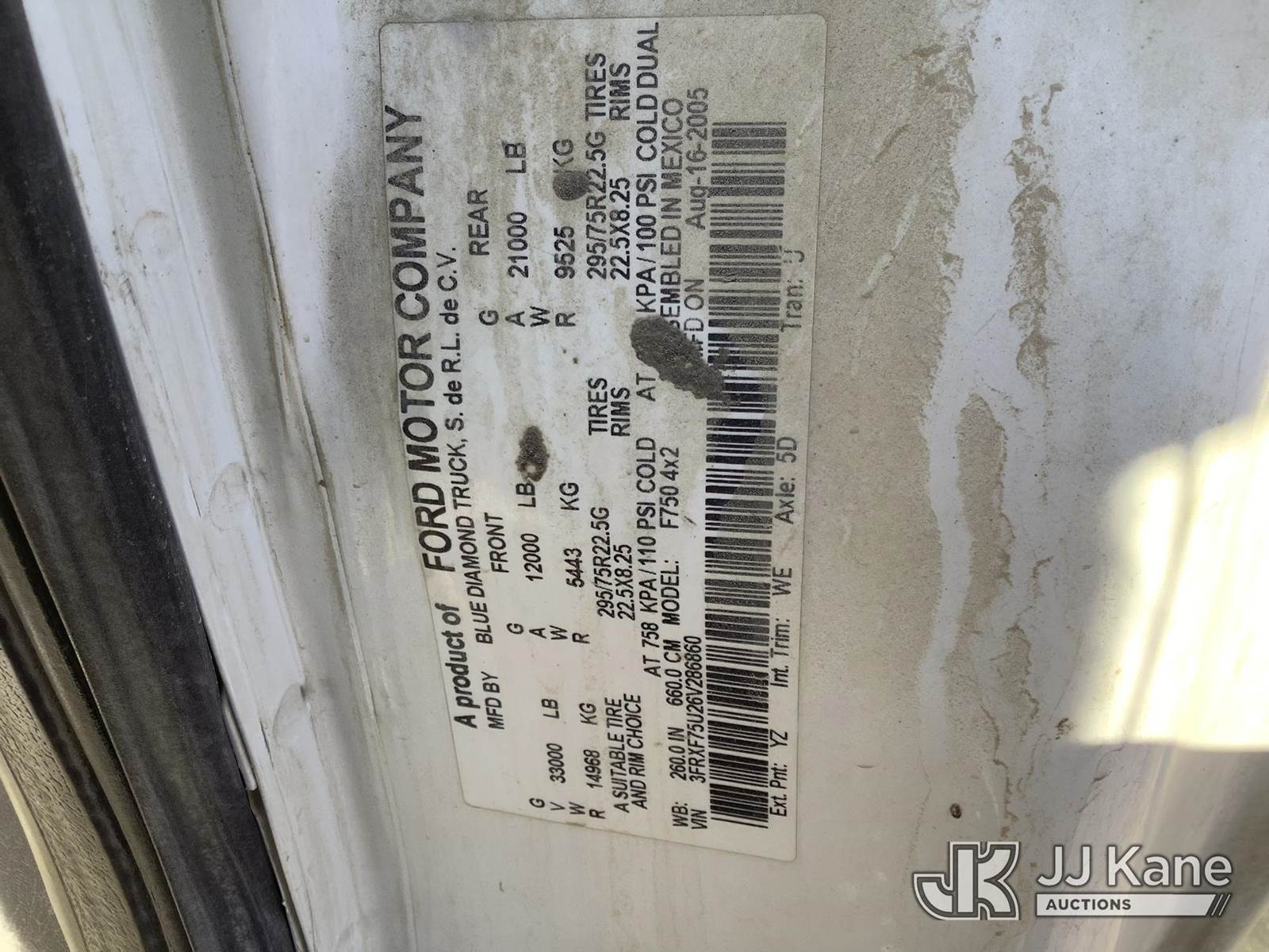 2006 Ford F-750 Mechanics Service Truck, 7.2L L6 DIESEL 4X2, Auto, A/C, with Maintainer 10000 Series Service Crane, (Exempt from Odometer Disclosure - Reads 275,442 miles) (Runs & Moves) (Jump To Start, Crane Conditions Unknown) This is a Titled Item NOTE: This unit is being sold AS IS/WHERE IS via Timed Auction and is located in Phoenix, AZ. Inspection & preview days for this unit are the 2 business days prior to the first day of items closing for this auction, item is located at 2505 W Durango St Phoenix, AZ 85009 and hours of operations are 8a-4p. For pre-sale questions, please contact Andrew Espinoza @ (602) 393-8107. (Buyer is responsible for removal. Assistance by consignor or JJ Kane Auctions is not assured.)