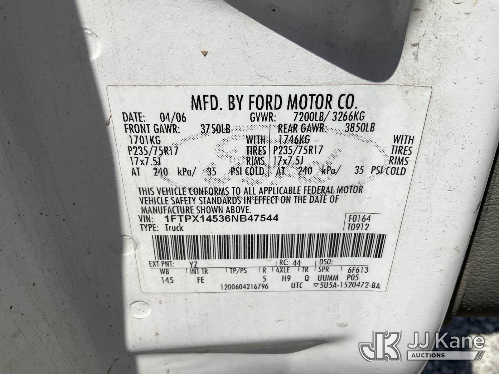 2006 Ford F150 4x4 Extended-Cab Pickup Truck, 8-cyl gas, Auto, A/C, (Exempt from Odometer Disclosure - Reads 74,456 miles) (Runs) (Does Not Move, Bad Transmission, Flat Tire, Rust/Body Damage) This is a Titled Item NOTE: This unit is being sold AS IS/WHERE IS via Timed Auction and is located in Verona, KY. Inspection & preview days for this unit are the 2 business days prior to the first day of items closing for this auction, item is located at 2841 Verona-Mudlick Rd Ste B Verona, KY 41092 and hours of operations are 8a-4p. For pre-sale questions, please contact Office Staff @ (502) 612-5080. Auctioneer Michael Whitebread / License # 256617. (Buyer is responsible for removal. Assistance by consignor or JJ Kane Auctions is not assured.)