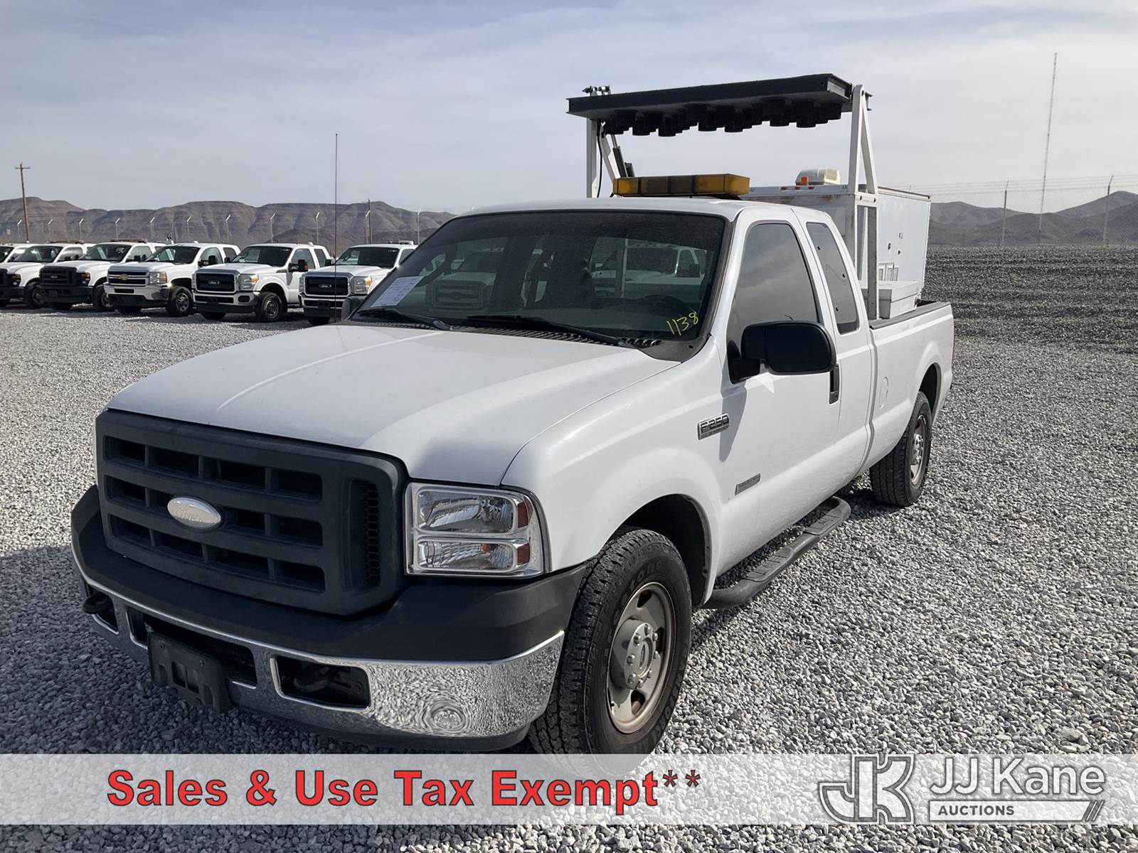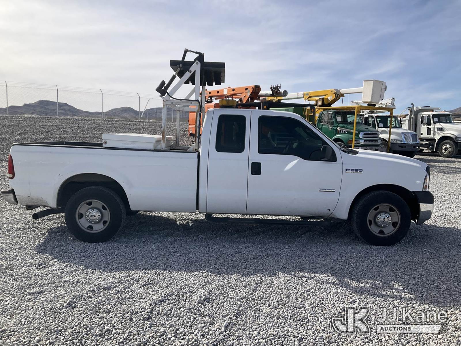 2006 Ford F250 Extended-Cab Pickup Truck, 6.0L V8 OHV 32V TURBO DIESEL, RWD, Auto, A/C, with Light Tower, (Exempt from Odometer Disclosure - Reads 109,971 miles) (Runs & Moves) (Check Engine Light On, Body Damage, Tower Not Operating, No Power) This is a Titled Item NOTE: This unit is being sold AS IS/WHERE IS via Timed Auction and is located in Las Vegas, NV. Inspection & preview days for this unit are the 2 business days prior to the first day of items closing for this auction, item is located at 14655 Grand Valley Pkwy Las Vegas, NV 89165 and hours of operations are 8a-4p. Titles executed exactly as bidder registered. Ensure your name and/or business name and address in JJ Kane and/or ProxiBid is correct before bidding. For pre-sale questions, please contact Office Staff @ (801) 519-0123 and provide sale date and lot number. Las Vegas Dealer License Number DLR000053086 / OHV000053094. (Buyer is responsible for removal. Assistance by consignor or JJ Kane Auctions is not assured.)