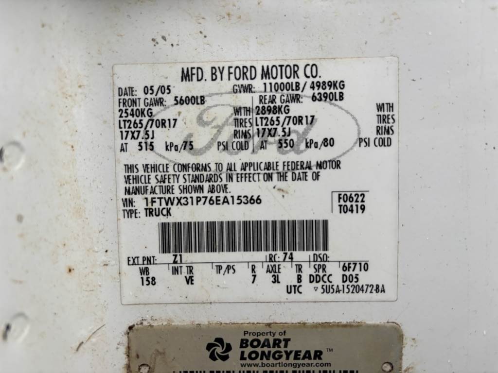 Location: Forks WA ***End-User Consignment*** VIN: 1FTWX31P76EA15366 Engine: 6L 8cyl Diesel Transmission: Automatic *Body damage*, hitch receiver w/ball hitch, transfer tank w/Fill-Rite pump, ProTech truck tool box, A/C, CB radio, spring suspension, LT275/70R18 tires. *This item is located in Forks, Washington and can be viewed by appointment only. To schedule a preview or to ask questions about this item call 888-230-8840 *