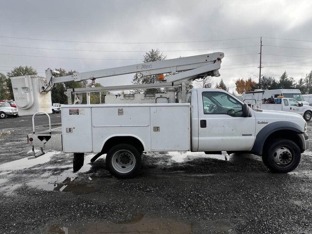 Location: Washougal WA ***End-User Consignment*** VIN: 1FDXF46P46ED40655 Engine: Powerstroke 6.0L V8 Diesel Transmission: Automatic Altec articulating boom lift, utility body w/6 compartments, ball hitch, 4,739 engine hours, A/C, AM/FM, spring suspension, 255/70R19.5 tires. Miles: 236,134