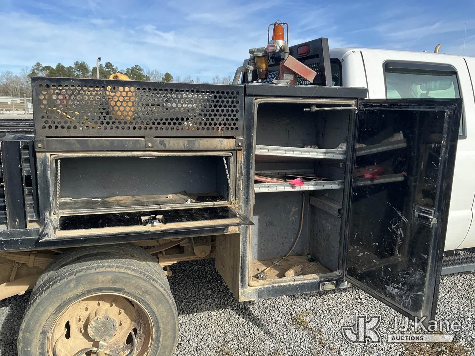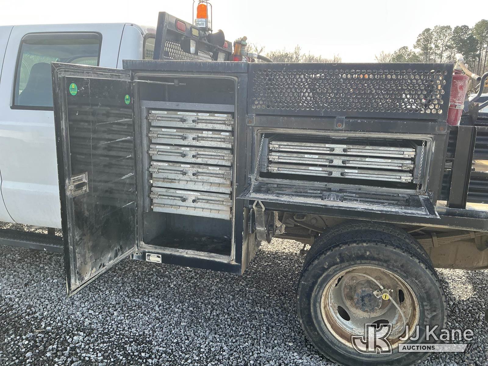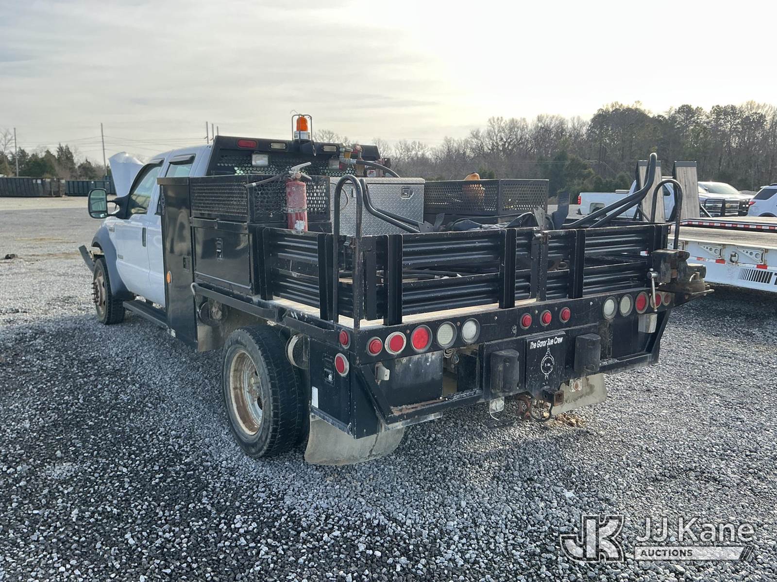 2006 Ford F550 4x4 Crew-Cab Flatbed/Service Truck, 6.0L V8 OHV 32V turbo diesel, Auto, with aux fuel tank, tool box, True Mileage Unknown (Not Running, Condition Unknown, Wrecked) This is a Titled Item NOTE: This unit is being sold AS IS/WHERE IS via Timed Auction and is located in Moncks Corner, SC. For more information & removal arrangements please contact Pete Klimek @ 843-323-6538. (Buyer is responsible for removal. Assistance by consignor or JJ Kane Auctions is not assured.)