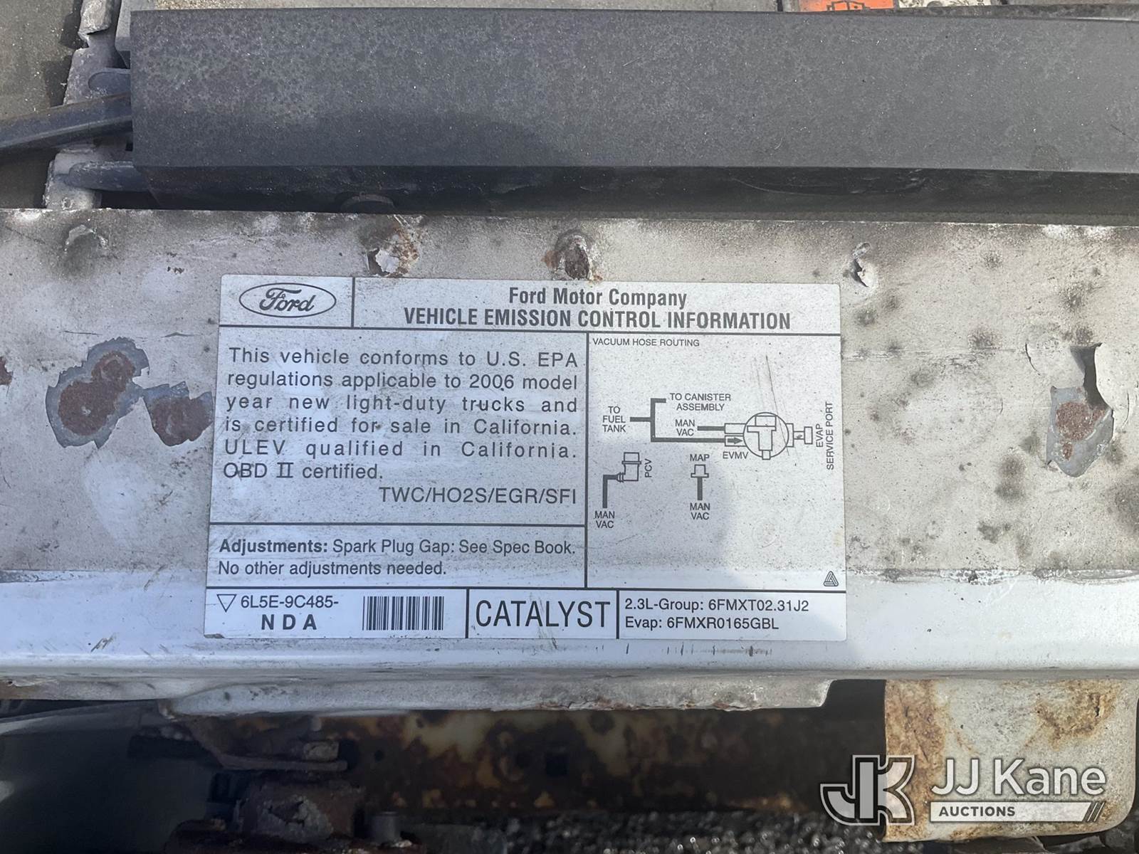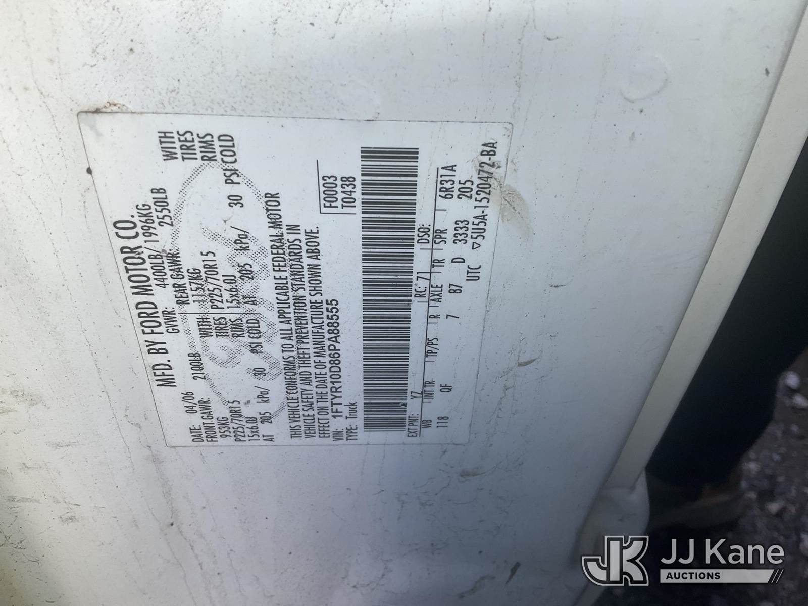 2006 Ford Ranger Pickup Truck, s/n 1FTYR10D86PA88555, 4-cyl gas, Auto, A/C, with Tow Package, True Mileage Unknown (Not Running, Condition Unknown) (No Key, Rust Damage, Interior Damage, Passenger Door Will Not Open, Tire Damage, Must Be Towed) (Bidding Restricted to Licensed Vehicle Dealers Only), This is a Titled Item NOTE: This unit is being sold AS IS/WHERE IS via Timed Auction and is located in Jurupa Valley, CA. Inspection & preview days for this unit are the 2 business days prior to the first day of items closing for this auction, item is located at 4510 Muth Way Jurupa Valley, CA 92509 and hours of operations are 8a-4p. For pre-sale questions, please contact please contact Office Staff @ (310) 353-7140. Dealer License Number 45696. (Buyer is responsible for removal. Assistance by consignor or JJ Kane Auctions is not assured.)