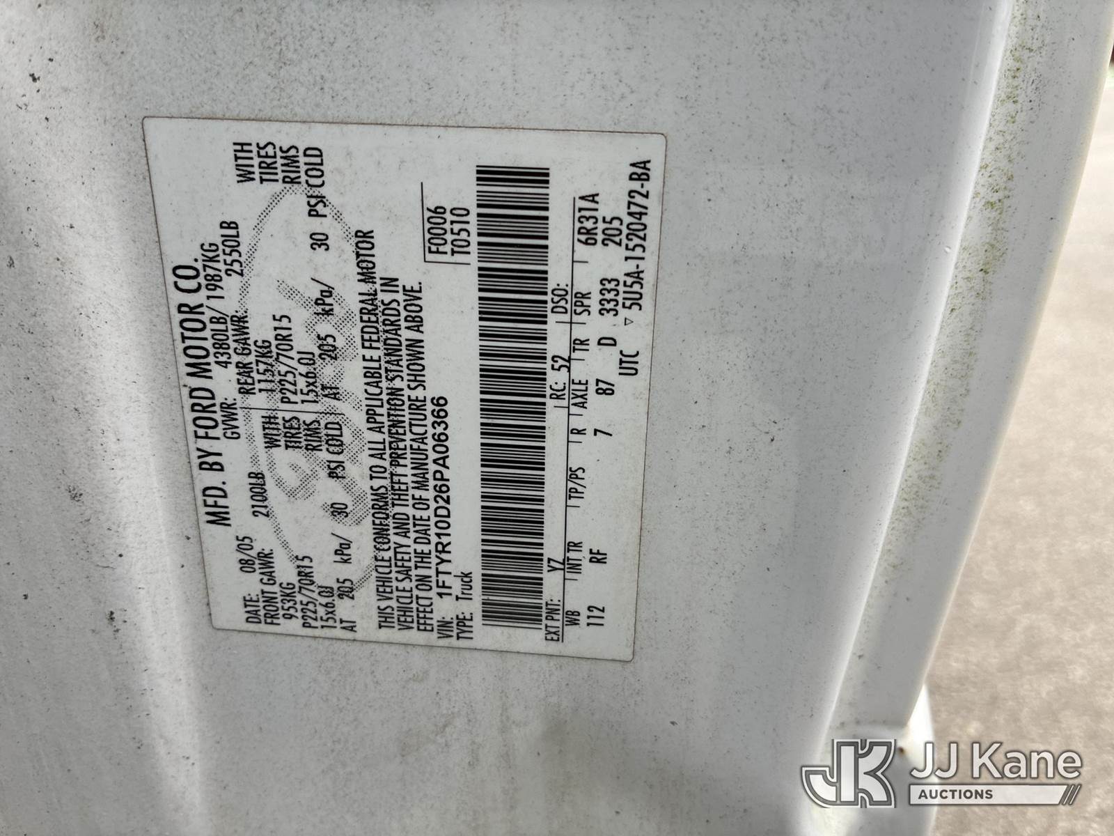 2006 Ford Ranger Pickup Truck, 4-cyl gas, Auto, A/C, with camper shell, (Exempt from Odometer Disclosure - Reads 91,132 miles) (Runs & Moves) (Interior Damage, Rust & Paint Damage) This is a Titled Item NOTE: This unit is being sold AS IS/WHERE IS via Timed Auction and is located in Ashland, OH. Inspection & preview days for this unit are the 2 business days prior to the first day of items closing for this auction, item is located at 1463 Simonton Rd, Unit A, Ashland OH 44805 and hours of operations are 8a-4p. For pre-sale questions, please contact Jimmy Sanders @ (567) 474-5162 or jimmy.sanders@jjkane.com. (Buyer is responsible for removal. Assistance by consignor or JJ Kane Auctions is not assured.)