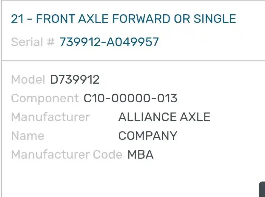 (Used) 2006 Freightliner Columbia 113, FRONT SPINDLE/KNUCKLE- Part Number: C10-00000-013, Serial Number: 739912-A049957, Side: Driver Left Side, Make: Axle Alliance, Model: AF-12 0-3, Capacity: 12,000 Lbs, Hub Bolts: 10, Brake Type: Drum, Reference images for condition, For more information about this item, give us a call. We ship Worldwide! (CRG HEAVY TRUCK PARTS) 929 W PULASKI HWY ELKTON, MD 21921, Capacity: 12,000 Lbs, Serial#: 739912-A049957, Hub Bolts: 10, Brake Type: Drum