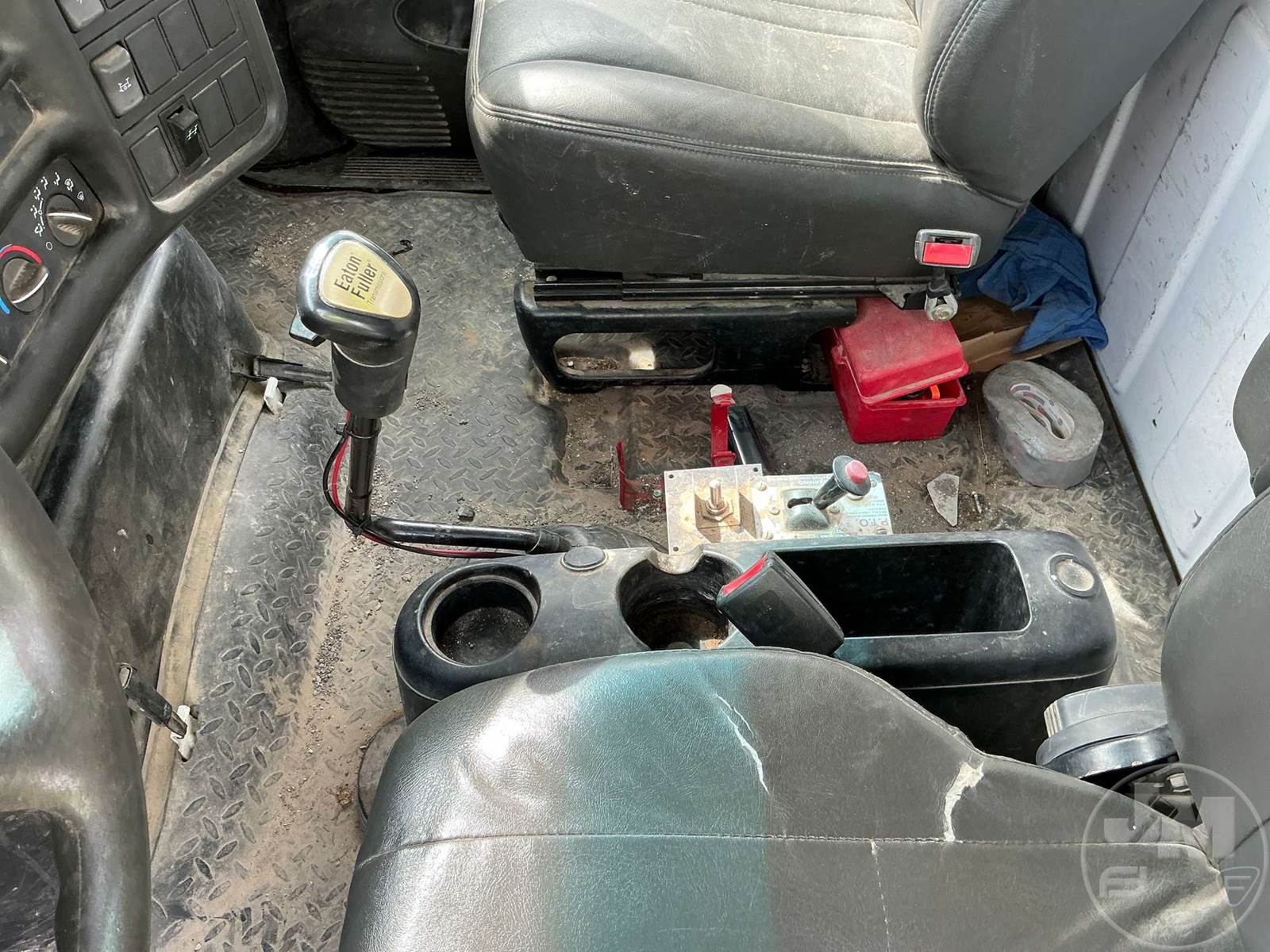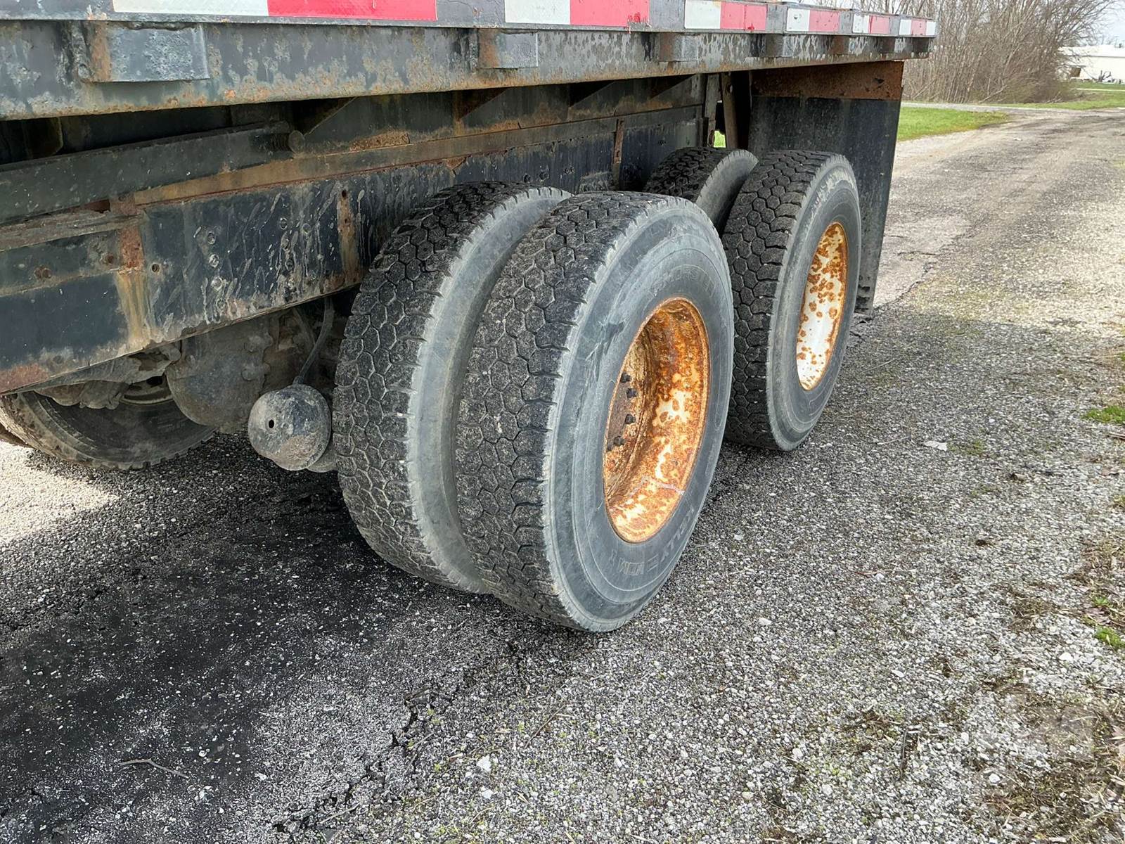 SINGLE AXLE REGULAR CAB FLATBED TRUCK, 18', STEEL BED, CATERPILLAR, C7, EATON FULLER, 9 SPEED, SPRING SUSPENSION, REAR HITCH, 13K FRONTS, 20K REARS, 53200 GVWR, STEEL DISC WHEELS, 11R22.5 TIRES, REAR AIR SUPPLY/AIR BRAKES, ODOMETER READS: 226657
