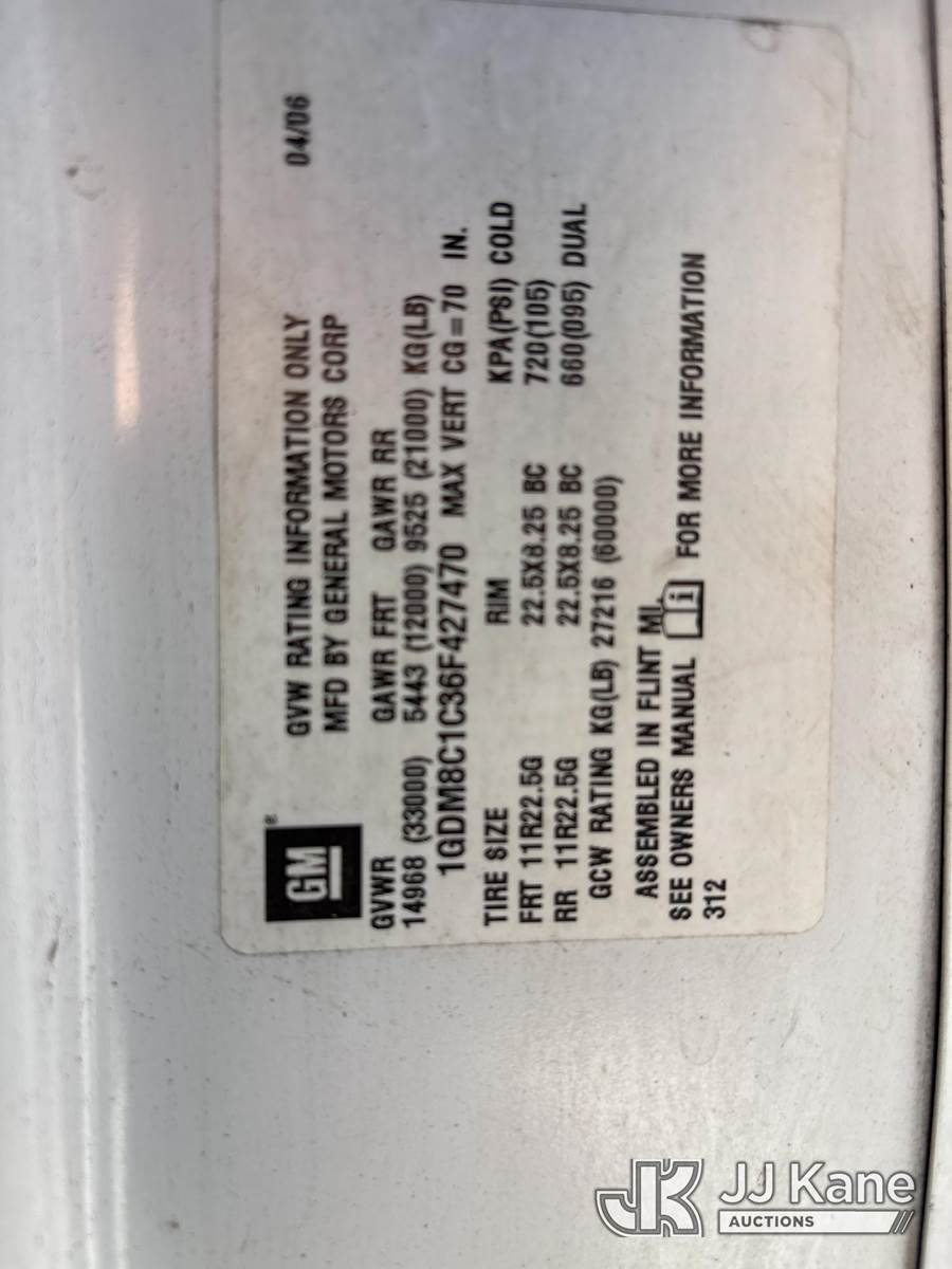 2006 GMC C8500 Chipper Dump Truck, 7.2L 6-spd, diesel, with 14ft Dump Body , (99,422 miles) (Not Running, Condition Unknown, Seller States: ENTIRE FUEL SYSTEM NEEDS TO BE REPLACED, OIL PAN, BRAKES, BATTERY, Body & Rust Damage, Must Tow) (Removal is by Appointment Only, Buyer MUST make a appointment prior to picking up, Buyer/Transporter Must have PAID IN FULL RELEASE. No onsite assistance available, Please Come prepared.) This is a Titled Item NOTE: This unit is being sold AS IS/WHERE IS via Timed Auction and is located in Bellport, NY. Inspection & preview days for this unit are by appointment only; please contact us at contact@jjkane.com or 84-Go-JJKane for more details. (Buyer is responsible for removal. Assistance by consignor or JJ Kane Auctioneers is not assured.)