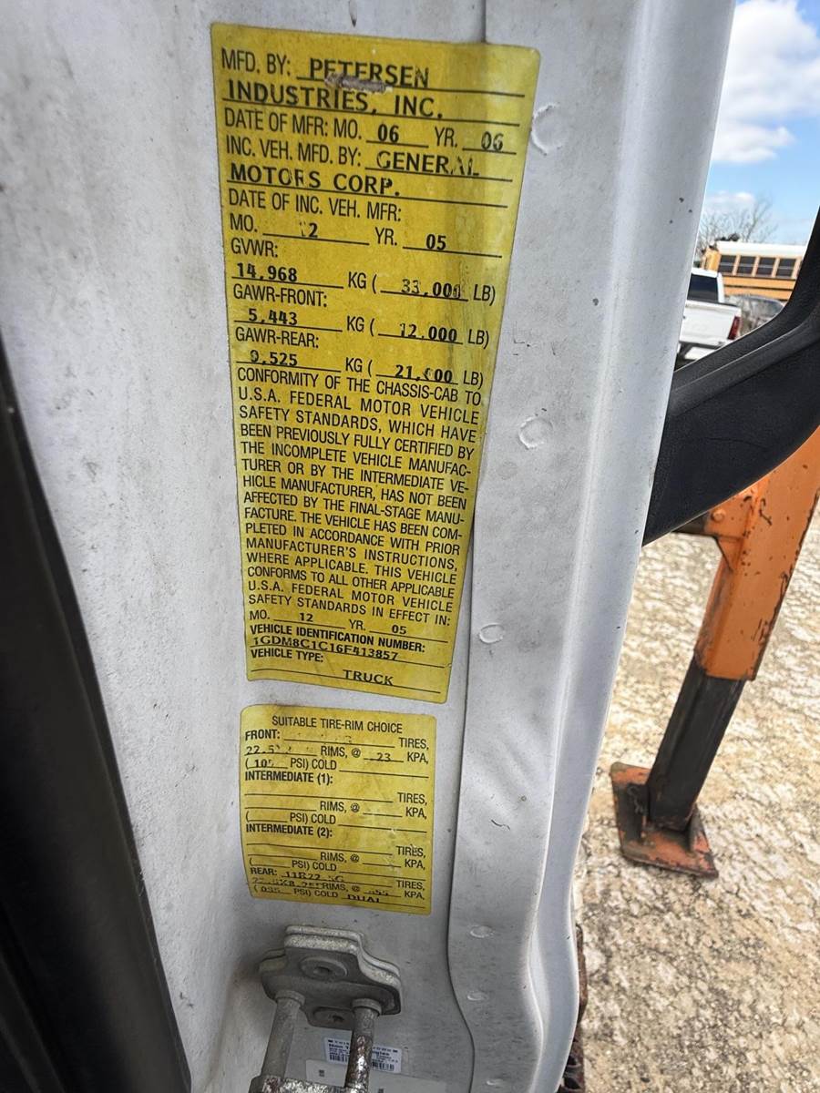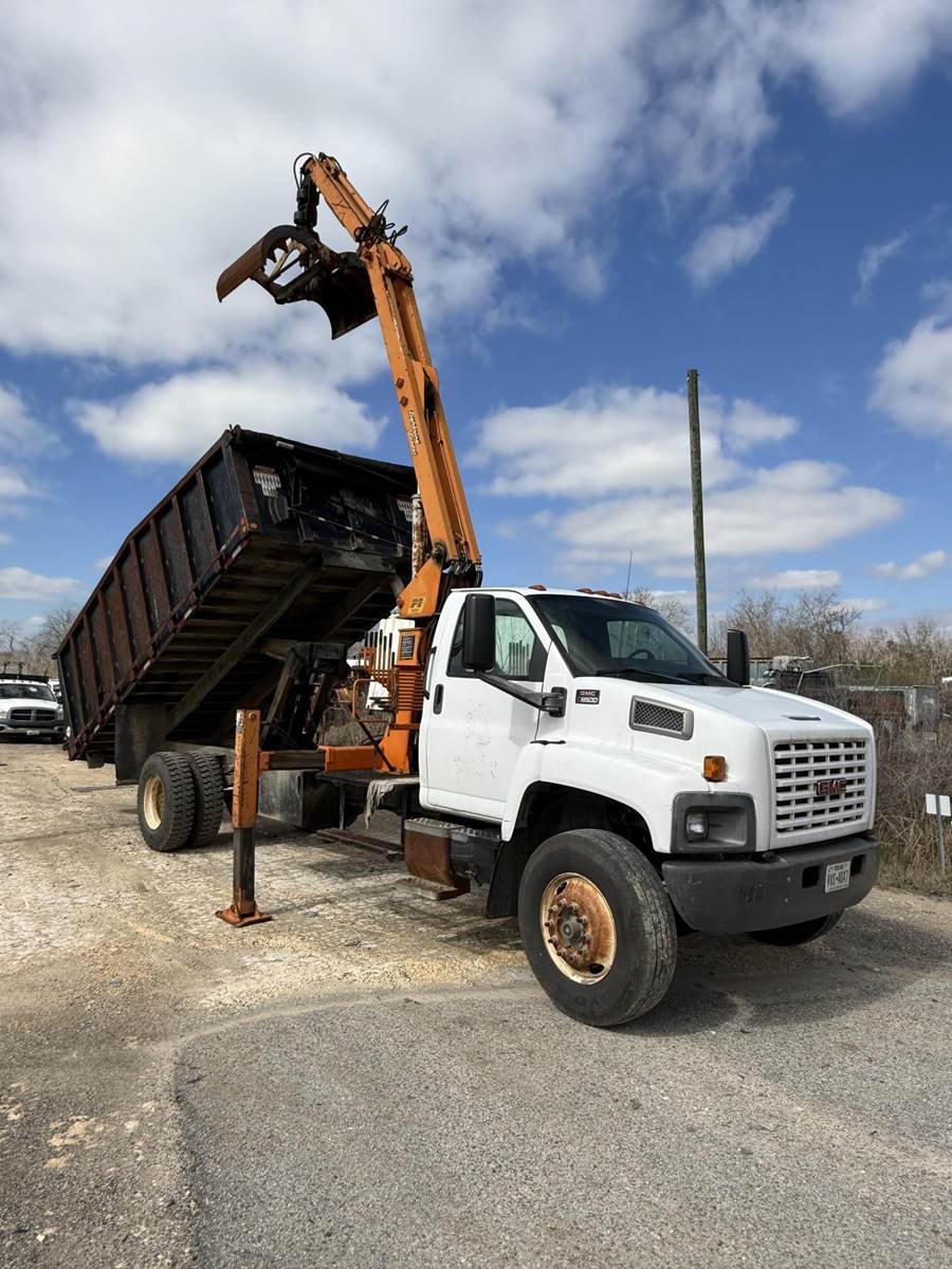 2006 GMC C8500 GRAPPLE TRUCK W/ PETERSON TL3 LOADER, 171,000 Miles on Meter, CAT C7 Diesel, 33,000 LB GVWR Class 7/8, Allison Automatic, 12,000 Lbs Front Capacity, 21,000 Lb Rear Capacity, 80,000 PSI Steel Frame, 15' Dump Box, 20' 7" Boom Reach, 7100 Lb Lift Capacity at 10', 11' 8" Wide Outriggers, 1,0000 Lb Cylinder Bucket, 9' Below Ground Level Reach, NEW Hydraulic Lines, Boom Cylinder Fresh Packed, Perfect for Solid Waste, Debris Collection, and Disaster Recovery -100% Operable Truck & Grapple. Videos Available!! Financing also Available.