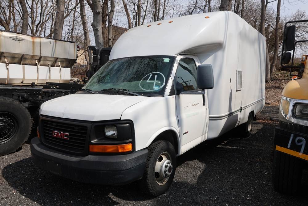 2006 GMC Savana box truck. VIN: 1GDJG312861160594. Odometer reading: 90925. Seller reports: Poor condition. Engine and Power steering leaks. Rear door rotted and has hole in it. Front end components worn. Engine: 6.6 L / V8. Key and Title available. Fleet #: 089260.