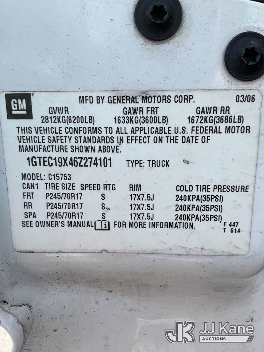 2006 GMC Sierra 1500 Extended-Cab Pickup Truck, 6-cyl gas, RWD, Auto, A/C, (Exempt from Odometer Disclosure - Reads 152,430 miles) (Runs & Moves) (Body/Paint Damage) This is a Titled Item NOTE: This unit is being sold AS IS/WHERE IS via Timed Auction and is located in Ocala, FL. Inspection & preview days for this unit are by appointment only; please contact us at contact@jjkane.com or 84-Go-JJKane for more details. For more information & removal arrangements please contact Mike Lessard @ (352) 629-6677. (Buyer is responsible for removal. Assistance by consignor or JJ Kane Auctions is not assured.)