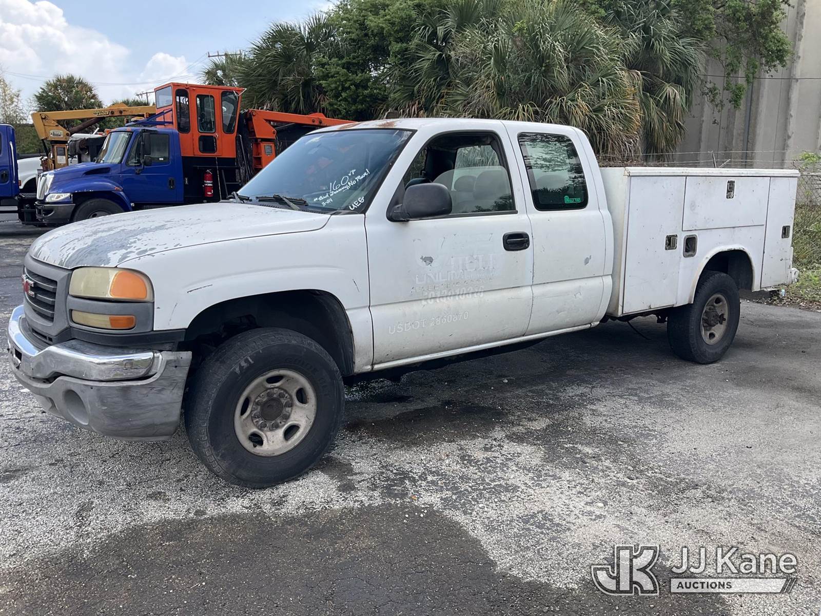 2006 GMC Sierra 2500HD Extended-Cab Service Truck, 8-cyl gas, RWD, Auto, True Mileage Unknown (Runs) (Does Not Move, Bad Transmission, Leaks Oil, Check Engine Light On, Dashboard & Interior Damaged, Body Damage & Rust, Paint Damage, Both Rear Passenger Doors Open From Inside Only, Unit Must Be Hauled Away) (FL Residents Purchasing Titled Items – tax, title & registration fees will be collected at the maximum rate of $400.00 under 25,999 and $800.00 for Over 26,000 and $250.00 for Trailers – Proof of insurance is mandatory; Out of State Residents Purchasing Title Items – tax will be collected based upon your state rate) This is a Titled Item NOTE: This unit is being sold AS IS/WHERE IS via Timed Auction and is located in West Palm Beach, FL. Inspection & preview days for this unit are the 2 business days prior to the first day of items closing for this auction, item is located at 2570 Old Okeechobee Rd West Palm Beach, FL 33409 and hours of operations are 8a-4p. For pre-sale questions, please contact Andy Garcia @ (561) 215-0085. (Buyer is responsible for removal. Assistance by consignor or JJ Kane Auctions is not assured.)